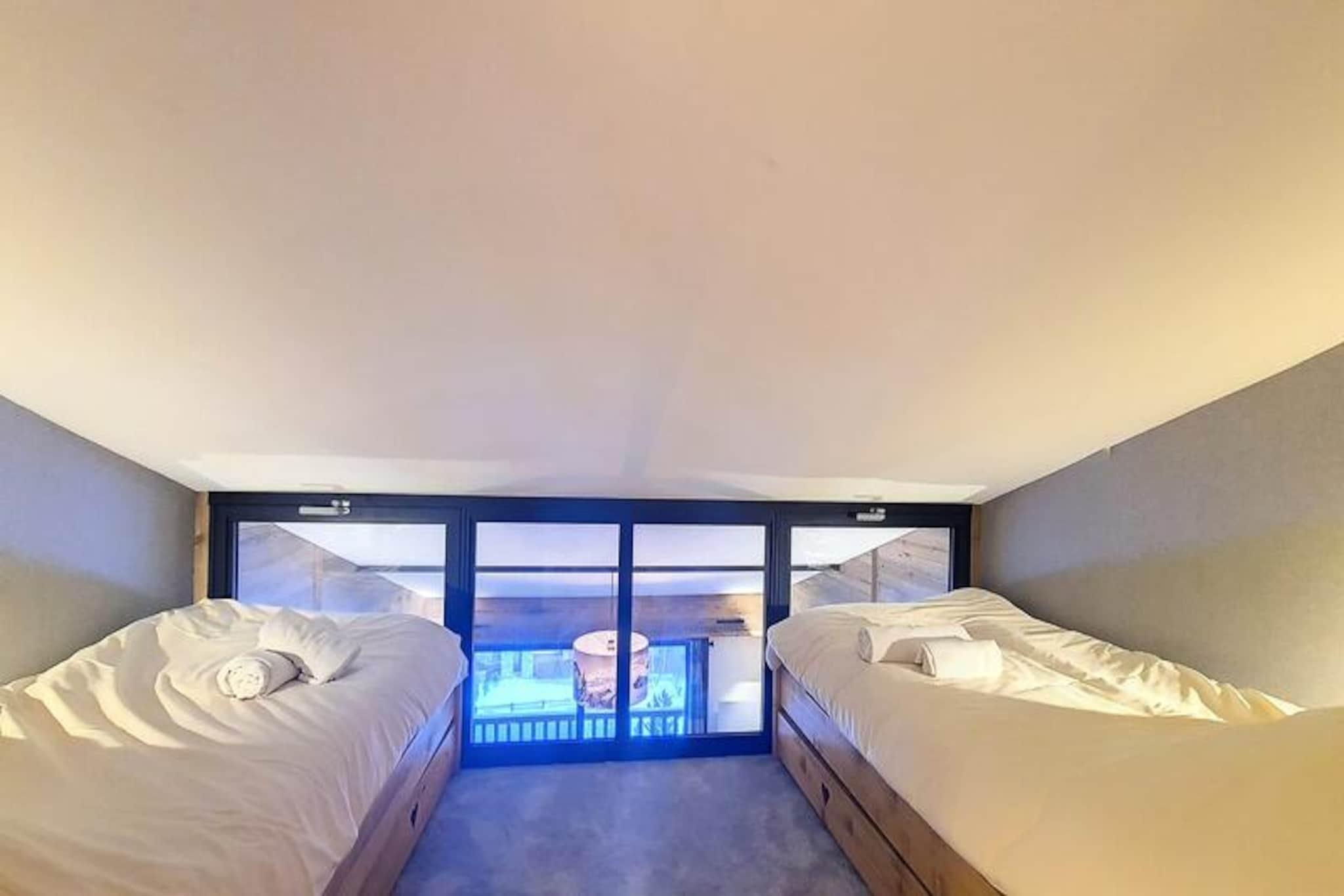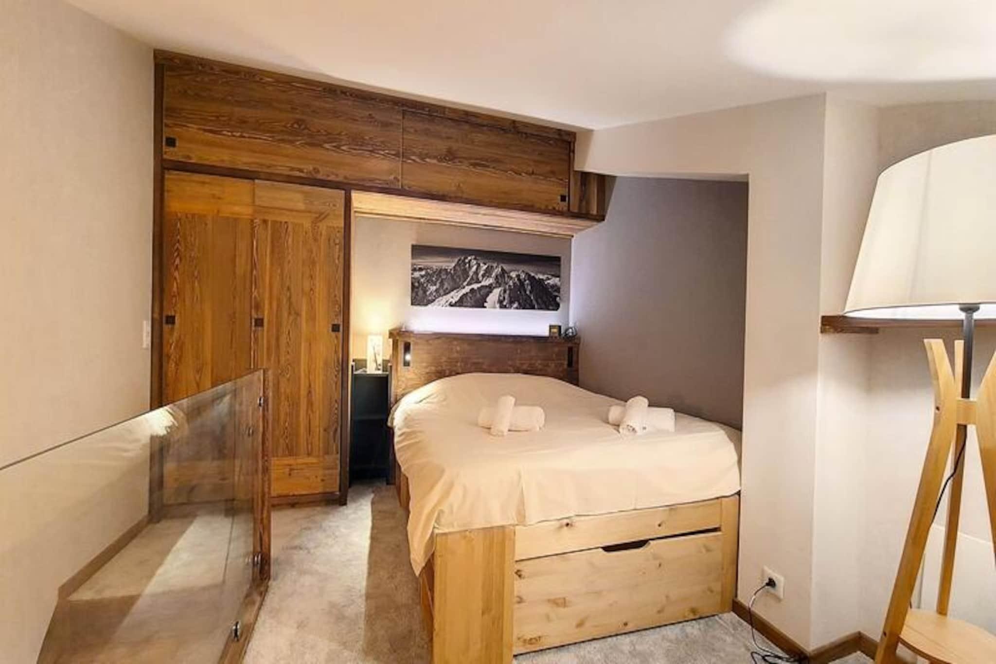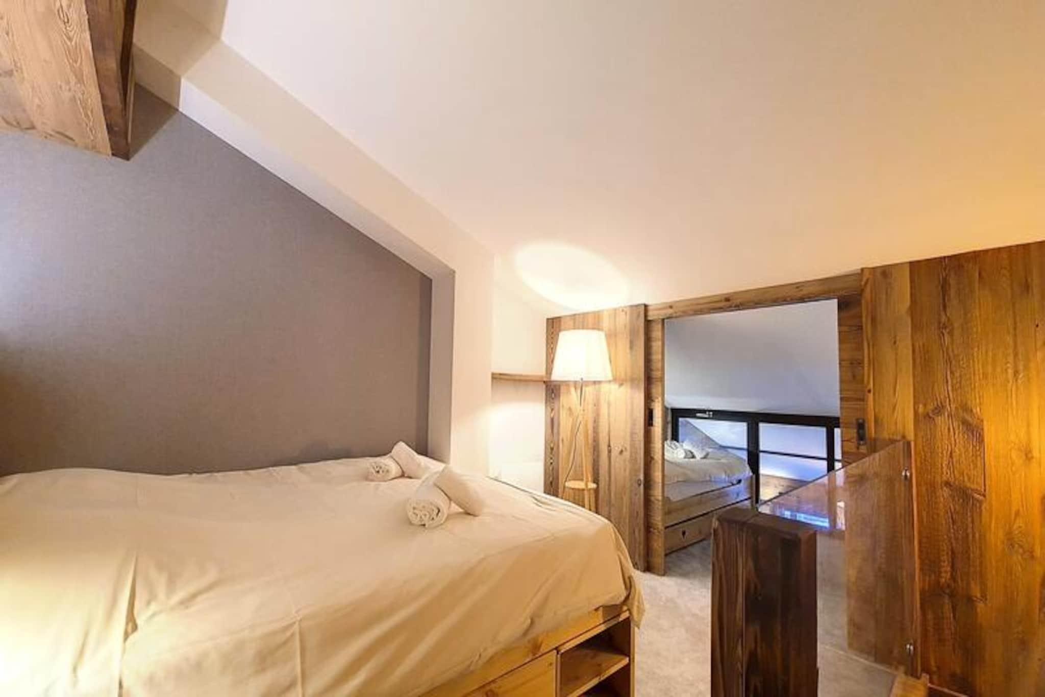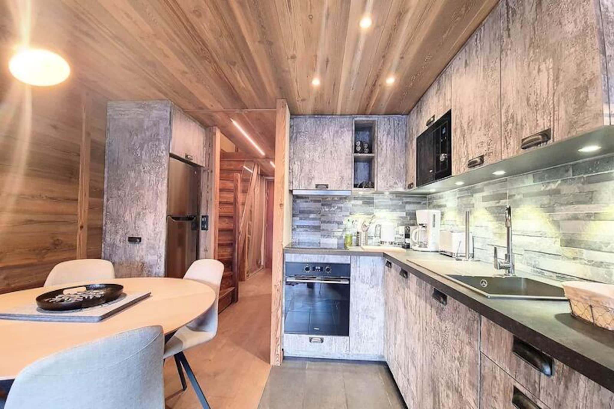 Midt i Val d'Isères pulserende charme tilbyder denne smukt renoverede 2-værelses lejlighed et indbydende tilflugtssted, kun 3 minutters gang fra pisterne. Denne sydvendte perle, der ligger på 4. sal i Le Dôme-residensen, kan prale af en solrig balkon, der er perfekt til at nyde den alpine atmosfære. Uanset om du er her for spændingen ved skiløb eller den rolige bjergluft, er dette hyggelige tilflugtssted designet til at gøre dit ophold uforglemmeligt. \n\nIndenfor har lejligheden komfortabel plads til op til fire gæster. Mezzaninen har et soveværelse med en blød dobbeltseng, mens bjerghjørnet tilbyder to hyggelige enkeltsenge under et ovenlysvindue, hvilket skaber en varm og intim atmosfære. Stuen med spiseplads og lounge er det perfekte sted at slappe af efter en dag med eventyr. Moderne bekvemmeligheder såsom et Smart TV, Wi-Fi (afhængigt af netværkstilgængelighed) og et fuldt udstyret køkken med keramisk kogeplade, mikrobølgeovn og opvaskemaskine sikrer alle hjemmets bekvemmeligheder. Et elegant brusebad, separat toilet og vaskemaskine bidrager til bekvemmeligheden. \n\nBeliggende i hjertet af feriestedet finder du alt, hvad du behøver, inden for rækkevidde. Fra skiboksen i stueetagen til nærliggende butikker, restauranter og afterski-muligheder er beliggenheden uovertruffen. Om vinteren kan du drage fordel af fordelagtige priser på liftkort til Tignes og Val d'Isère, hvilket gør din alpine oplevelse endnu mere problemfri. \n\nUanset om du søger eventyr på pisterne eller et fredeligt tilflugtssted i bjergene, kombinerer denne lejlighed moderne komfort med den tidløse charme i Val d'Isère. Lad magien i de franske alper skabe minder for livet.