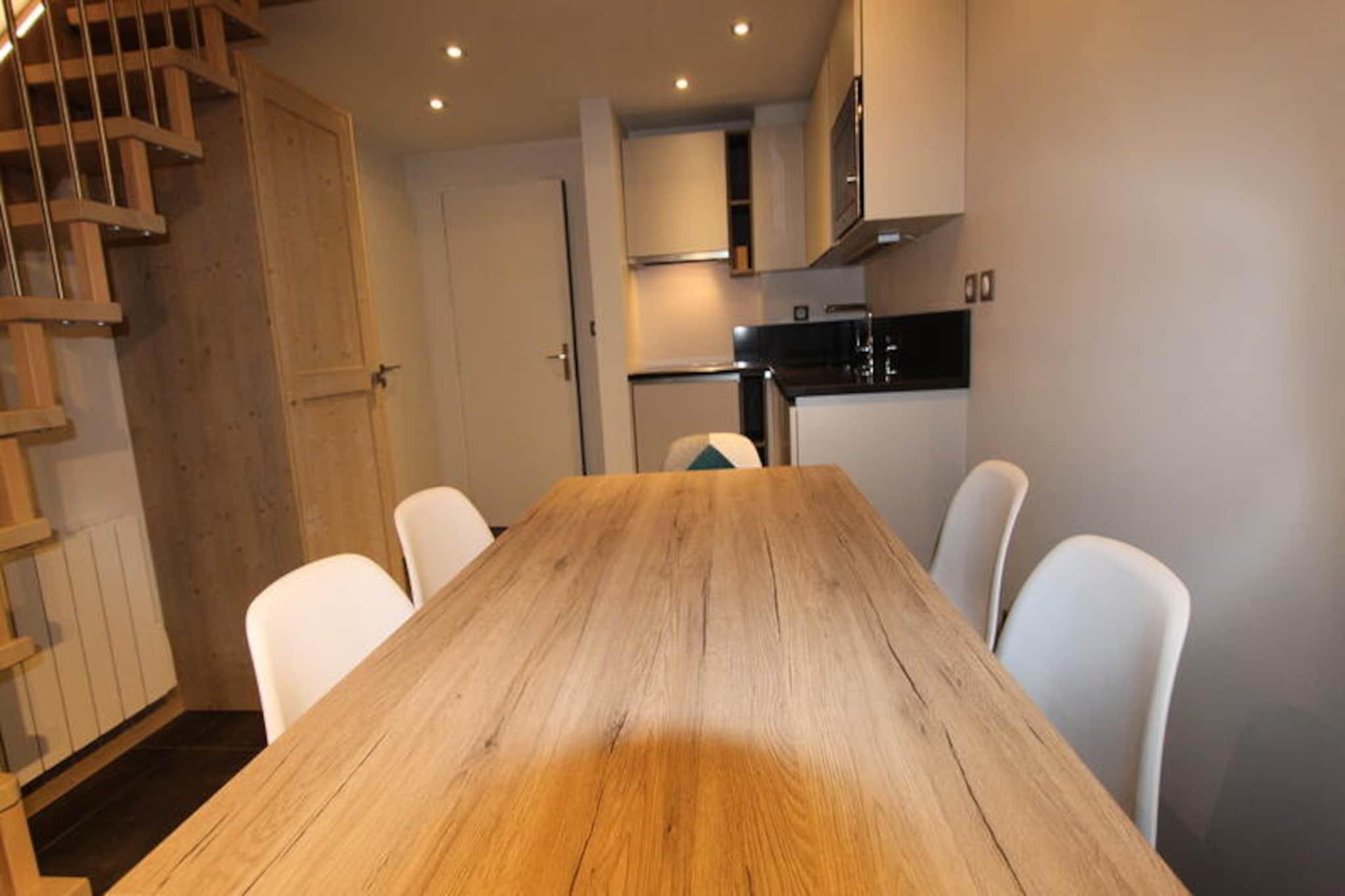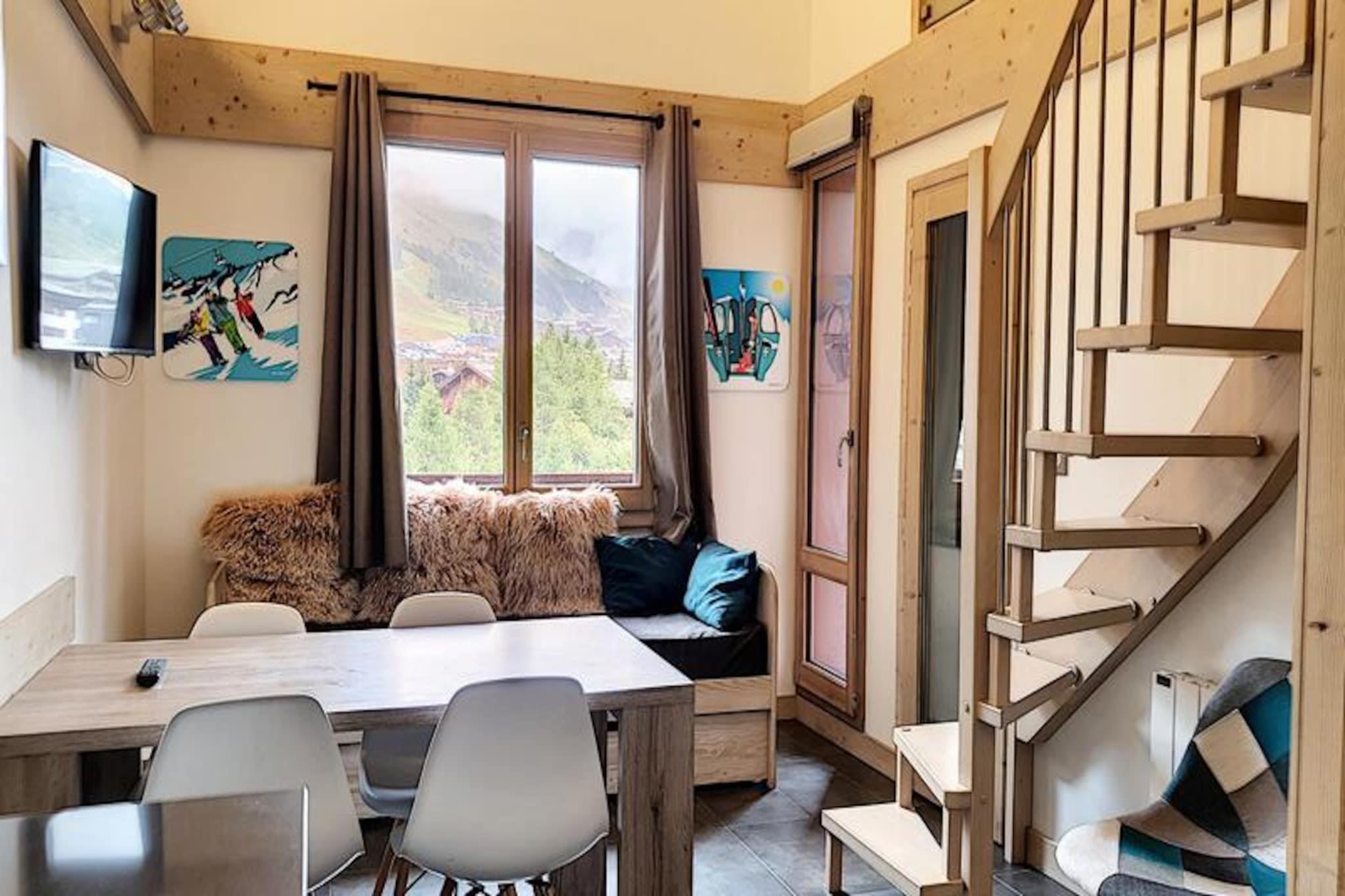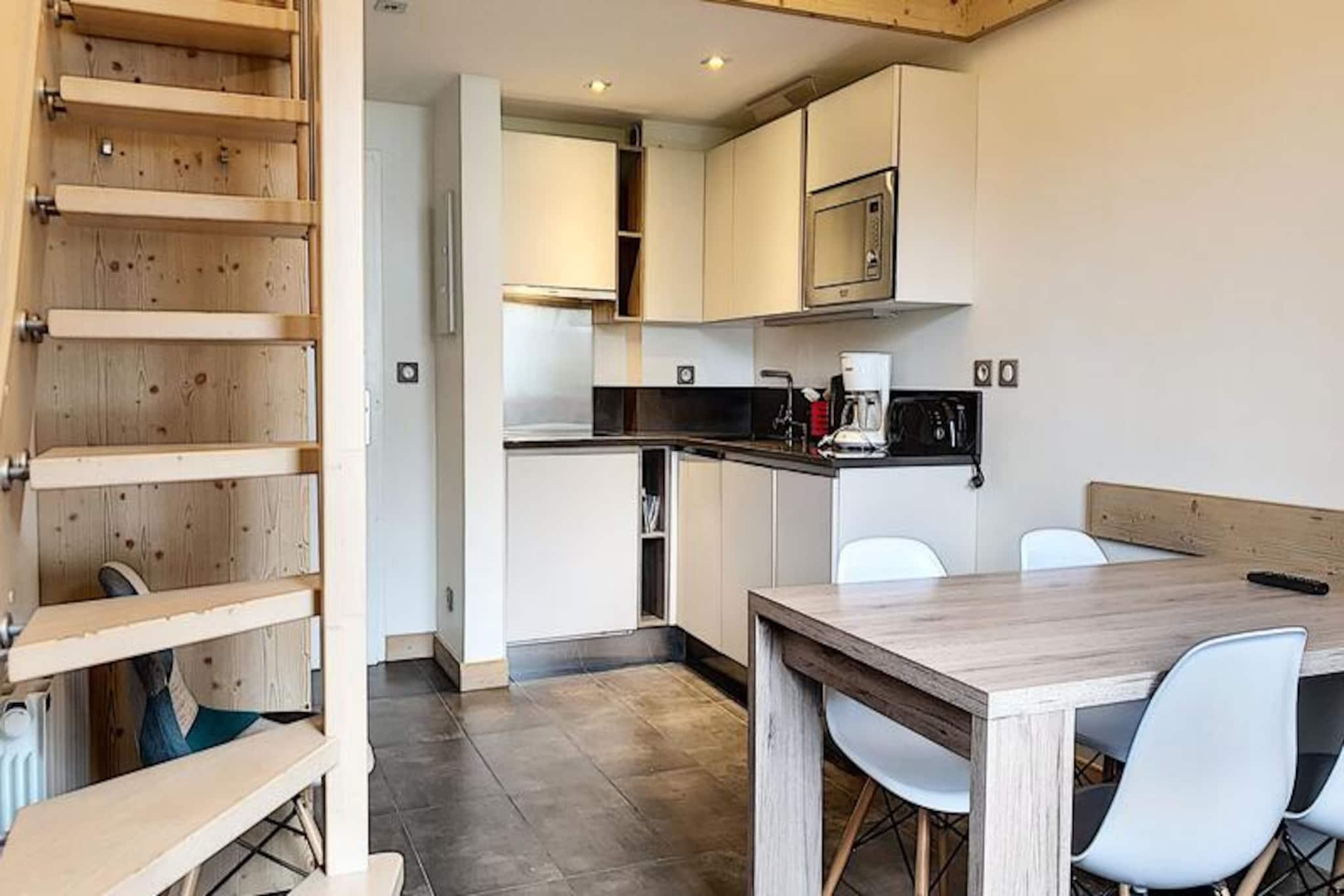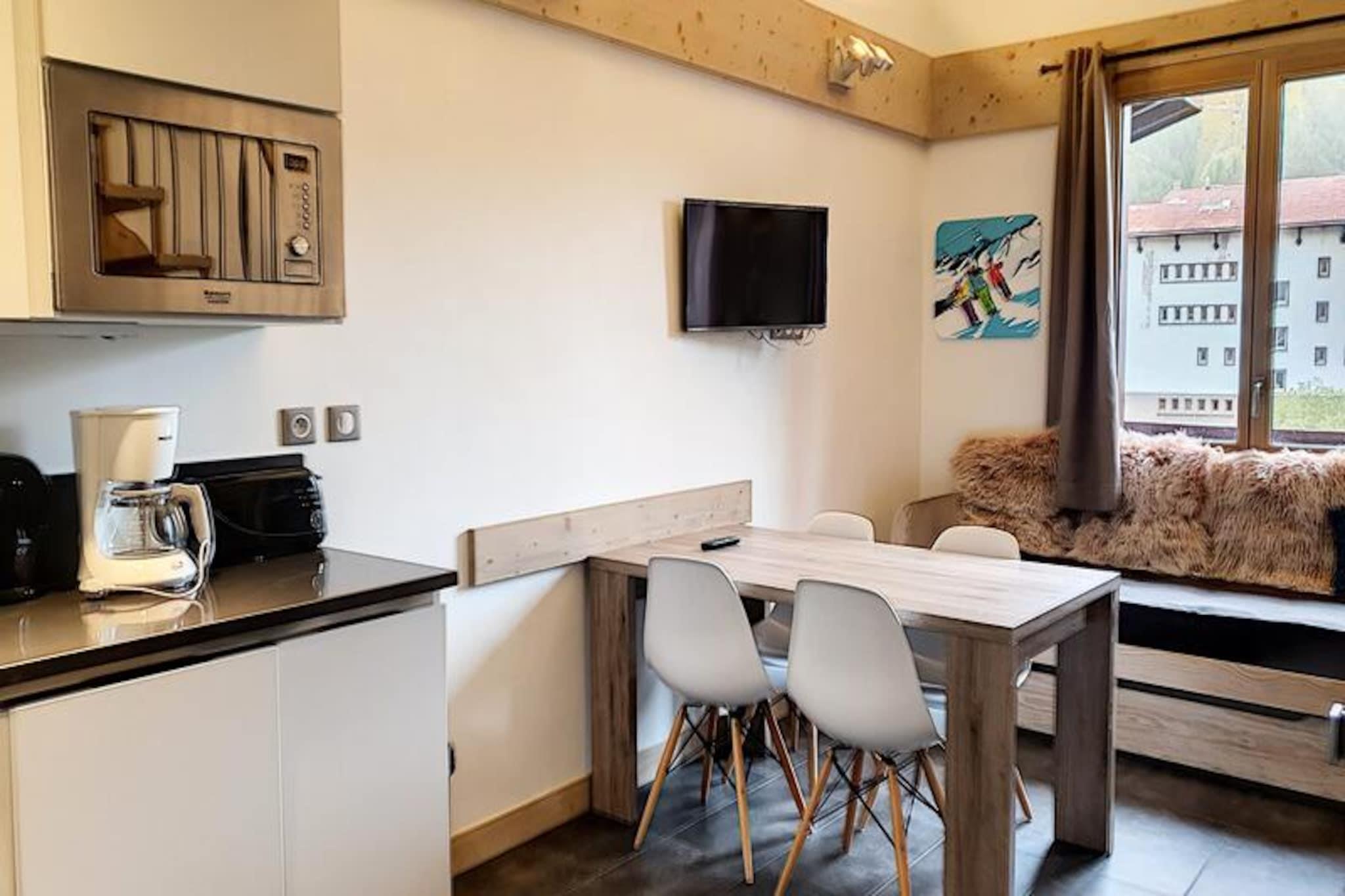 Midt i den livlige charme i Val d'Isères bycentrum tilbyder denne smukt renoverede mezzanin-studio en hyggelig alpin oase kun 10 minutters gang fra pisterne. Denne sydøstvendte perle ligger på 5. etage i Les Verdets II-residensen og inviterer dig til at nyde morgensolen fra din private altan, mens du indånder den friske bjergluft. Uanset om du er her for at stå på ski eller blot for at slappe af, kombinerer denne ejendom moderne komfort med charmen ved de franske alper. Studiet på 35 m² er designet til at rumme 4 til 5 gæster og har en gennemtænkt indretning. Stuen har en komfortabel sofa og spiseplads, suppleret med et fuldt udstyret køkken med induktionskomfur, opvaskemaskine og kombineret ovn/mikroovn/grill. Mezzaninen har en dobbeltseng og en enkeltseng, mens en separat sovealkove har en køjeseng, hvilket gør den ideel til familier eller små grupper. Et badeværelse med separat toilet sikrer bekvemmelighed, og lejligheden har Wi-Fi og tv til din underholdning. Lejligheden ligger i en bolig med elevator og skiskab i stueetagen, og du finder alt, hvad du har brug for, for at få et problemfrit ophold. Ejendommen tilbyder også ekstra fordele som fordelagtige priser på skiliftkort til Tignes og Val d'Isère om vinteren. Uden for pisterne ligger Val d'Isères livlige centrum lige uden for døren, fyldt med butikker, restauranter og après-ski-muligheder. Uanset om du er tiltrukket af spændingen på pisterne eller charmen ved livet i en alpin landsby, er denne studiolejlighed din indgang til en uforglemmelig bjergferie. Book nu og lad dig fortrylle af Val d'Isères magi.