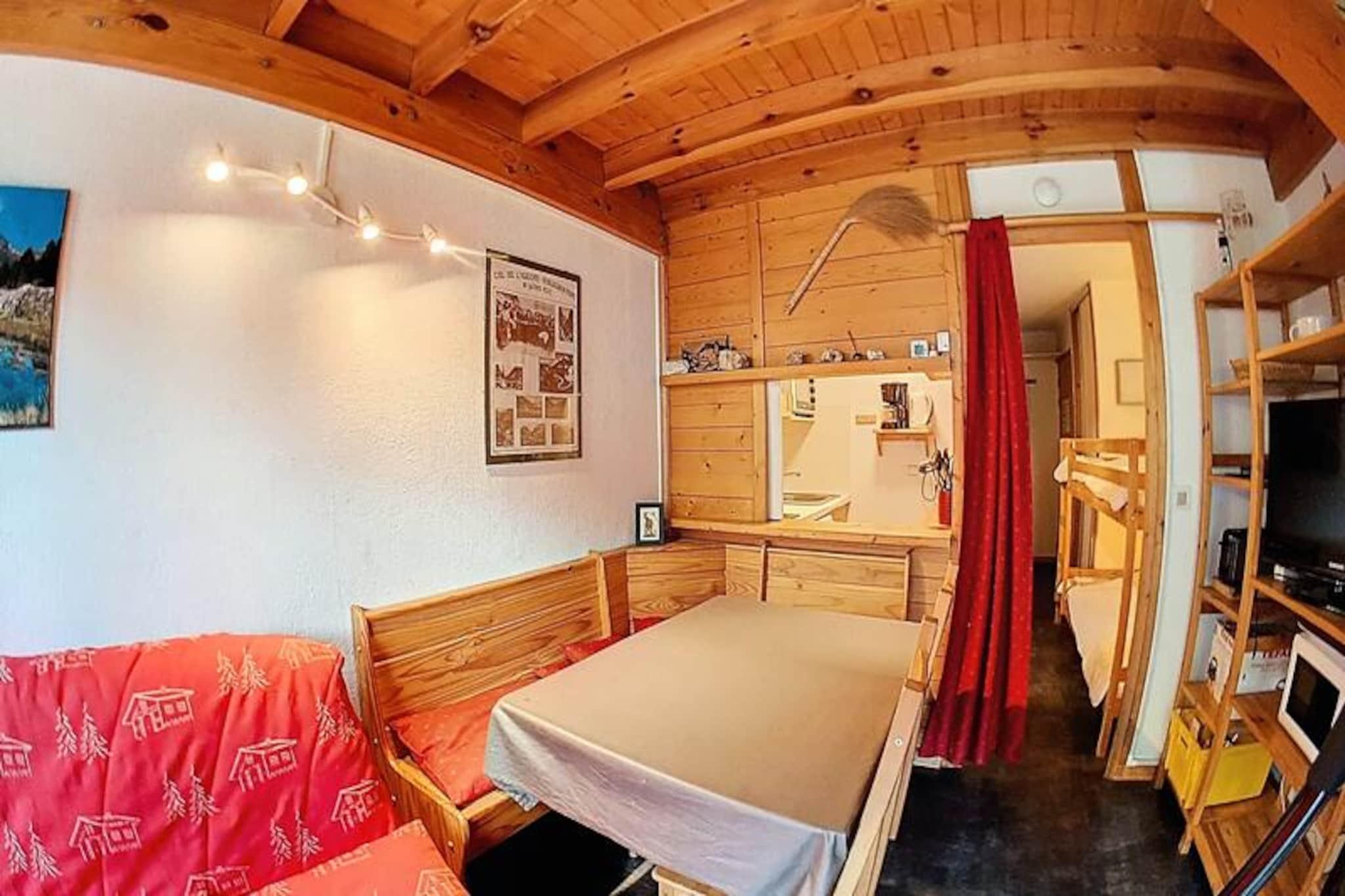 I hjertet af de franske alper tilbyder dette charmerende mezzanin-studie et roligt tilflugtssted kun en kort gåtur fra det pulserende centrum af Val d'Isère. Beliggende i den fredelige Le Val d'Illaz-residens, inviterer denne sydvendte lejlighed på 4. sal dig til at nyde den alpine sol fra din private balkon, mens du nyder den betagende udsigt over bjergene. Med gratis shuttlebusser og pisterne kun få minutter væk, er dette den perfekte base for dit næste skieventyr. Det 27 m² store studie er omhyggeligt designet til at rumme 2-4 gæster og kombinerer komfort og praktisk anvendelighed. Indgangshytten har en hyggelig køjeseng, mens mezzaninen tilbyder to ekstra enkeltsenge, der sikrer en god nats søvn for alle. Det fuldt udstyrede køkken med induktionskogeplade, ovn, mikrobølgeovn og opvaskemaskine gør madlavning til en leg. Efter en dag på pisterne kan du slappe af i den indbydende opholdsstue med Wi-Fi og tv (afhængigt af tilgængelighed). Lejligheden har også et moderne badeværelse og separat toilet for ekstra bekvemmelighed. Beliggende i et roligt kvarter har boligen en elevator og et skirum i stueetagen, hvilket sikrer problemfri opbevaring af dit udstyr. Gæster kan også drage fordel af rabatpriser på liftkort til Tignes og Val d'Isère i vintersæsonen. Med den charmerende landsbymidte kun fem minutters gang væk finder du et udvalg af butikker, restauranter og afterski-muligheder lige ved hånden. Uanset om du er her for at grave dig gennem uberørt sne eller udforske de fantastiske alpine landskaber, lover dette hyggelige studie et mindeværdigt ophold i en af ??Frankrigs mest ikoniske skidestinationer.