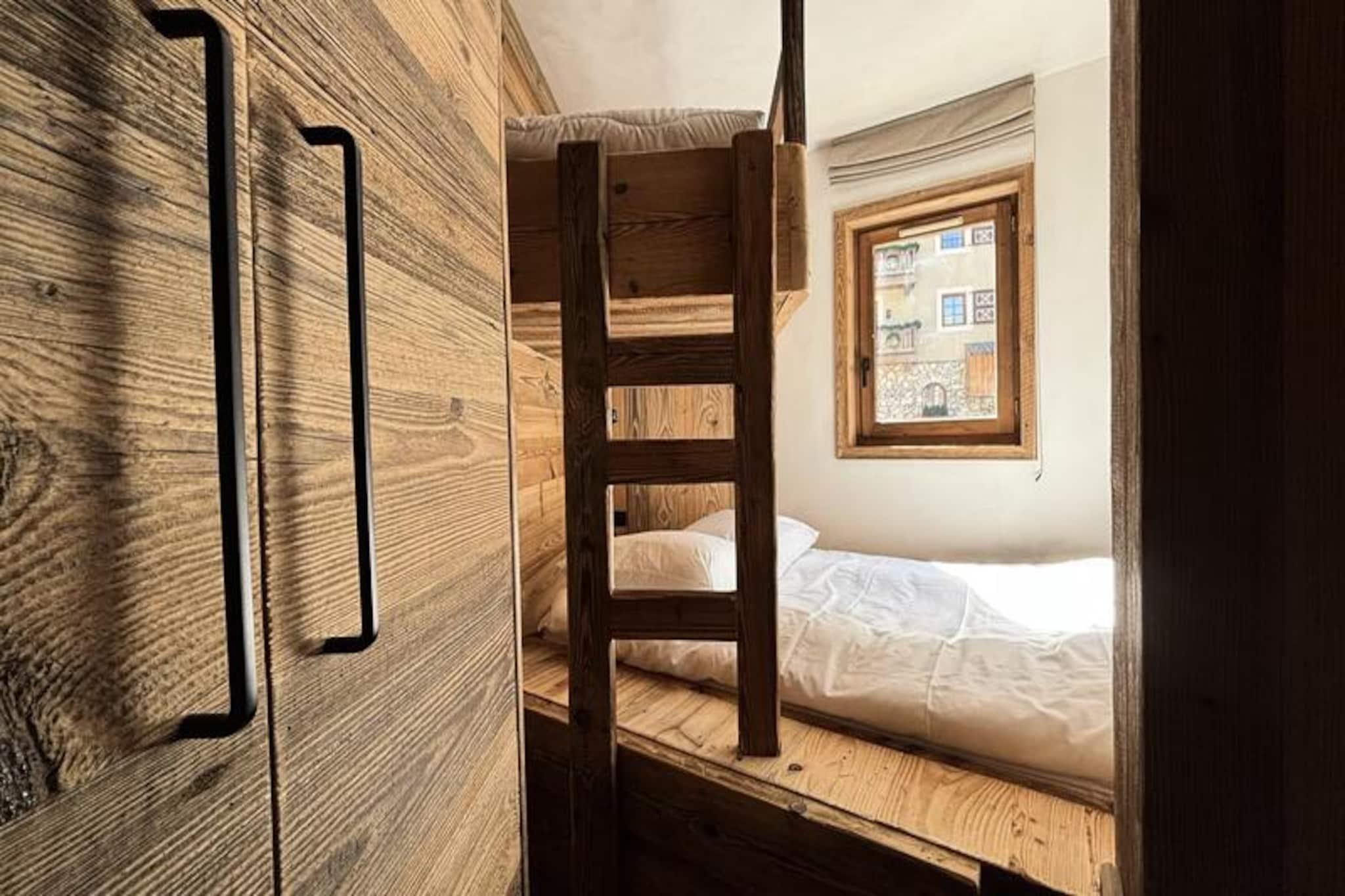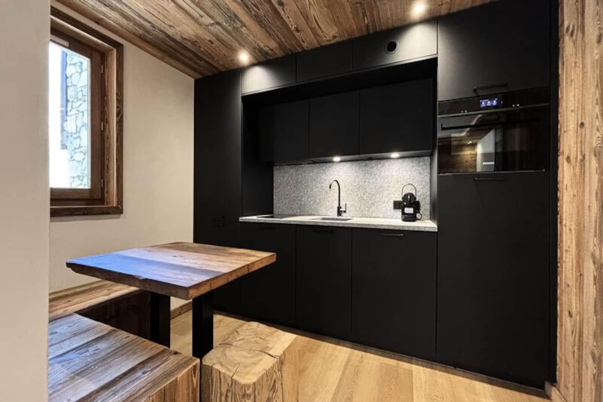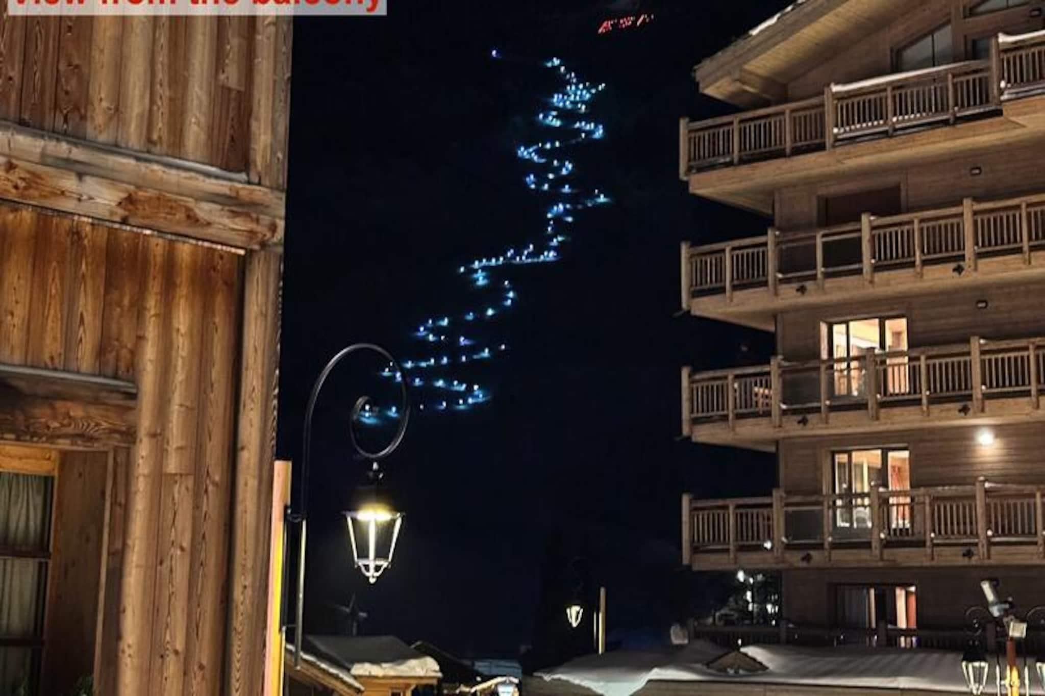 I hjertet af det verdensberømte Val d'Isère tilbyder denne charmerende lejlighed en problemfri blanding af alpin tradition og moderne komfort. Beliggende i den maleriske Val Village er boligen udformet i autentisk Savoyard-stil med sten- og træelementer, der afspejler den tidløse skønhed i de franske alper. Fra din sydvendte balkon kan du nyde en betagende udsigt over den ikoniske Bellevarde-skråning, hvor fakkeltog oplyser pisterne om aftenen og skaber et uforglemmeligt skue direkte fra din stue. \n\nLejligheden er designet til at rumme op til fem gæster (ideel til fire) og kan prale af to hyggelige soveværelser, et veludstyret åbent køkken og en varm opholdsstue med en behagelig sofa og et stort tv. Den gennemtænkte indretning sikrer et afslappende ophold, med faciliteter som en Nespresso-kaffemaskine, induktionskogeplade og en kombineret mikrobølgeovn, der gør madlavning til en leg. Yderligere bekvemmeligheder inkluderer et skirum, Wi-Fi og overdækket parkering kun 50 meter væk, hvilket sikrer, at alle detaljer i din ferie er taget hånd om. \n\nTræd udenfor, og du er kun få meter fra skiløjperne, den franske skiskole og en række butikker og restauranter. Uanset om du lejer udstyr i den nærliggende INTERSPORT Front de Neige MATTIS-butik eller nyder et måltid på La Corniche, er alt hvad du behøver lige ved hånden. For afterskiing kan du slappe af på Coin des Amis eller danse natten lang på Le Doudoune Club. \n\nDenne lejlighed er mere end bare et sted at bo - det er din port til magien i Val d'Isère. Med sin uovertrufne beliggenhed, fantastiske udsigt og hyggelige atmosfære lover den en ferie fyldt med eventyr, afslapning og kære minder.