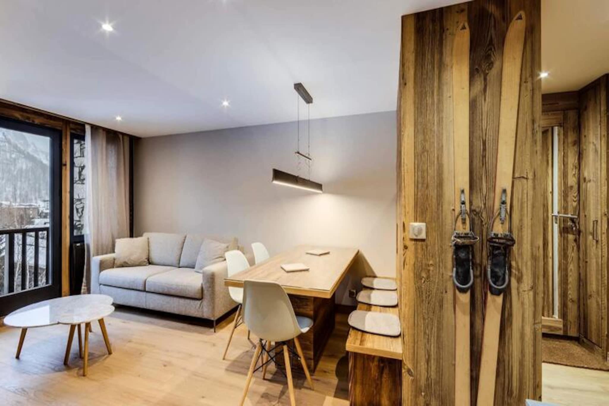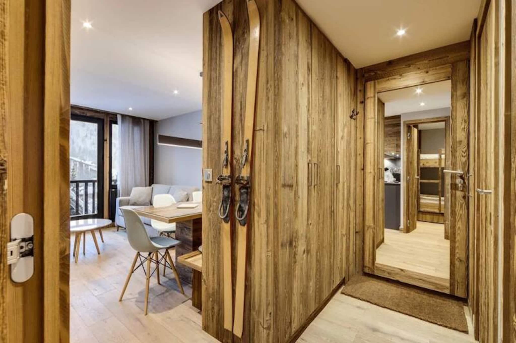 I hjertet af Val d'Isère Village, hvor charmen fra traditionel Savoyard-arkitektur møder moderne komfort, tilbyder denne smukt renoverede lejlighed et exceptionelt alpint tilflugtssted. Med sin vestvendte balkon med udsigt over den ikoniske Bellevarde-piste kan du nyde betagende solnedgange og den pulserende energi fra en af ??Frankrigs førende skisportssteder. Uanset om du er her for at grave dig gennem uberørt sne eller udforske den livlige landsby, placerer denne bolig dig i centrum af det hele. \n\nLejligheden er designet til at rumme op til fire gæster og har et soveværelse med en luksuriøs dobbeltseng og et hyggeligt kahytrum med køjesenge, perfekt til familier eller små grupper. Det fuldt udstyrede køkken inkluderer induktionskogeplade, kombineret mikrobølgeovn, opvaskemaskine og en Nespresso-kaffemaskine, så du nemt kan tilberede lækre måltider. Opholdsstuen indbyder til afslapning med fladskærms-tv, Wi-Fi og spiseplads, mens det moderne badeværelse med bruseniche tilføjer et strejf af luksus. Daglig rengøring og håndklædeskift midt i opholdet sikrer et problemfrit og behageligt ophold. \n\nTræd udenfor, og du finder skiløjperne kun få meter væk, sammen med den franske skiskole og et udvalg af butikker, restauranter og afterski-steder. Nyd en drink på Coin des Amis, eller dans natten lang på Le Doudoune Club. For skiudlejning tilbyder den nærliggende INTERSPORT Front de Neige MATTIS-butik eksklusive priser for gæster. Spisesteder som La Corniche serverer lokale specialiteter for at fuldende din alpine oplevelse. \n\nUanset om du besøger stedet for vintersport eller sommereventyr, tilbyder denne lejlighed den perfekte blanding af bekvemmelighed, stil og autentisk bjergcharme. Lad Val d'Isère Village være din port til uforglemmelige minder i de franske alper.