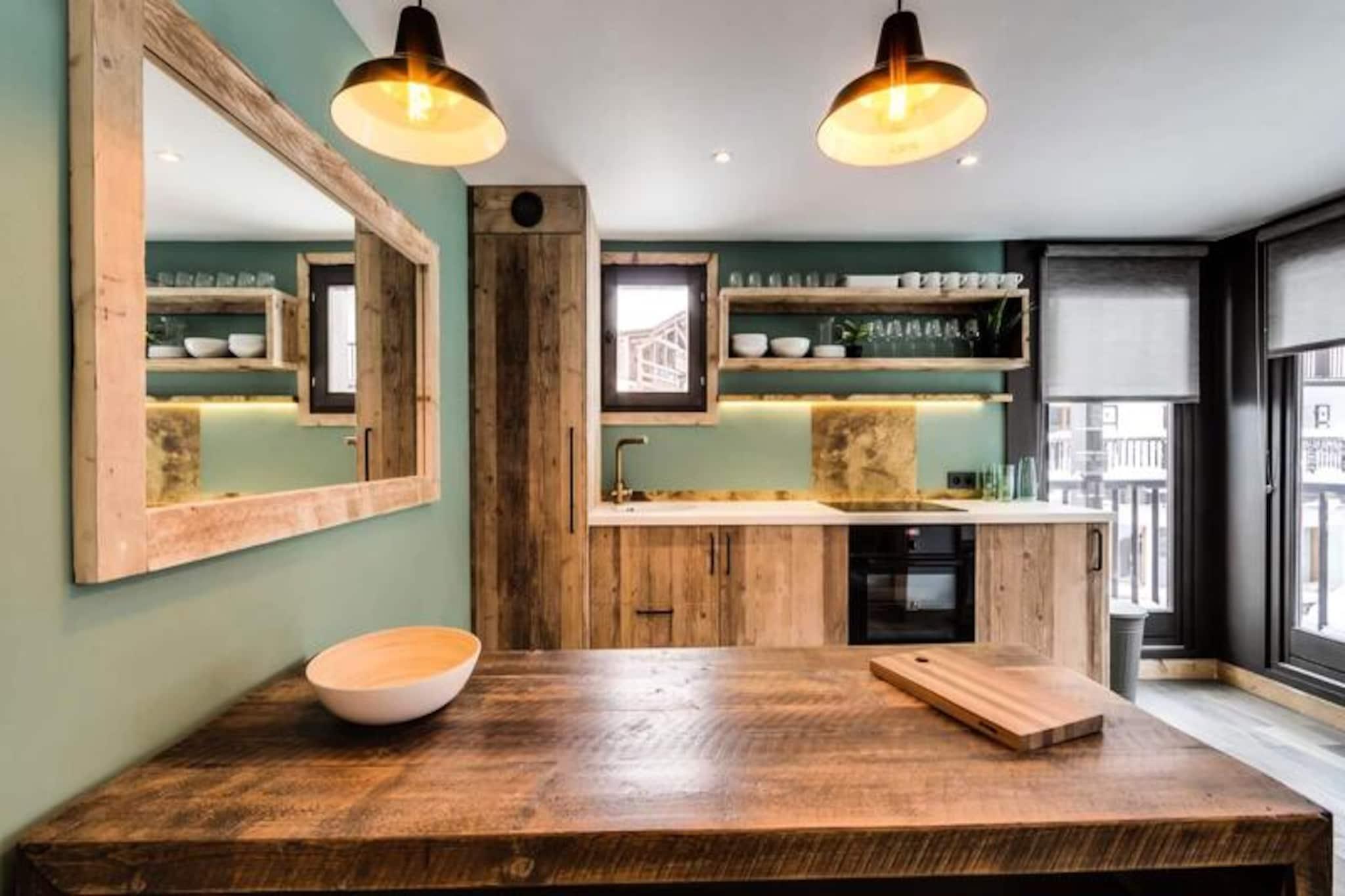 I hjertet af den prestigefyldte landsby Val d'Isère tilbyder denne smukt renoverede lejlighed en harmonisk blanding af traditionel Savoyard-charme og moderne komfort. Omgivet af de majestætiske tinder i de franske alper tilbyder denne bolig en uovertruffen ski-in/ski-out-oplevelse, hvilket gør den til det perfekte alpine tilflugtssted for familier og venner. Fra den sydvendte balkon kan du nyde den rolige udsigt over det livlige torv, mens du nyder den friske bjergluft. Med sin førsteklasses beliggenhed er du kun få skridt fra pisterne, skiskolen og en række butikker og restauranter, hvilket sikrer bekvemmelighed i alle områder. \n\nDenne gennemtænkt designede lejlighed har plads til op til fem gæster fordelt på to hyggelige soveværelser. Soveværelset har en komfortabel dobbeltseng, mens det andet soveværelse har en dobbeltseng og en ekstra væghængt enkeltseng. Den åbne opholdsstue indbyder til afslapning med et fladskærms-tv udstyret med Netflix og Amazon TV, mens det fuldt udstyrede køkken kan prale af moderne apparater, herunder en Nespresso-maskine, opvaskemaskine og vaskemaskine. Et rummeligt badeværelse med badekar og håndklædetørrer sikrer et strejf af luksus, og det separate toilet tilføjer bekvemmelighed. \n\nGæsterne vil sætte pris på de ekstra faciliteter såsom en sikker overdækket parkeringsplads, et skiboks og gratis Wi-Fi. Sengelinned, håndklæder og endda badekåber er inkluderet, og rengøring er inkluderet under dit ophold. Lejlighedens uovertrufne beliggenhed betyder, at du kan lade din bil blive hjemme og nyde alt, hvad Val d'Isère har at byde på, til fods. I nærheden kan du opdage afterskiing-hotspots som Coin des Amis eller Le Doudoune Club, og forkæle dig selv med udsøgte restauranter på La Corniche. \n\nUanset om du er her for at grave dig gennem uberørt sne, udforske den pulserende landsby eller blot slappe af i de fredfyldte alpine omgivelser, lover denne perle i Val d'Isère en uforglemmelig bjergferie. Book dit ophold i dag og skab dyrebare minder på en af ??de mest eftertragtede destinationer i Alperne.