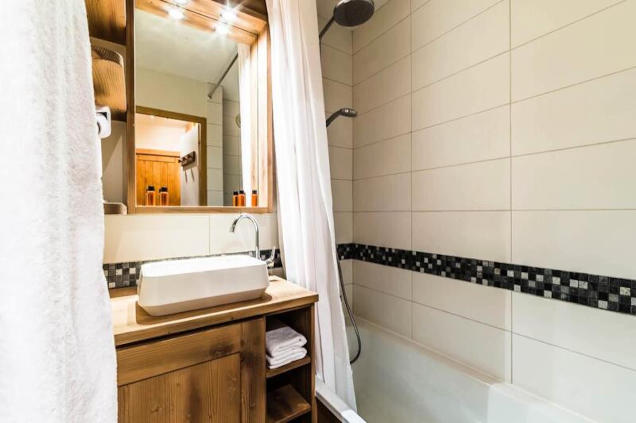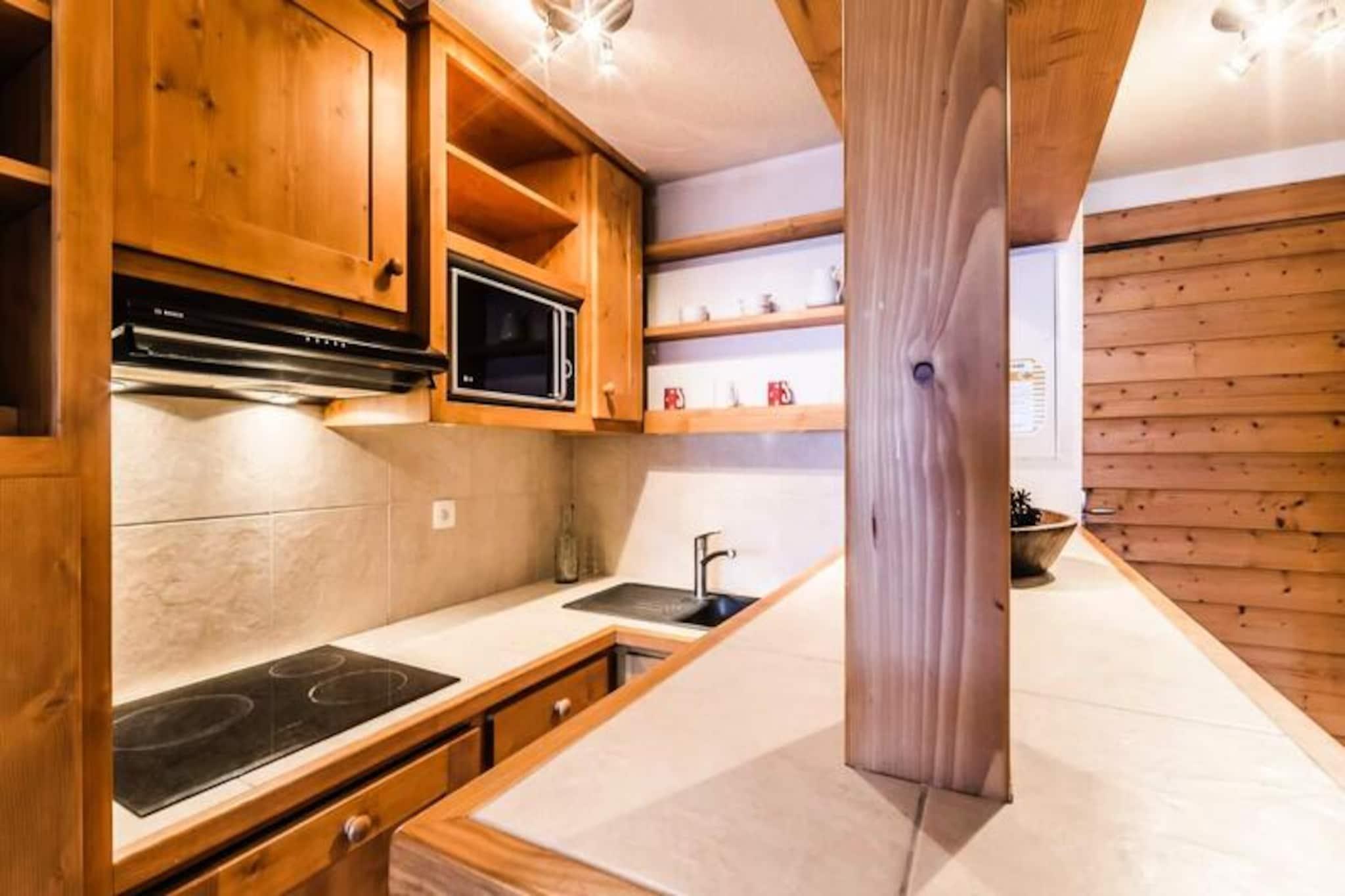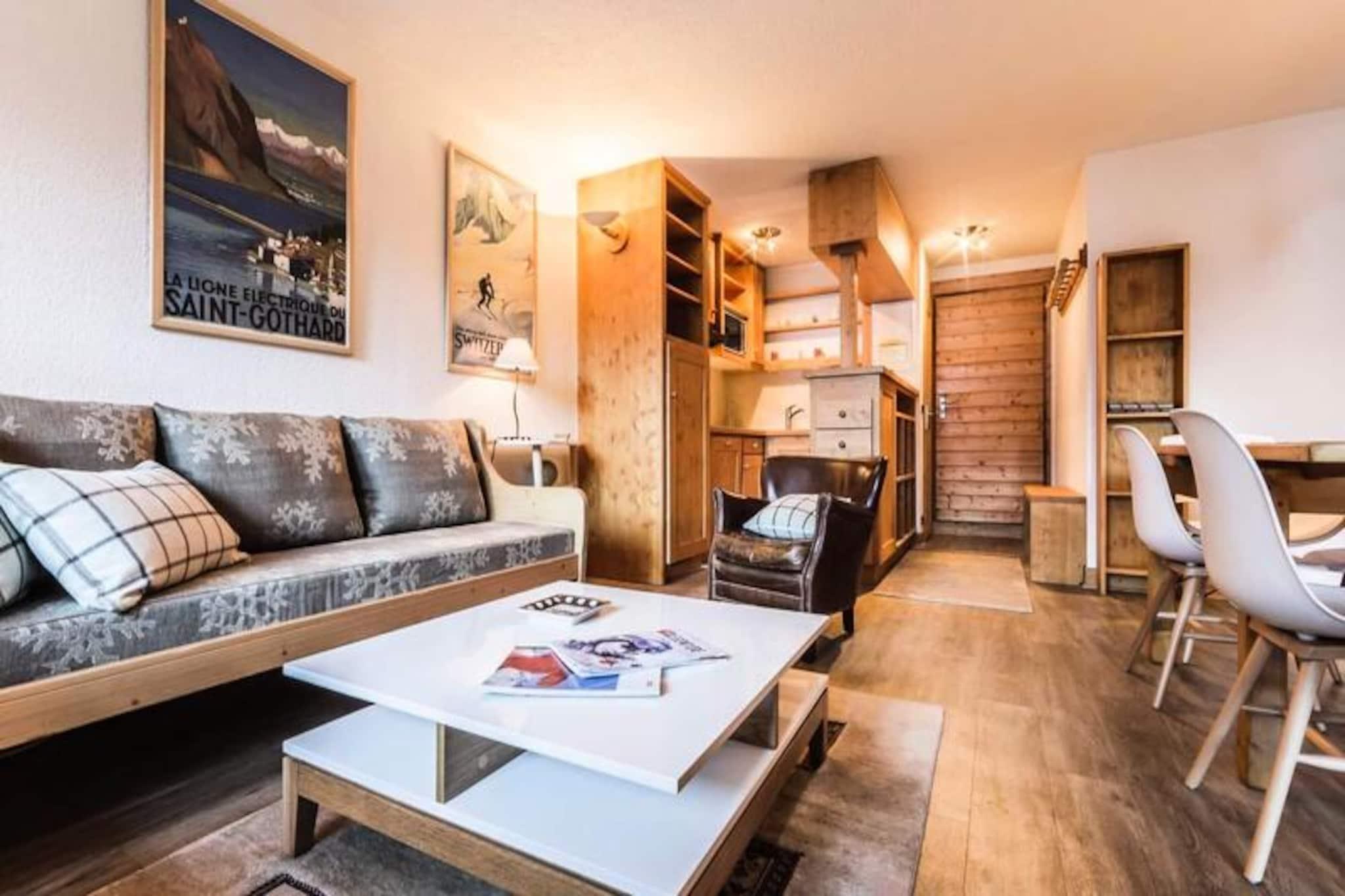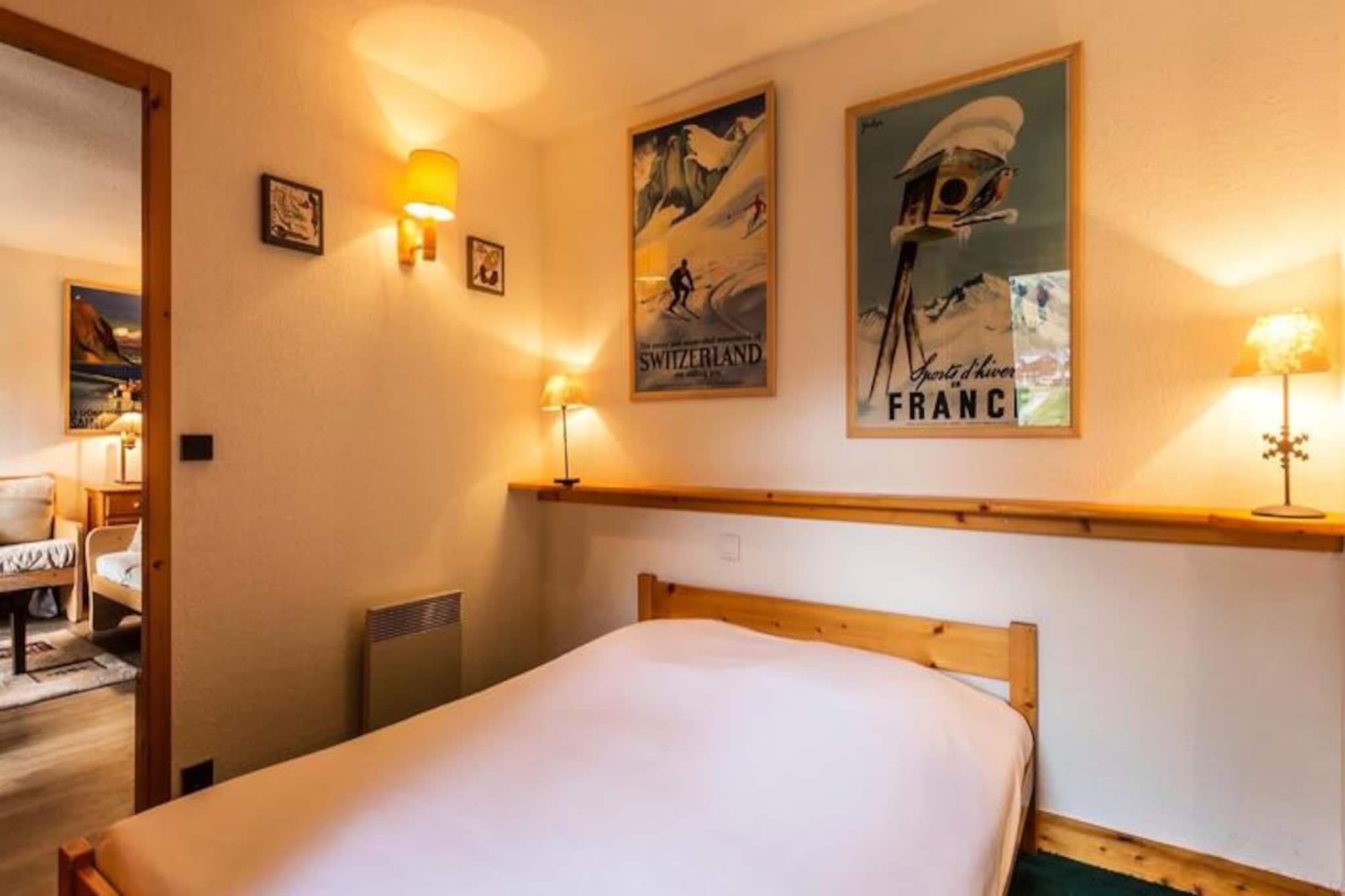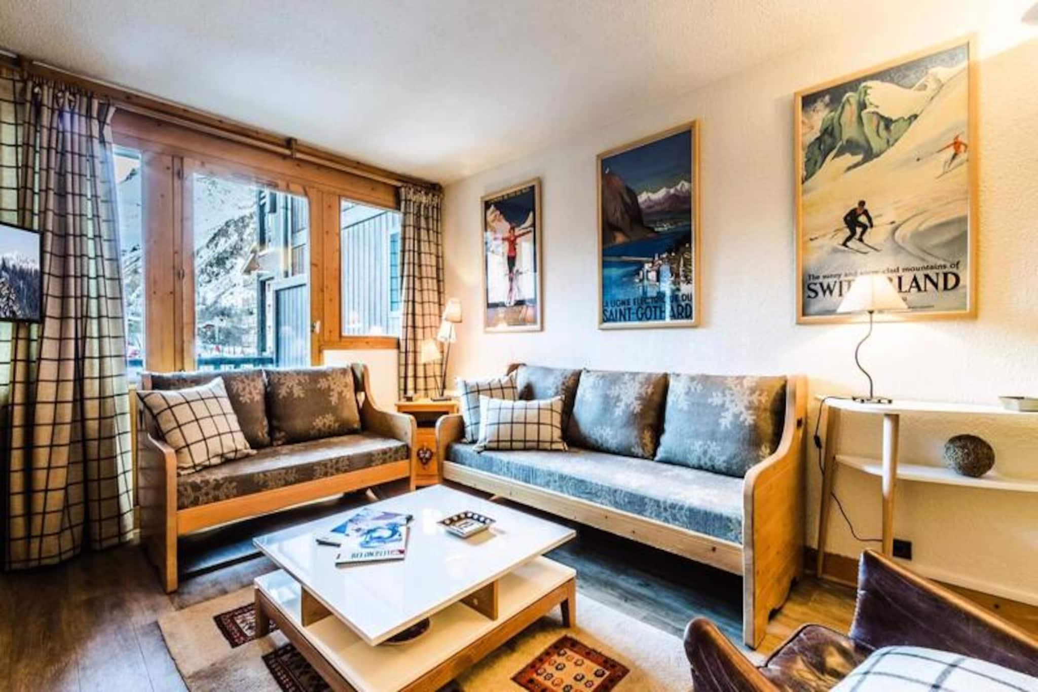 Under de tårnhøje tinder i de franske alper tilbyder denne charmerende lejlighed i Val d'Isère Village et uovertruffent alpint tilflugtssted. Med sin traditionelle savoyard-arkitektur af sten og træ udstråler boligen en varm og indbydende atmosfære, der perfekt kombinerer rustik charme med moderne komfort. Den sydvendte balkon tilbyder en betagende udsigt over de snedækkede skråninger, hvilket gør det til et idyllisk sted at nyde din morgenkaffe eller slappe af efter en dag med eventyr.\n\nDenne lejlighed på tredje sal i Saturne-residensen er designet til at rumme op til seks gæster og er både hyggelig og funktionel. Den har en rummelig stue med fladskærms-tv, et fuldt udstyret køkken med Nespresso-maskine og en spiseplads, der er perfekt til fælles måltider. Sovepladserne omfatter et komfortabelt dobbeltværelse med eget badeværelse samt to soveværelser med køjesenge, hver med et sæt køjesenge. Et andet badeværelse med badekar og vaskemaskine sikrer bekvemmelighed for alle gæster. Yderligere faciliteter såsom et skirum, overdækket parkering og gratis Wi-Fi forbedrer dit ophold.\n\nDenne lejlighed ligger kun få skridt fra pisterne, den franske skiskole og en række butikker og restauranter og er et paradis for både skientusiaster og fritidsrejsende. Nyd afterskiing-drinks på Coin des Amis, eller dans natten væk på Le Doudoune Club. Når du skal spise, kan du nyde de lokale smagsoplevelser på La Corniche eller drage fordel af eksklusive rabatter på skiudlejning i den nærliggende INTERSPORT Front de Neige MATTIS-butik.\n\nUanset om du er her for at grave dig gennem frisk puddersne, udforske den charmerende landsby eller blot slappe af i de rolige alpine omgivelser, lover dette Val d'Isère-tilflugtssted en uforglemmelig bjergferie. Med sin førsteklasses beliggenhed, moderne faciliteter og fantastiske udsigt er det den perfekte base for at skabe dyrebare minder i hjertet af de franske alper.