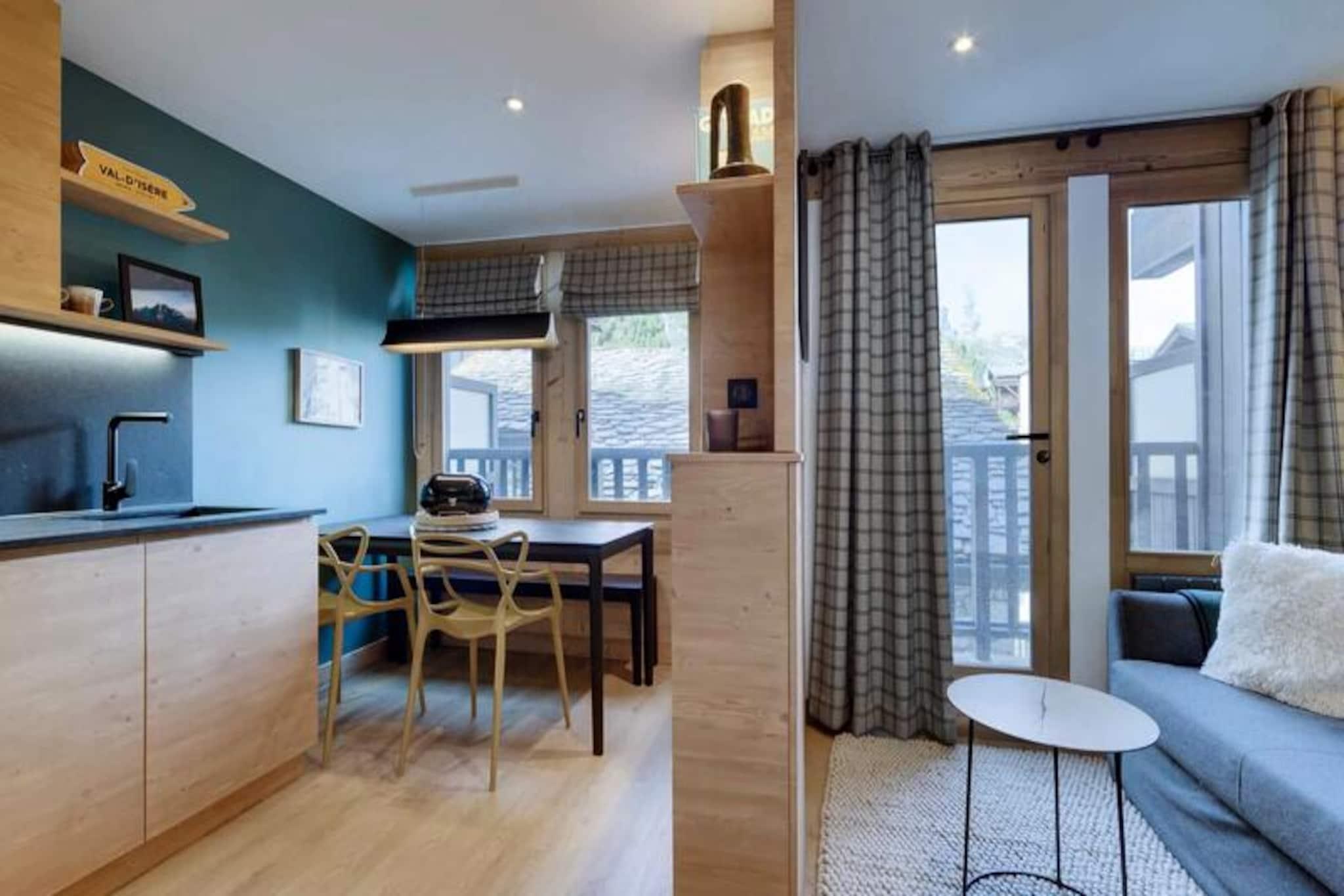 Midt i den fortryllende charme i Val d'Isère Village tilbyder denne smukt renoverede lejlighed et hyggeligt tilflugtssted for to, der blander moderne komfort med traditionel Savoyard-smag. Med sin vestvendte beliggenhed vågner du op til en betagende udsigt over den ikoniske Bellevarde-piste, et syn, der perfekt komplementerer den alpine atmosfære på denne eftertragtede destination. Uanset om du er her for spændende dage på pisterne eller rolige aftener i landsbyen, placerer denne bolig dig i hjertet af det hele. Lejligheden har en gennemtænkt planløsning med et separat soveværelse, et fuldt udstyret køkken og en indbydende stue udsmykket med et fladskærms-tv og bløde siddepladser. Badeværelset kan prale af et rummeligt brusebad og en vaskemaskine, mens et separat toilet og rigelig opbevaringsplads bidrager til bekvemmeligheden. Gæsterne vil sætte pris på de inkluderede faciliteter såsom Wi-Fi, sengelinned, håndklæder og rengøring midt i opholdet, hvilket sikrer en problemfri og afslappende ferieoplevelse. Kun få skridt fra din dør finder du direkte adgang til skiløjperne, den franske skiskole og en række butikker og restauranter. Til afterski-underholdning venter den livlige Coin des Amis og Le Doudoune Club, mens La Corniche tilbyder en smagsprøve på lokale kulinariske lækkerier. Skiudlejning er nemt med specialpriser i den nærliggende INTERSPORT Front de Neige MATTIS-butik. Uanset om du søger eventyr eller afslapning, er denne lejlighed den perfekte base for at udforske skønheden og spændingen i Val d'Isère. Fordyb dig i den alpine livsstil og skab uforglemmelige minder i denne maleriske bjerglandsby.