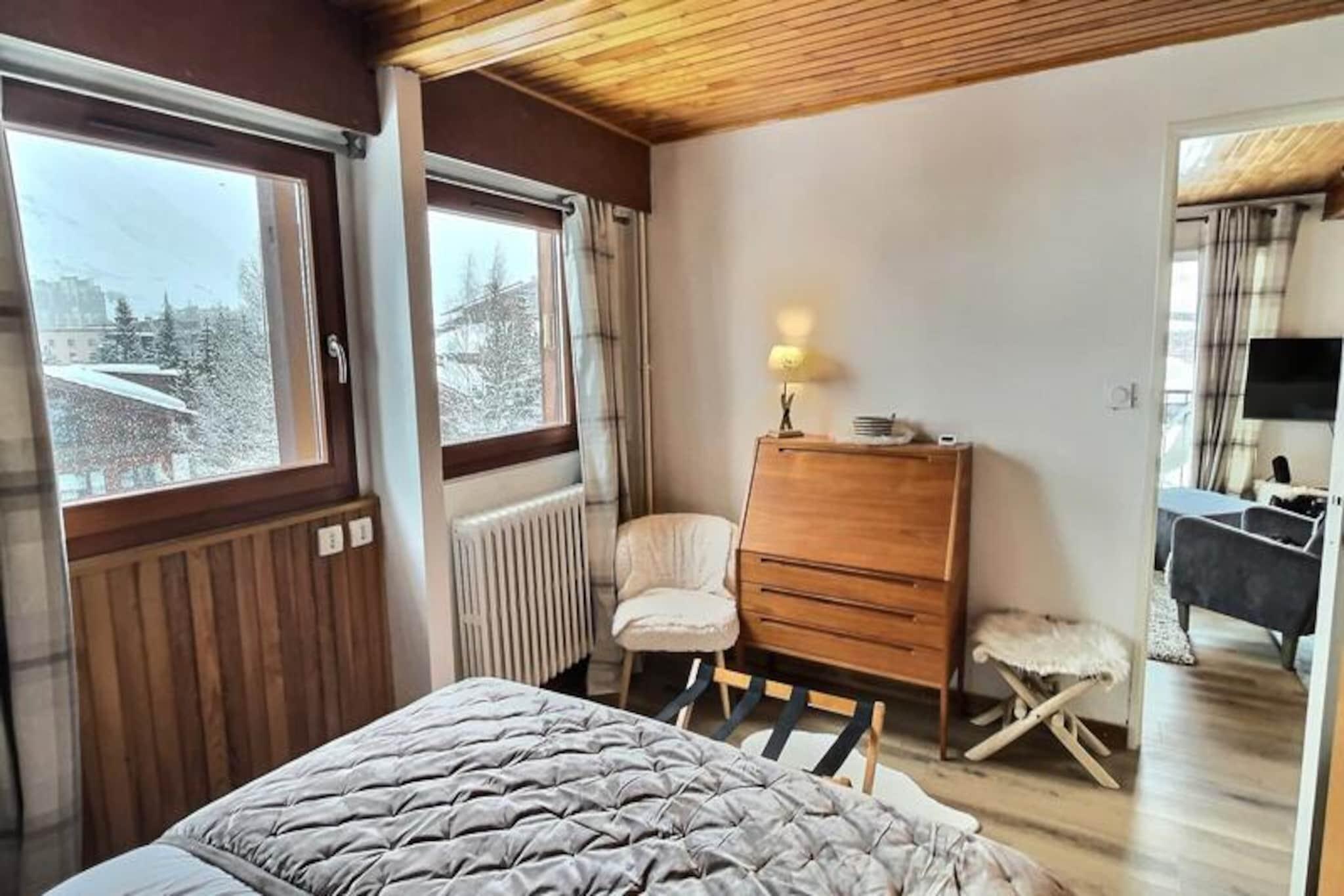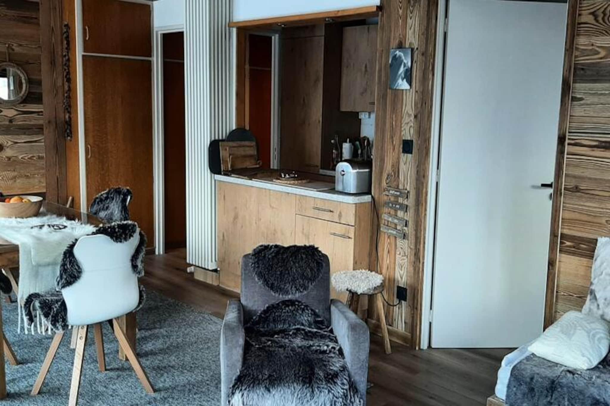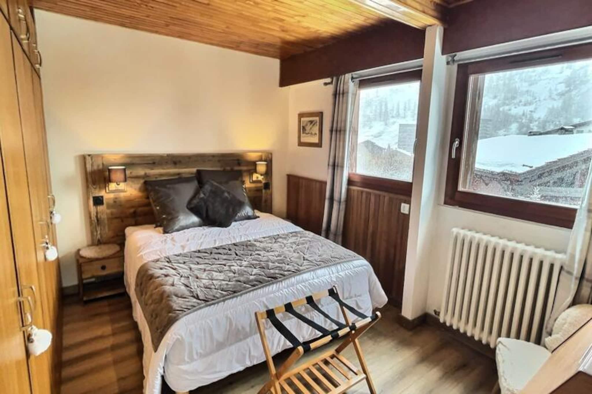 Højt over de betagende pister i Val d'Isère tilbyder denne charmerende 2-værelses lejlighed et roligt tilflugtssted for din skiferie eller sommerferie. Med sin sydøstvendte balkon vågner du op til panoramaudsigt over de majestætiske bjerge og uberørte pister, mens du fordyber dig i de franske alpers skønhed. Uanset om du er her for at grave dig gennem puddersne eller udforske frodige alpine stier, er denne bolig din port til eventyr og afslapning. \n\nLejligheden er på 54 m² og har komfortabel plads til op til fire gæster. Stuen har to hyggelige enkeltsenge, mens soveværelset kan prale af en luksuriøs dobbeltseng (160 cm). Det åbne køkken og opholdsstue er omhyggeligt designet til både komfort og bekvemmelighed og er udstyret med moderne apparater, herunder keramisk kogeplade, ovn, mikrobølgeovn, Nespresso-kaffemaskine og opvaskemaskine. Efter en dag med udforskning kan du slappe af i det rummelige badeværelse med badekar eller forfriske dig i det separate brusebad. Yderligere faciliteter såsom Wi-Fi, fjernsyn og vaskemaskine sikrer et problemfrit ophold. \n\nLejligheden ligger kun 300 meter fra pisterne og en kort 500 meter gåtur fra landsbyens centrum og tilbyder nem adgang til Val d'Isères livlige butikker, restauranter og afterski-aktiviteter. Den nærliggende L'Aiglon-residens bidrager til bekvemmeligheden, mens skiboksen holder dit udstyr sikkert og klar til action. \n\nUanset om du søger spændende nedkørsler eller rolige bjergudsigter, lover denne ikke-ryger, kæledyrsfri lejlighed en uforglemmelig alpin oplevelse. Lad charmen i Val d'Isère og komforten i denne residens skabe minder for livet.