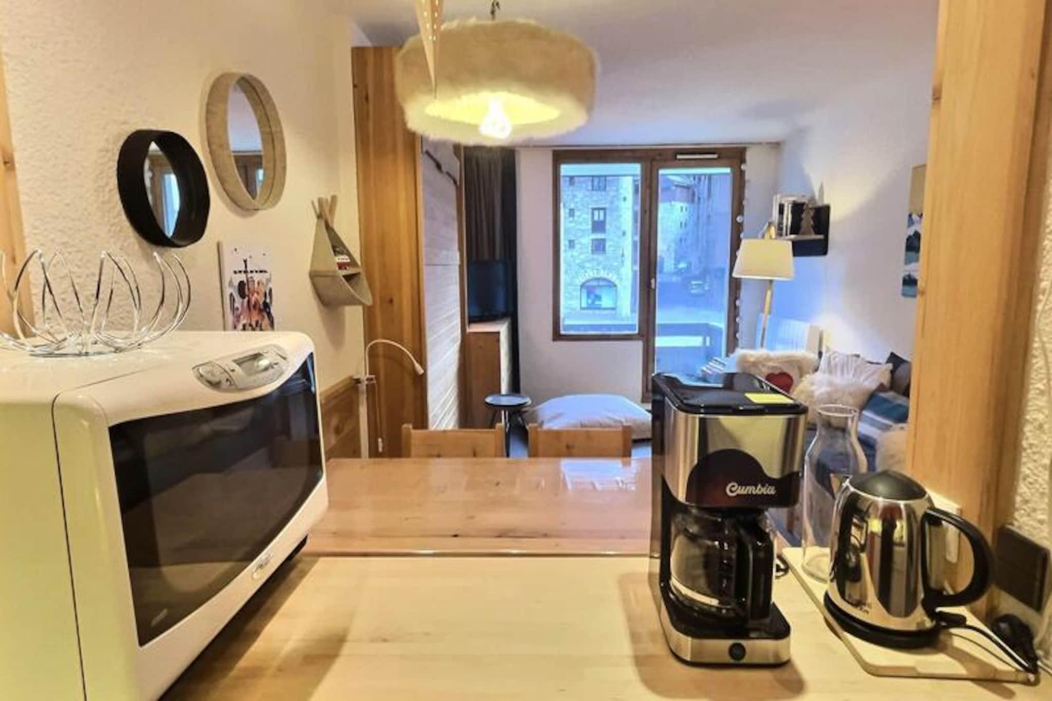 Højt over den charmerende landsby Val d'Isère tilbyder denne dejlige etværelseslejlighed et hyggeligt tilflugtssted med betagende udsigt over den omkringliggende skov og de majestætiske bjerge. Den sydvendte balkon er det perfekte sted at nyde det alpine solskin, mens man kigger ud over den maleriske landsby nedenfor, uanset om du er her for en spændende skiferie eller en rolig sommerferie. Med sin varme atmosfære og gennemtænkte design inviterer denne ejendom dig til at slappe af og omfavne de franske alpers skønhed. Indenfor har den 30 m² store lejlighed komfortabelt plads til op til fem gæster, hvilket gør den ideel til familier eller små grupper. Stuen har en praktisk 140 cm dobbeltseng, mens en sovealkove tilbyder to 80 cm køjesenge, perfekt til børn eller venner. En ekstra udtræksseng i gangen sikrer fleksibilitet for alle gæster. Det moderne køkken er fuldt udstyret med keramiske kogeplader, en kombineret mikrobølgeovn, en opvaskemaskine og en Krups-kaffemaskine, der giver alt, hvad du behøver for at tilberede lækre måltider efter en dag med eventyr. En hyggelig opholdsstue med tv og dvd-afspiller bidrager til komforten, mens lejlighedens Wi-Fi holder dig forbundet under hele dit ophold. Residensen kan prale af praktiske faciliteter såsom elevator, skiboks til dit udstyr og vaskemaskine til længere ophold. Beliggende kun få øjeblikke fra hjertet af Val d'Isère, har du nem adgang til de berømte skiløjper, charmerende butikker og dejlige restauranter, der gør denne destination så elsket. Om sommeren kan du udforske frodige vandrestier, mountainbikeruter og fredfyldte alpine søer. Uanset om du er tiltrukket af skiløb i verdensklasse eller de fredfyldte bjerglandskaber, er denne lejlighed den perfekte base for en uforglemmelig alpin ferie. Med sin indbydende atmosfære og uovertrufne beliggenhed venter dit Val d'Isère-eventyr.
