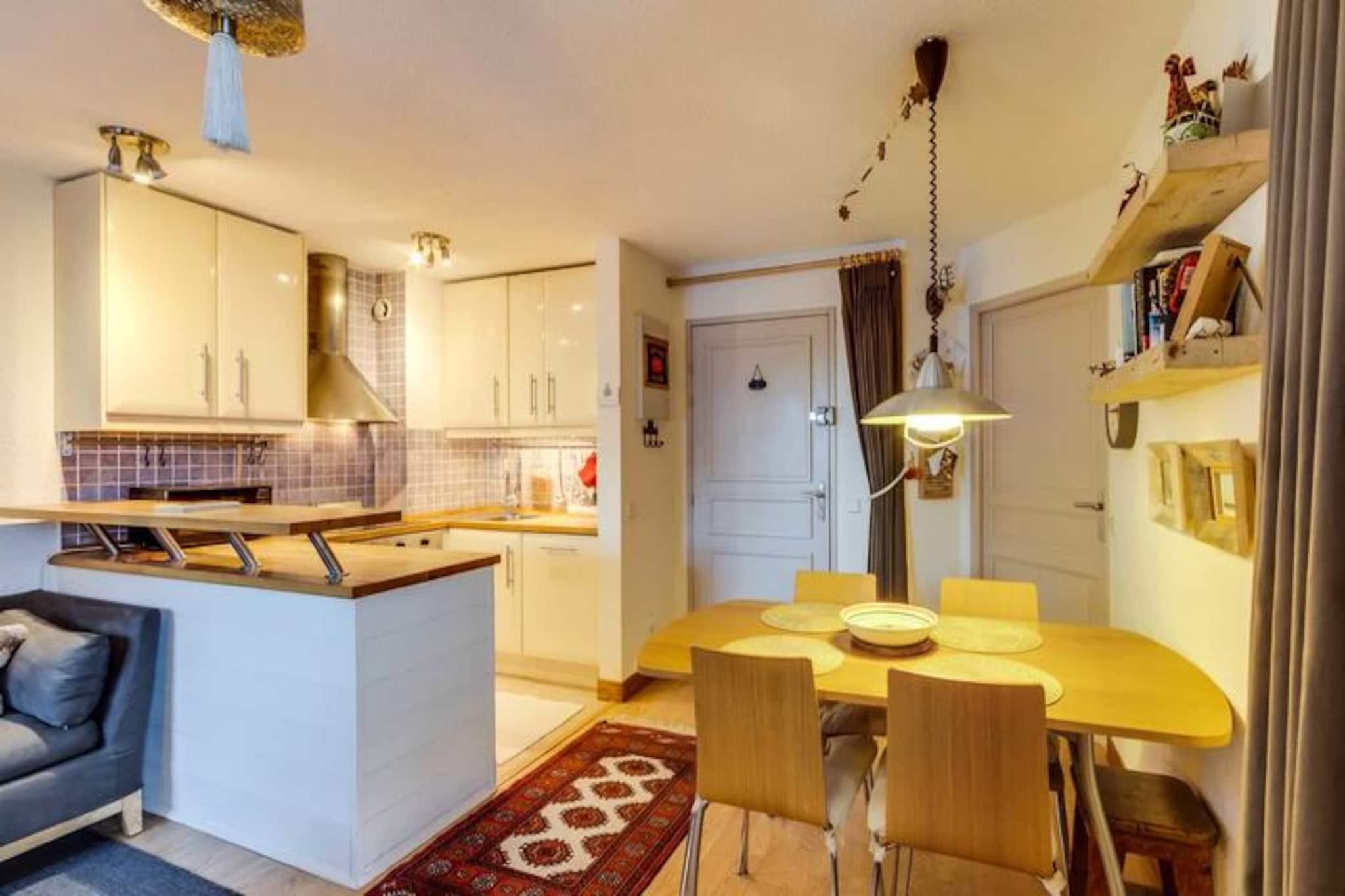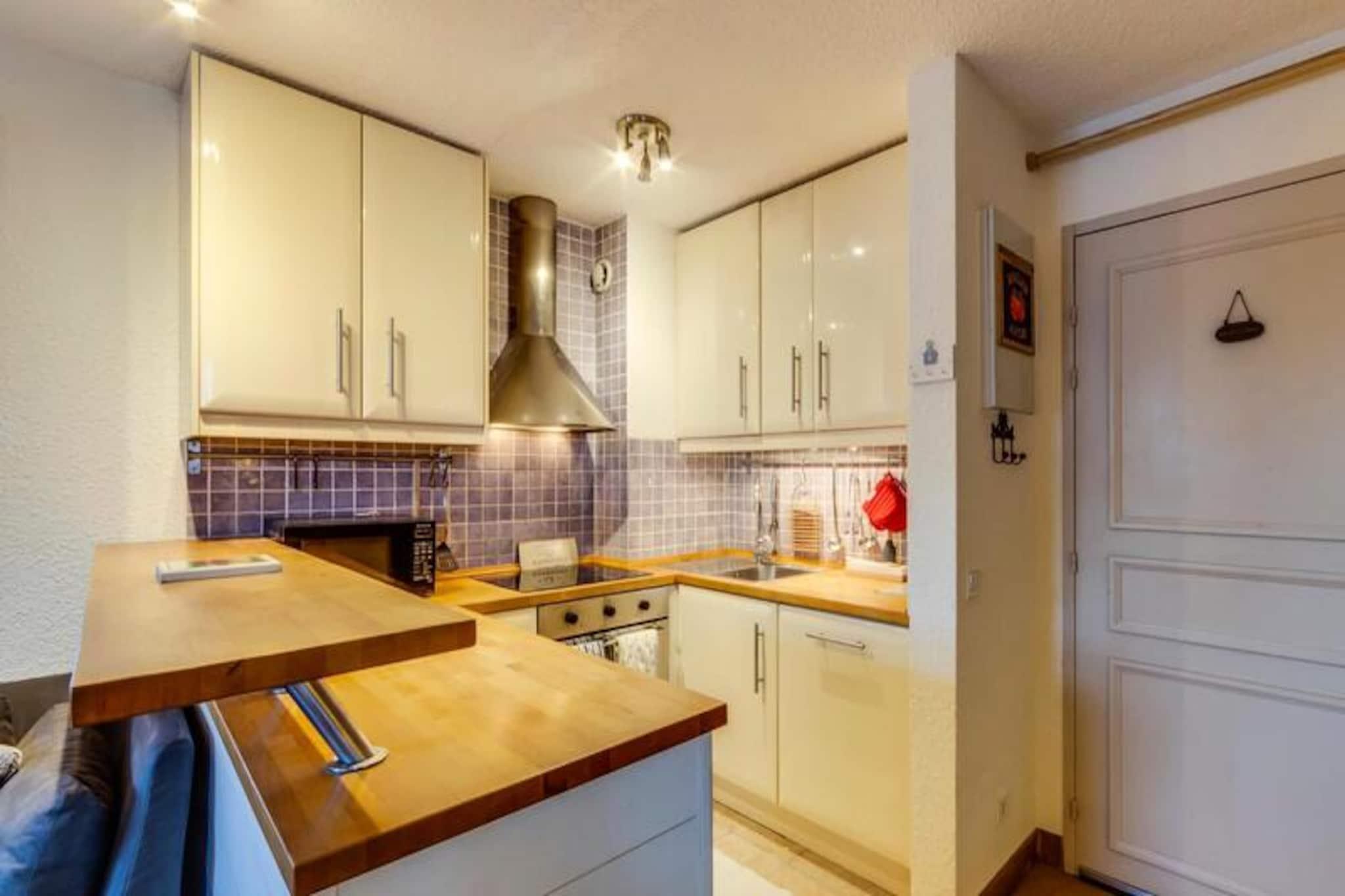 Højt over den maleriske landsby Val d'Isère tilbyder denne elegante lejlighed i La Résidence du Rond-Point des Pistes et hyggeligt tilflugtssted for dem, der søger den perfekte alpine ferie. Forestil dig at vågne op til en betagende udsigt over den legendariske Bellevarde-piste, træde ud på din vestvendte balkon for at indånde den friske bjergluft og forberede dig på en dag med eventyr i det berømte skiområde Espace Killy. Uanset om du er en ivrig skiløber eller blot ønsker at slappe af, placerer denne ejendom dig i hjertet af begivenhederne, samtidig med at den tilbyder en rolig flugt. \n\nLejligheden har plads til op til fire gæster og har et rummeligt soveværelse med dobbeltseng og en charmerende hytte med to køjesenge. Den lyse, åbne stue inviterer dig til at slappe af med fladskærms-tv, Apple TV, Netflix og Wi-Fi, mens det fuldt udstyrede køkken gør det nemt at tilberede solide måltider efter en dag på pisterne. Med gennemtænkte faciliteter som vaskemaskine/tørretumbler, skiboks og overdækket parkeringsplads er hver eneste detalje designet til din komfort. Badeværelset kan prale af dobbelte håndvaske, et badekar og en håndklædetørrer, hvilket sikrer en afslappende afslutning på din dag. \n\nTræd udenfor og oplev bekvemmeligheden ved direkte adgang til skilifter og pister. Familier vil sætte pris på den nærliggende børnelandsby, mens ikke-skiløbere kan forkæle sig selv i Aquasportif Centre, der har en swimmingpool og et wellness-område. Landsbyens centrum ligger kun en kort gåtur eller tur med bus væk og tilbyder en pulserende blanding af restauranter, butikker og natteliv, herunder den livlige Le Doudoune Club. Snowberry og INTERSPORT MATTIS tilbyder skiudlejning af topkvalitet med eksklusive rabatter. \n\nUanset om du er tiltrukket af spændingen ved skiløb, charmen ved Val d'Isères alpine atmosfære eller komforten i et veludstyret hjem, lover denne lejlighed et uforglemmeligt ophold i de franske alper.