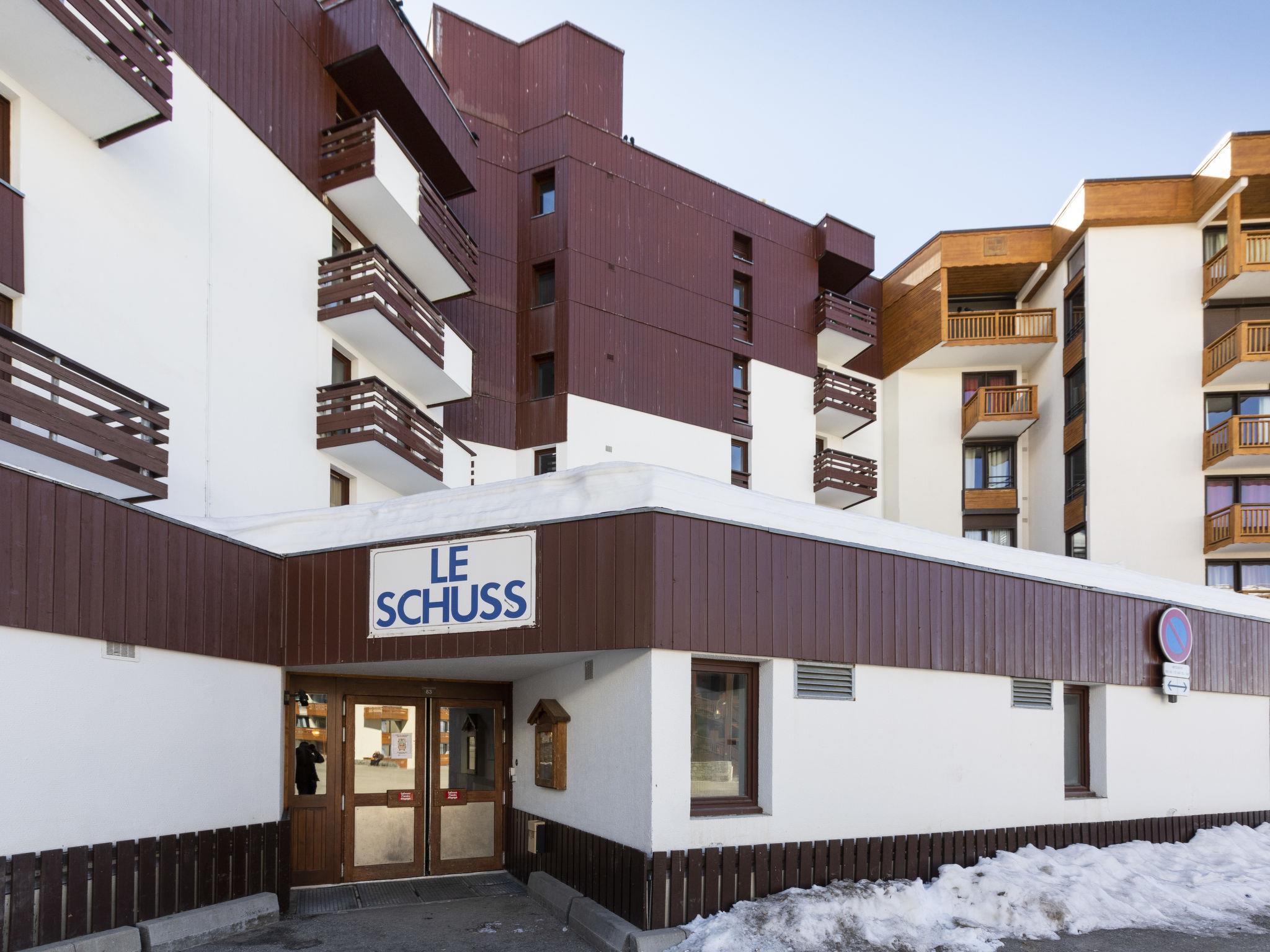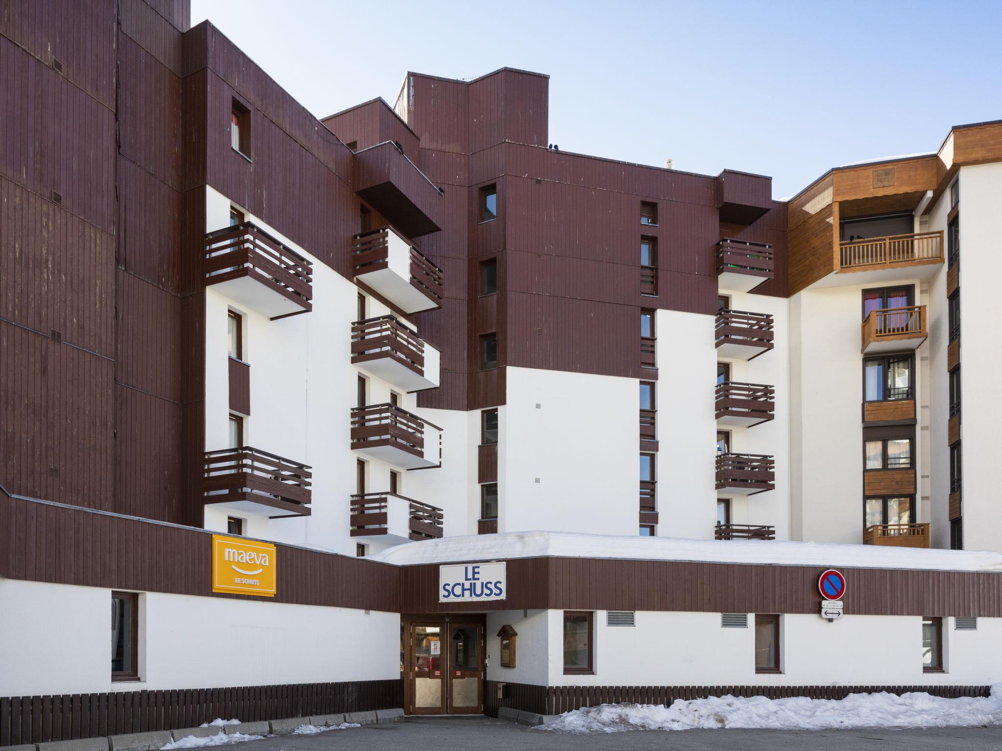 Residence "Le Schuss 309". Above Val Thorens, in the district of Péclet, in a quiet, sunny position, 50 m from the skiing area, south-east facing position. In the complex: internet access, WiFi (extra). Lift. Public car park at 500 m, extra. Bus stop 800 m. Gondola lift, skisport facilities 50 m, slopes 20 m, ski rental 50 m, ski bus stop 100 m, ski school 500 m, children's ski school 600 m, ski-kindergarten, ice rink, children's playground 100 m. Groups of teenagers on request only.