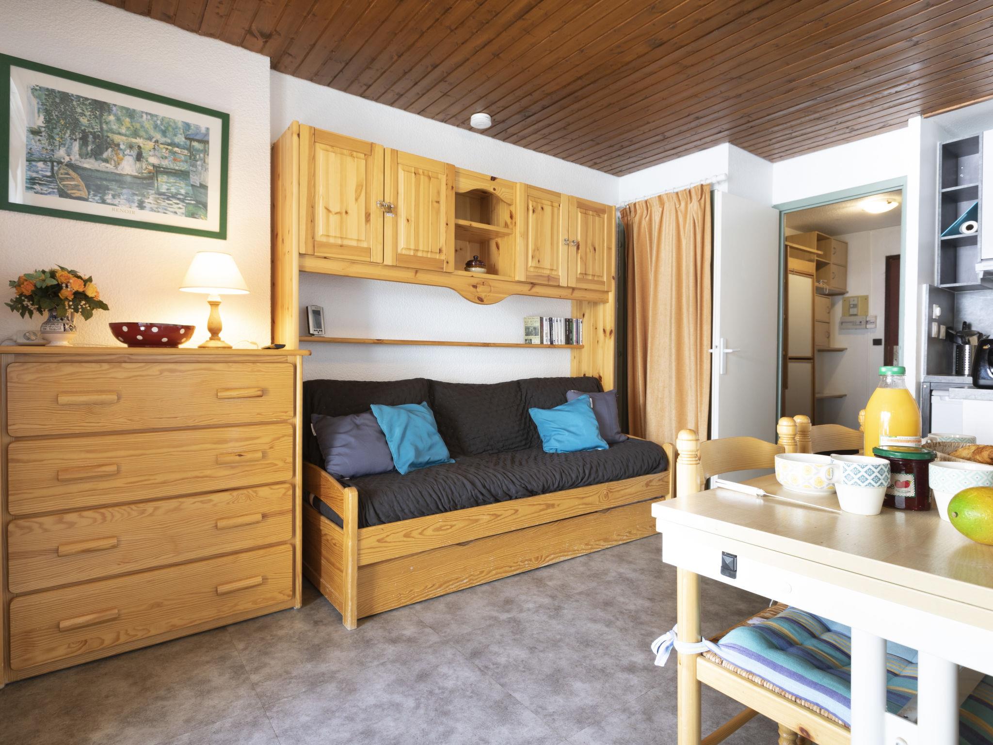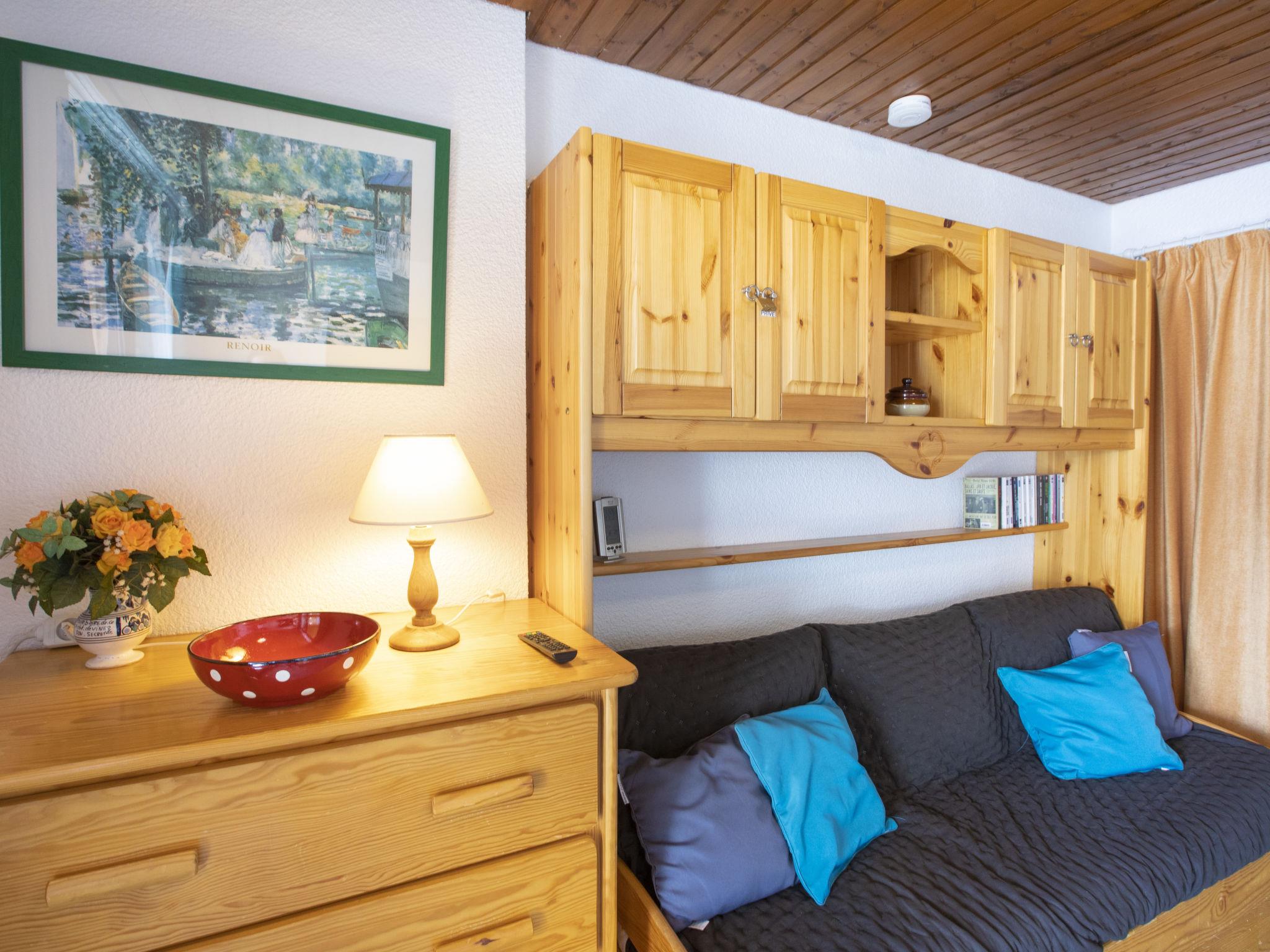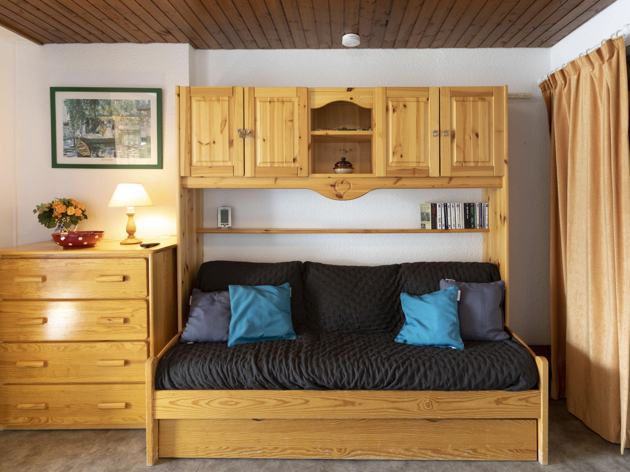 "Schuss 309", 1-room apartment 28 m2 on 3rd floor. Partly renovated in 2021, very beautiful furnishings: living/dining room with veranda with 1 pull-out bed (2 pers. 2 x 80 cm, length 190 cm), TV (flat screen), electric heater. Exit to the veranda. Entrance hall with 2 wall-trunk beds (80 cm, length 190 cm). Kitchenette (oven, dishwasher, 3 induction hot plates, kettle, electric coffee machine, Capsules for coffee machine (nespresso) extra, combination microwave). Bathroom, sep. WC. South-east facing position. Facilities: Internet (WiFi, extra). Please note: non-smokers only. Smoke alarm. pets not allowed. 73257007523WF
