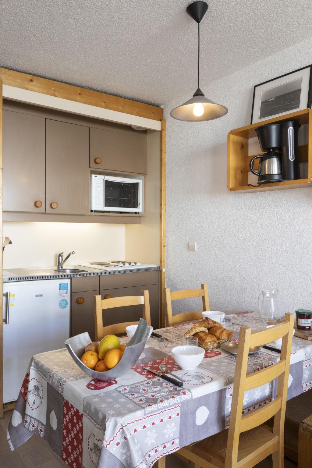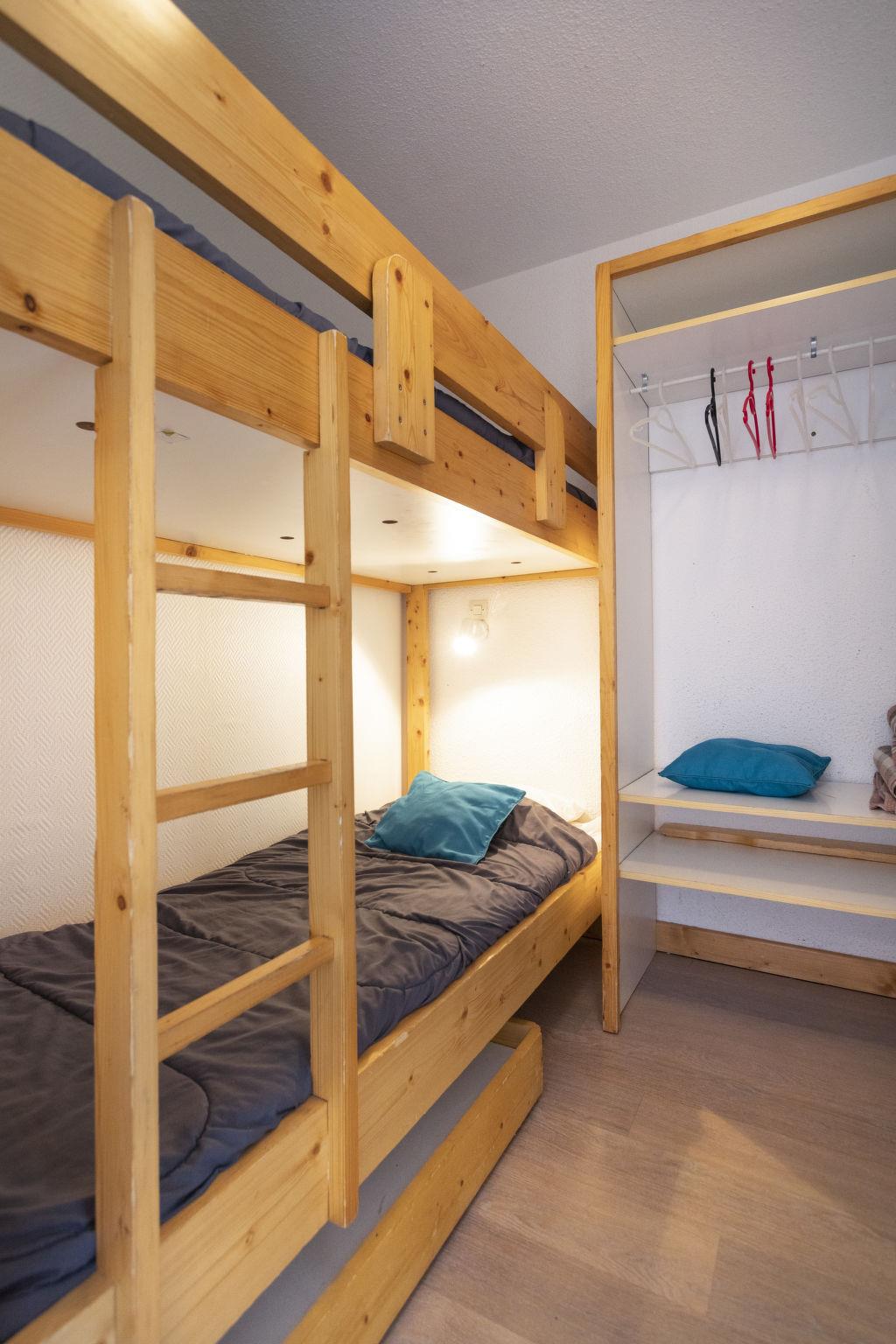 "Lauzières 308", 2-room apartment 26 m2 on 3rd floor, south facing position. Living/dining room with 1 pull-out bed (2 x 80 cm, length 190 cm), TV (flat screen), electric heating. 1 small room 5 m2 with sliding door with 1 pull-out bed (2 pers. 2 x 80 cm, length 190 cm). Sleeping alcove with 1 x 2 bunk beds (80 cm, length 190 cm). Kitchenette (4 hot plates, oven, kettle, electric coffee machine). Bathroom, sep. WC. Balcony, south facing position. Facilities: Internet (WiFi, extra). Please note: maximum 1 pet/ dog allowed. Smoke alarm. Instead of an enclosed bedroom, some sleeping areas are located in an open-plan area (gallery, alcove, etc.). 73257010268HT