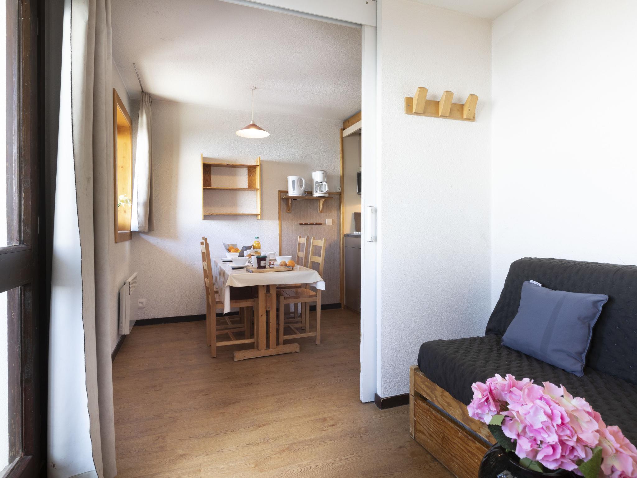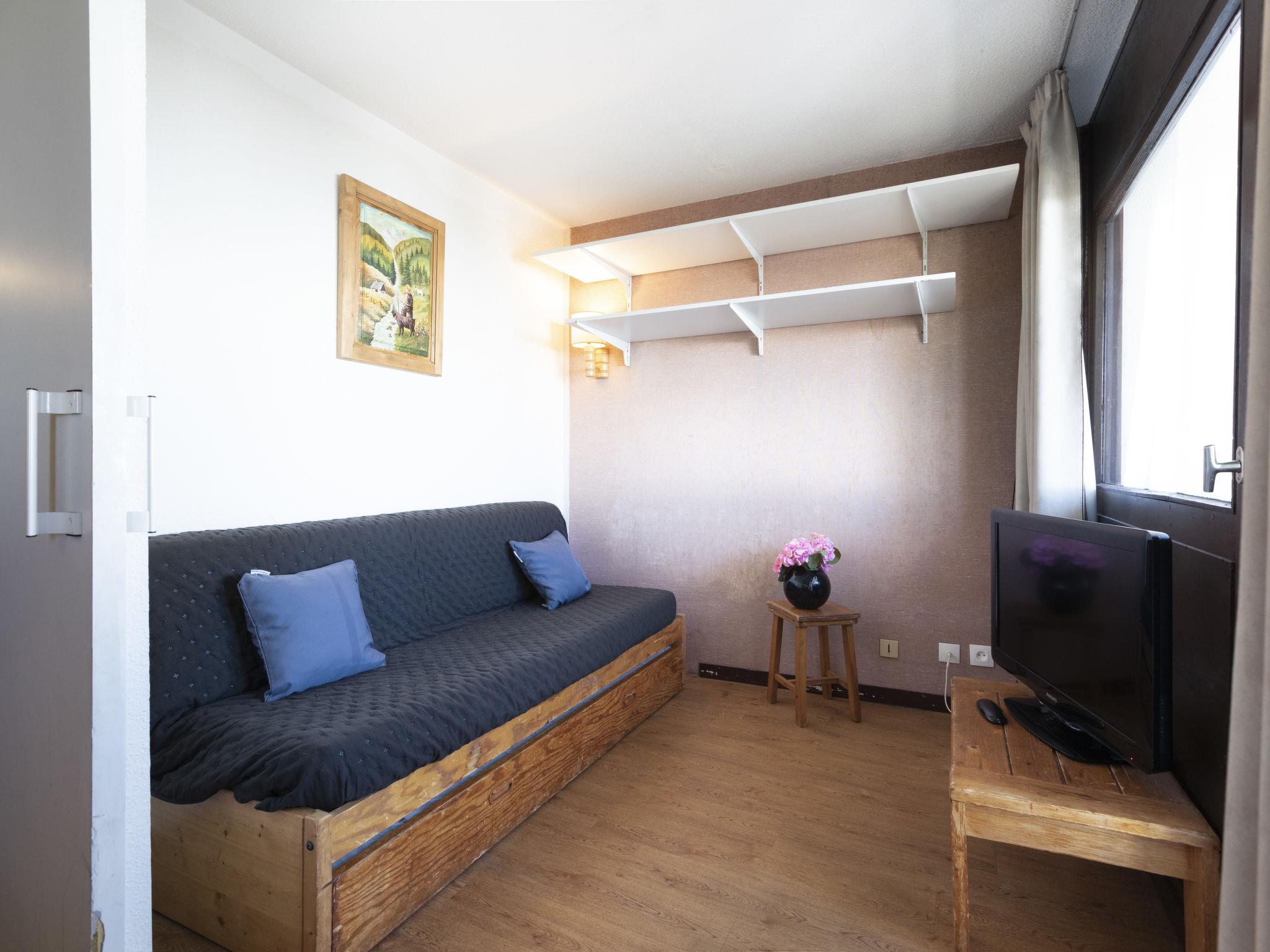 "Arcelle 308", 2-room apartment 22 m2 on 3rd floor, south-west facing position. Bright, partly renovated in 2024: living/dining room with electric heater. 1 small room 6 m2 with sliding door with 1 pull-out bed (2 pers. 2 x 80 cm, length 190 cm), TV (flat screen). Exit to the veranda, south-west facing position. Sleeping alcove with 1 x 2 bunk beds (80 cm, length 190 cm). Kitchenette (4 hot plates, kettle, electric coffee machine, combination microwave) with dining table, electric heater. Shower, sep. WC. Beautiful view. Facilities: Internet (WiFi, extra). Please note: non-smokers only. Maximum 1 pet/ dog allowed. Smoke alarm. Instead of an enclosed bedroom, some sleeping areas are located in an open-plan area (gallery, alcove, etc.). 73257008410SB