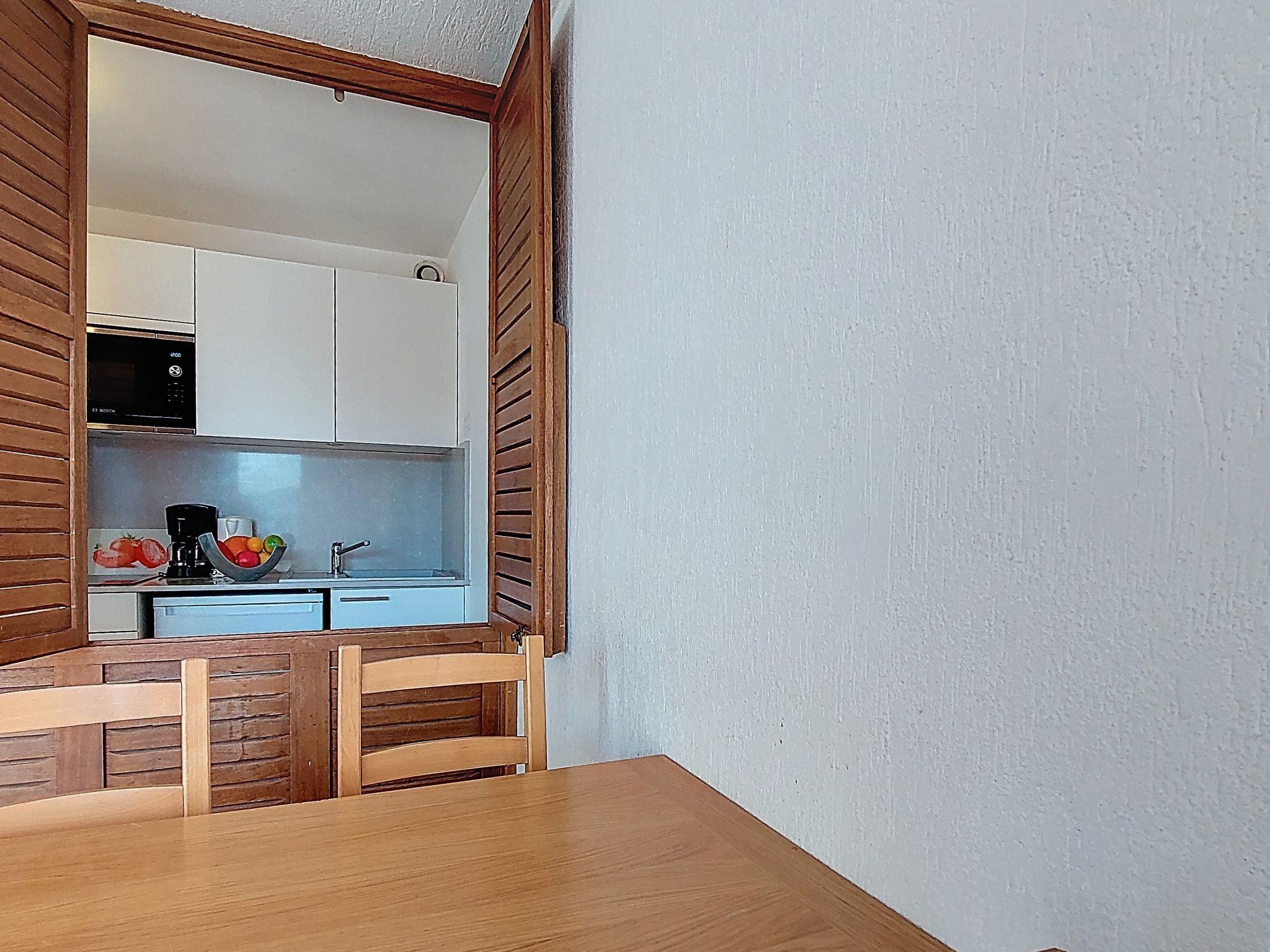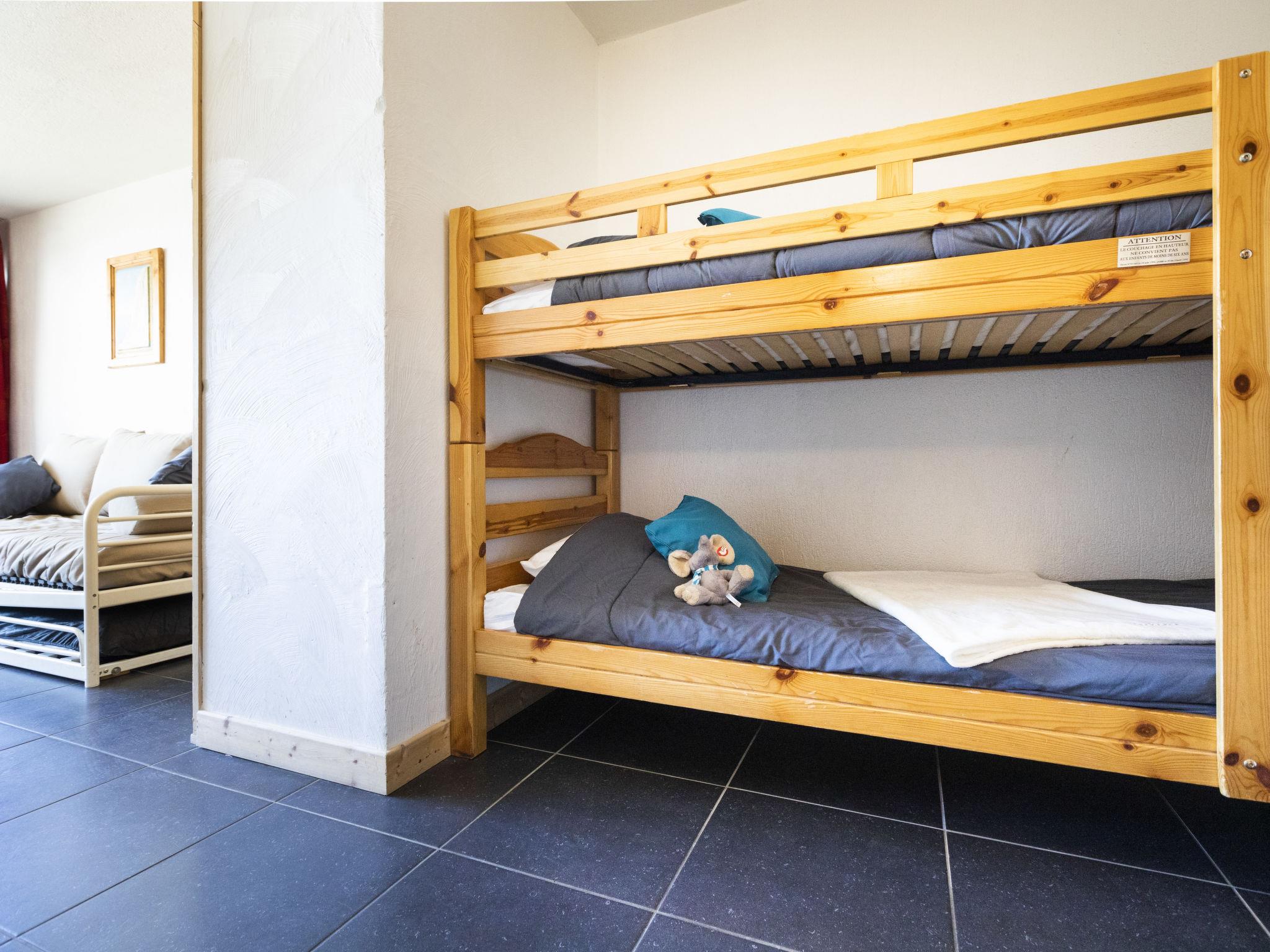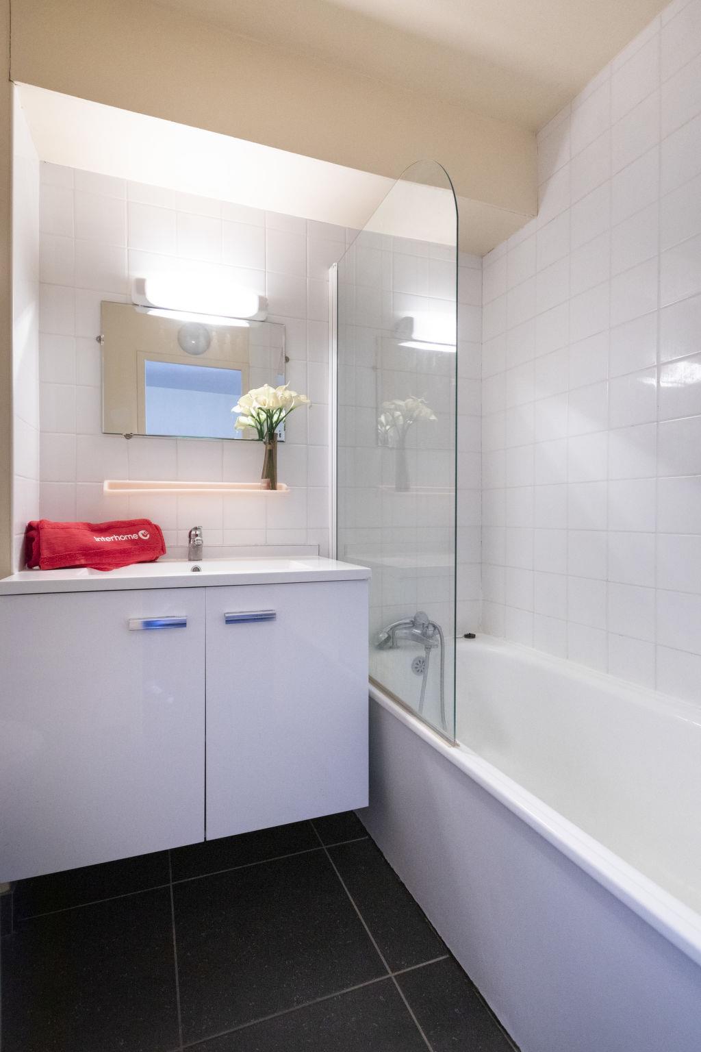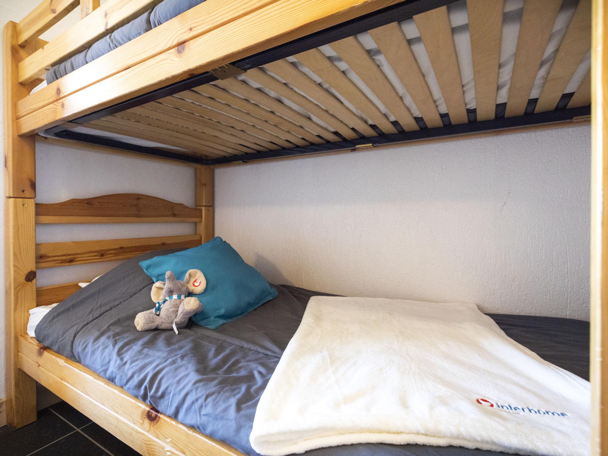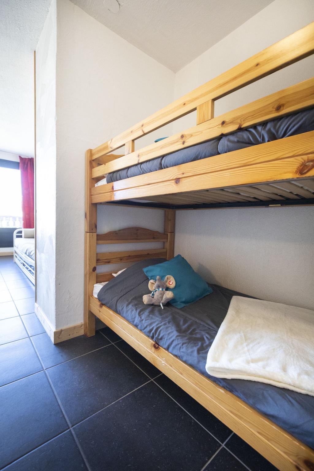 "Glacieres 22", 1-room apartment 25 m2 on 2nd floor, south facing position. Very simple furnishings: living/dining room with 1 pull-out bed (1 pers. 2 x 80 cm, length 190 cm). Exit to the balcony, south facing position. Entrance hall with 1 x 2 bunk beds (80 cm, length 190 cm). Kitchenette (oven, 3 induction hot plates, electric coffee machine). Bath/WC. Small balcony 2 m2, south facing position. View of the countryside and the resort. Facilities: Internet (WiFi, extra). Please note: maximum 1 pet/ dog allowed. Smoke alarm. 73257006156AK