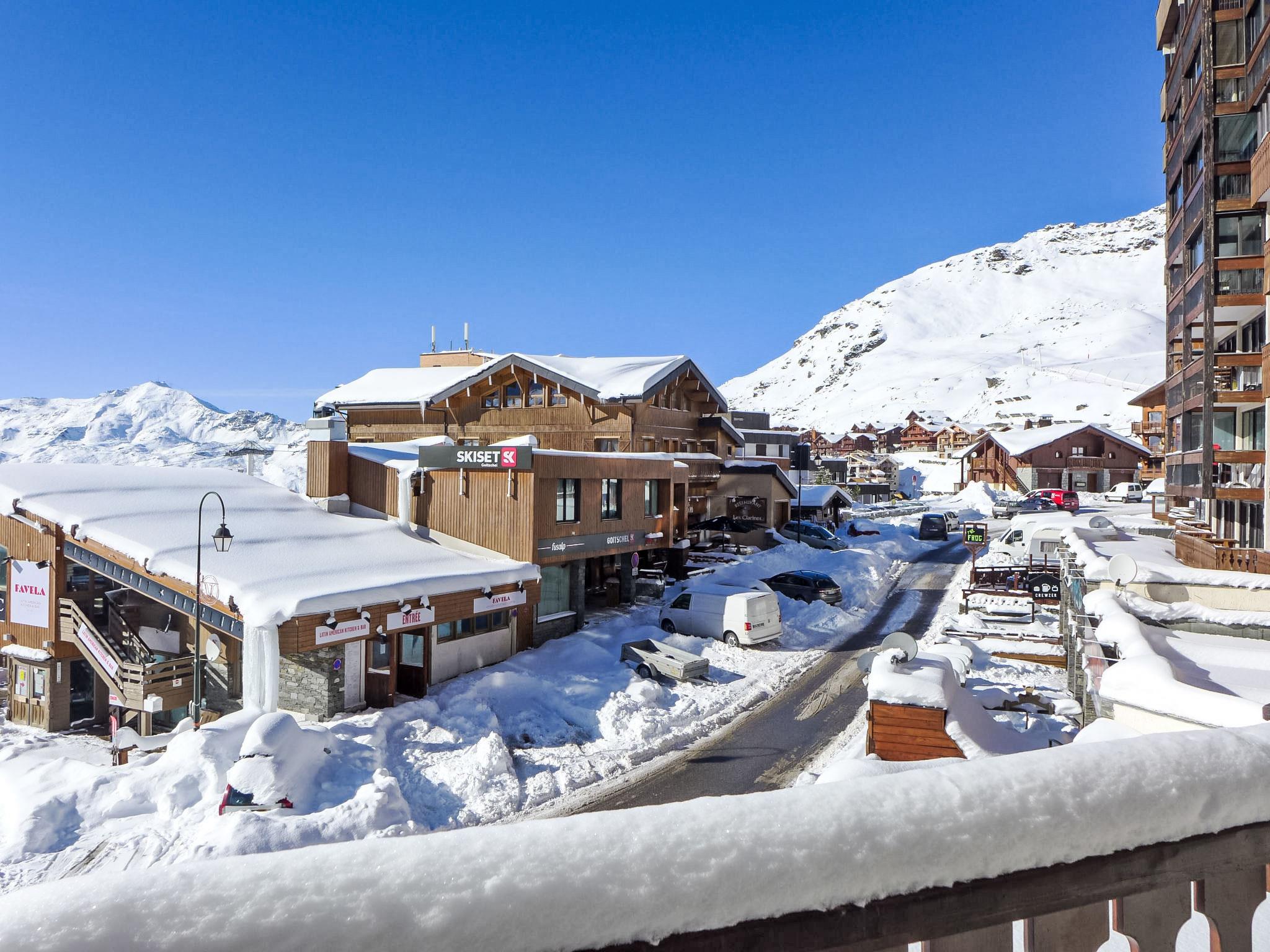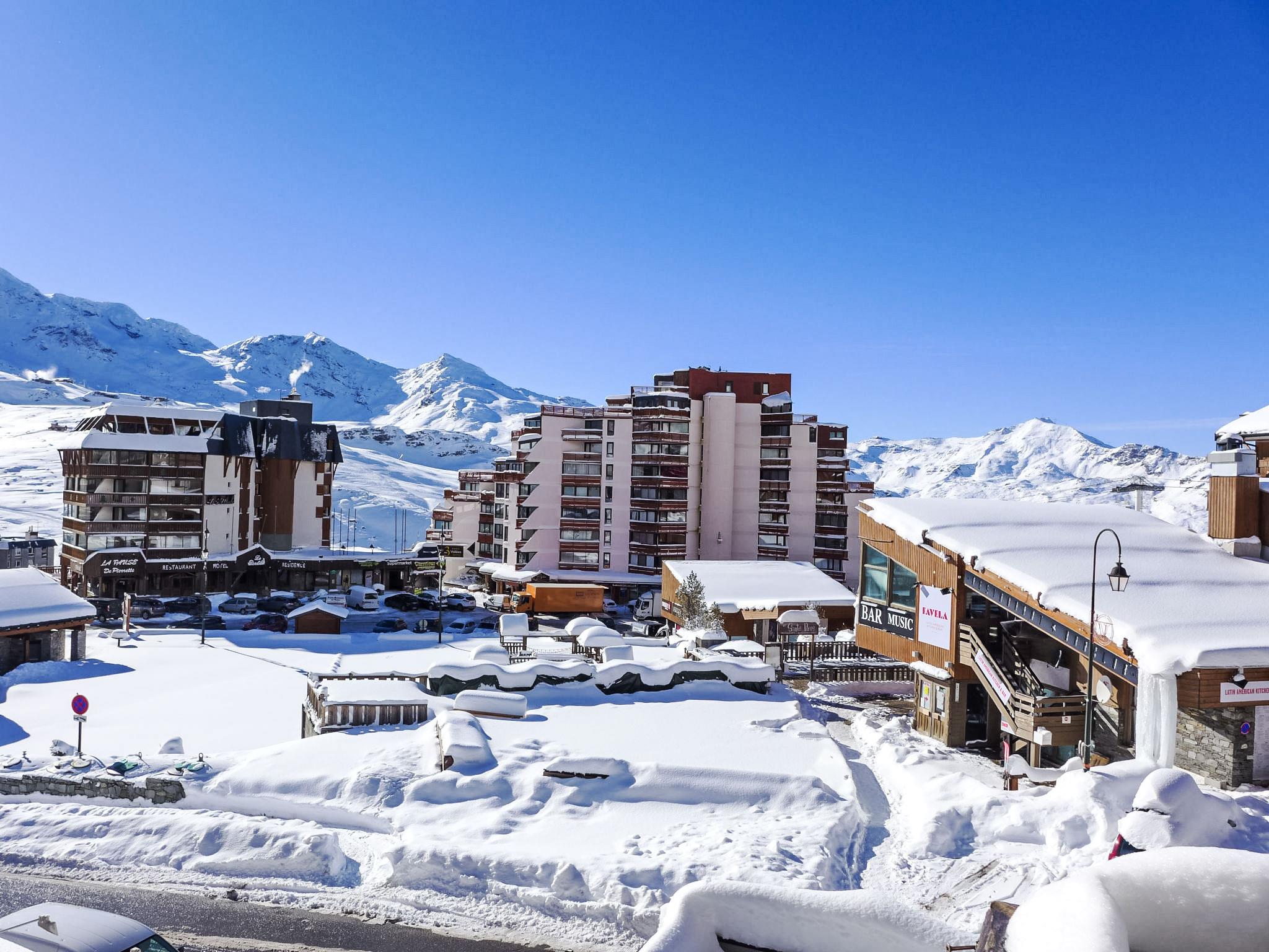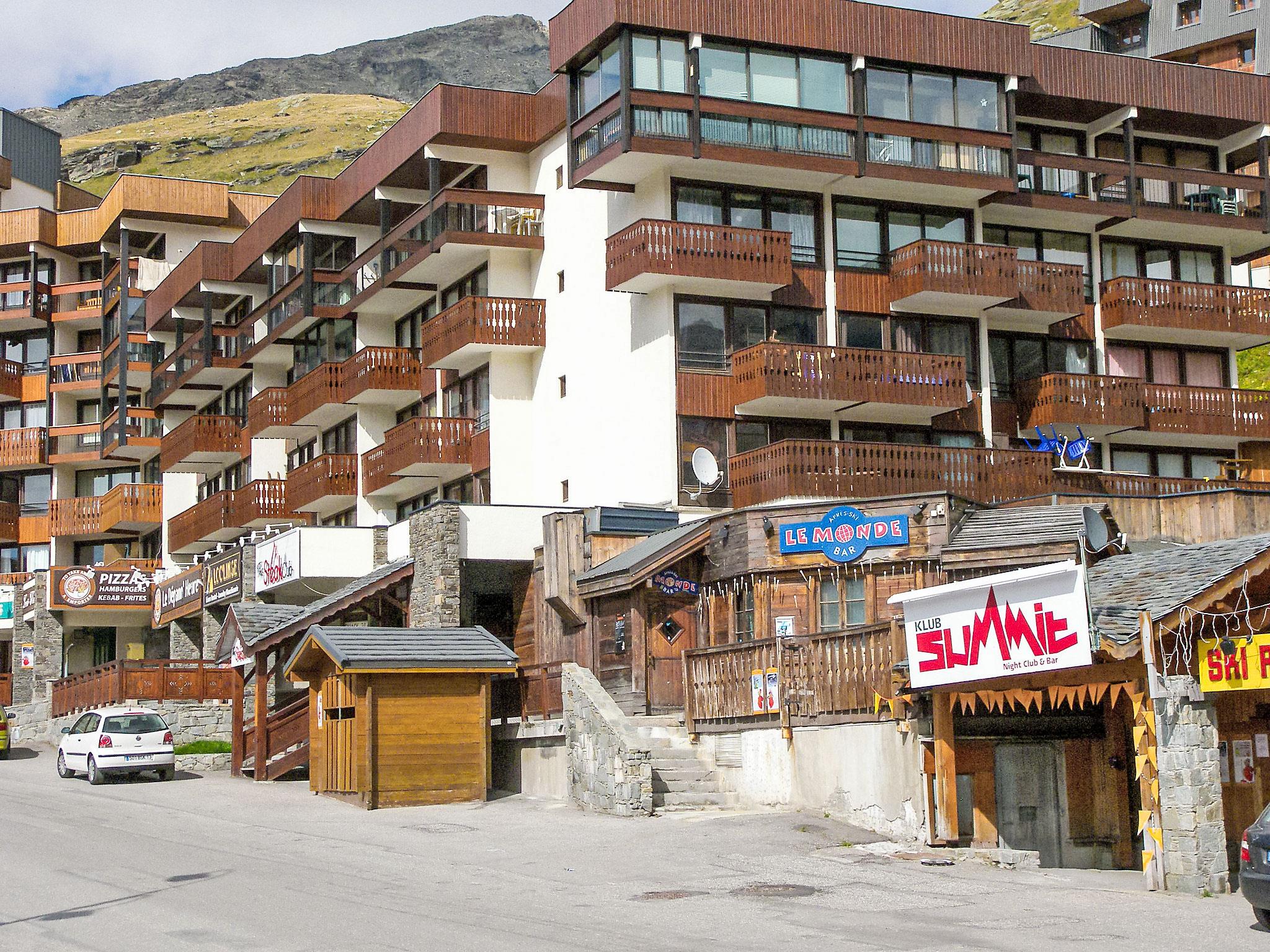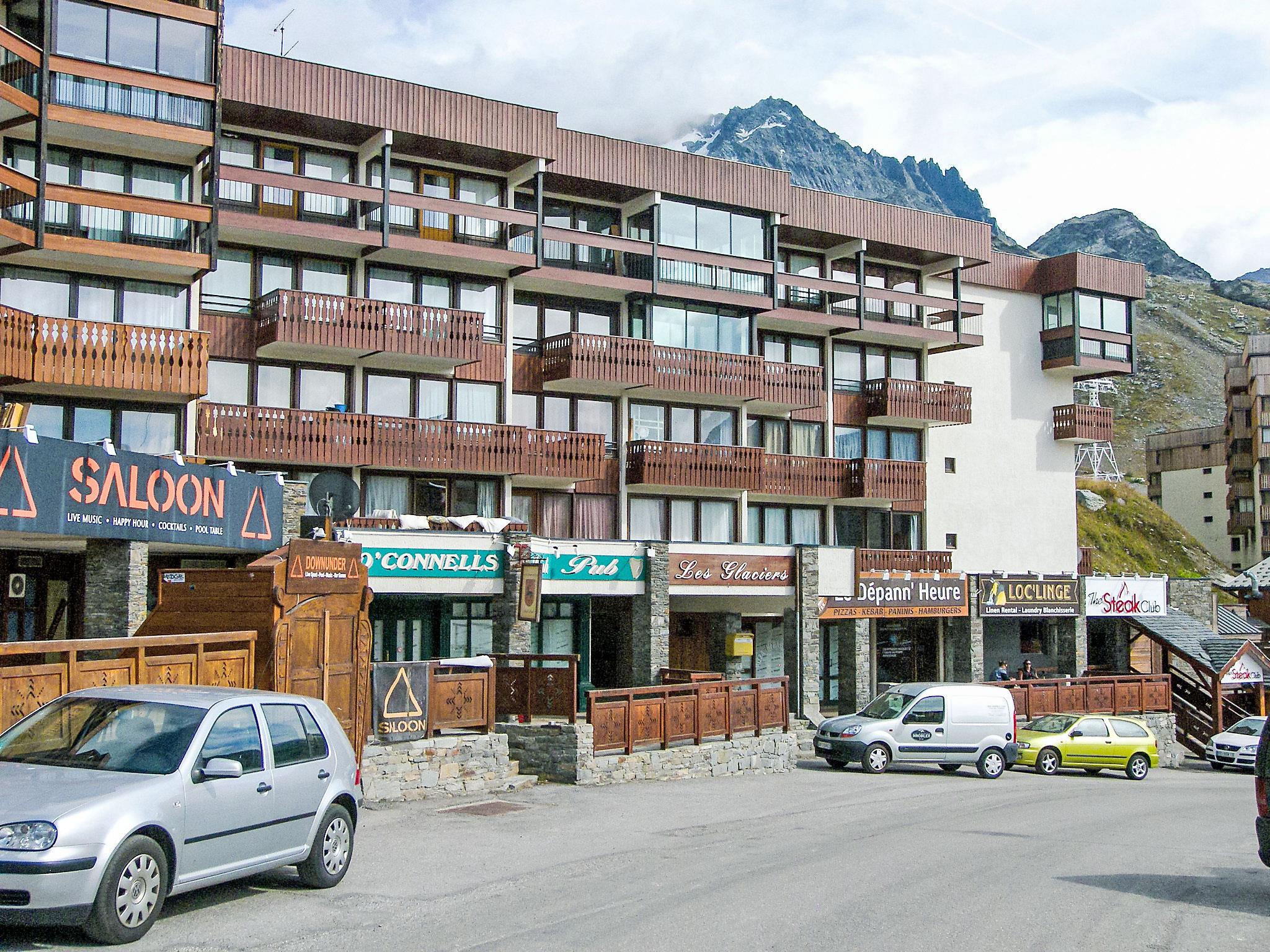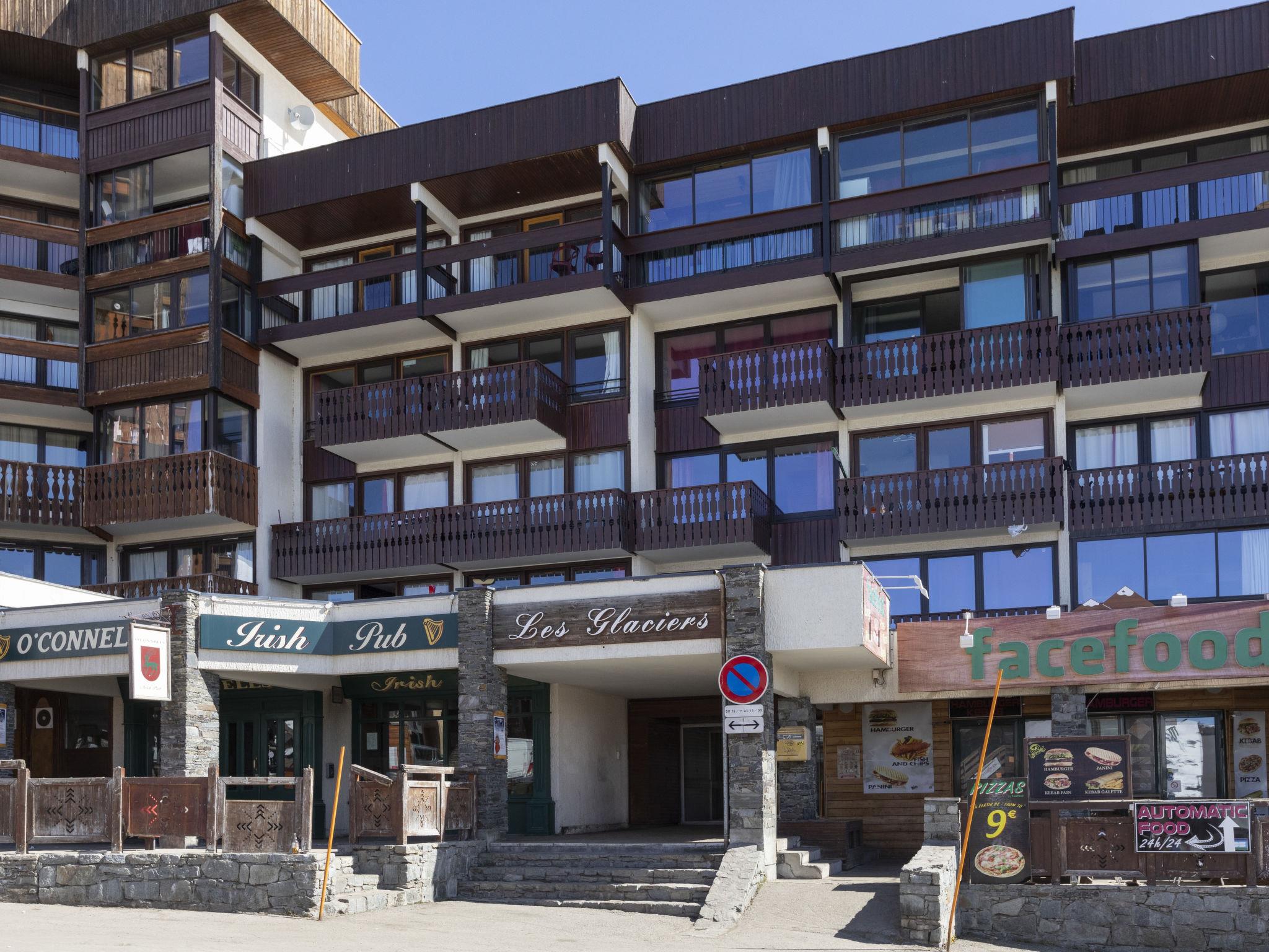 Residence "Les Glaciers". Above Val Thorens, in the district of Péclet, in a busy position, 100 m from the skiing area. In the complex: restaurant, bar, lift, storage room for skis, central heating system. Shop 20 m, grocery, supermarket 100 m, shopping centre, restaurant 20 m, bar 10 m, bakery 600 m, pedestrian zone 150 m, 4 minute walk to the centre, bus stop 750 m. Sports centre 600 m, cable car, chair lift, gondola lift 300 m, skisport facilities 500 m, slopes 300 m, ski rental 30 m, ski bus stop 40 m, ski school 150 m, ice rink 20 m. Please note: nightclub/disco. Nightclub, restaurant at bottom of the building, good location for nightlife. Not recommended for families.
