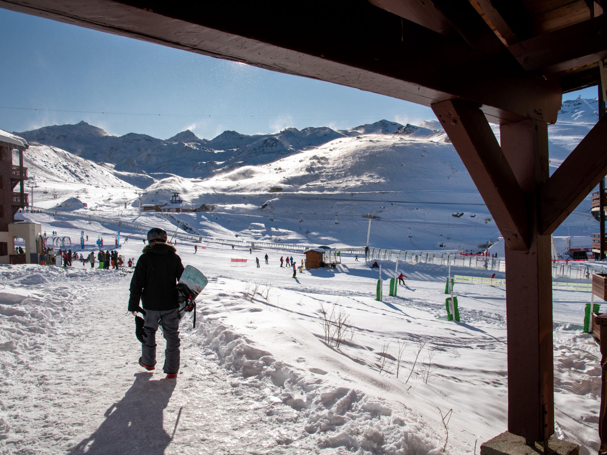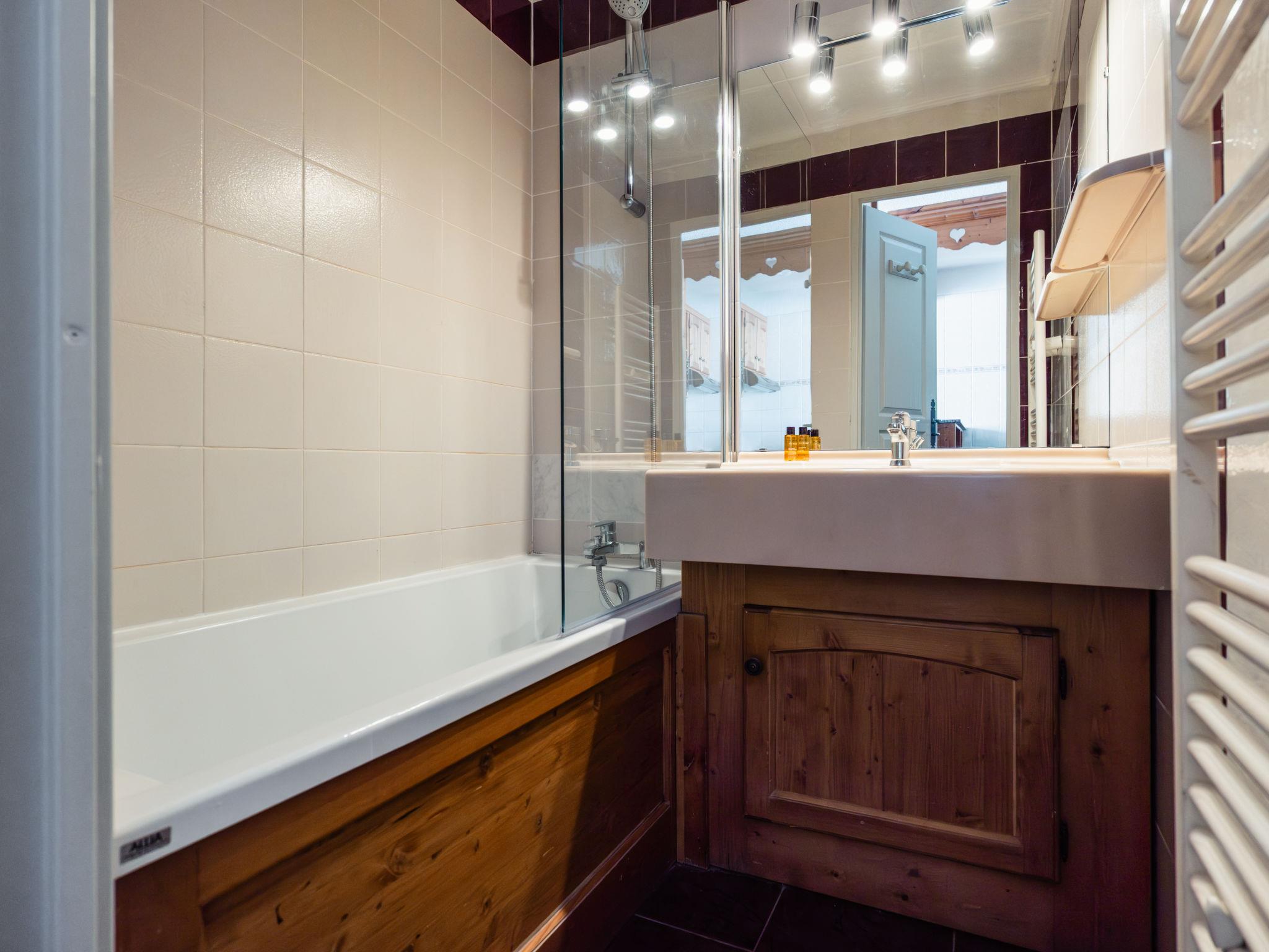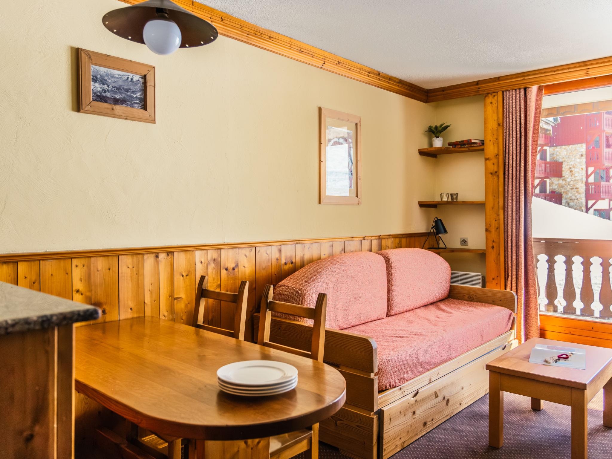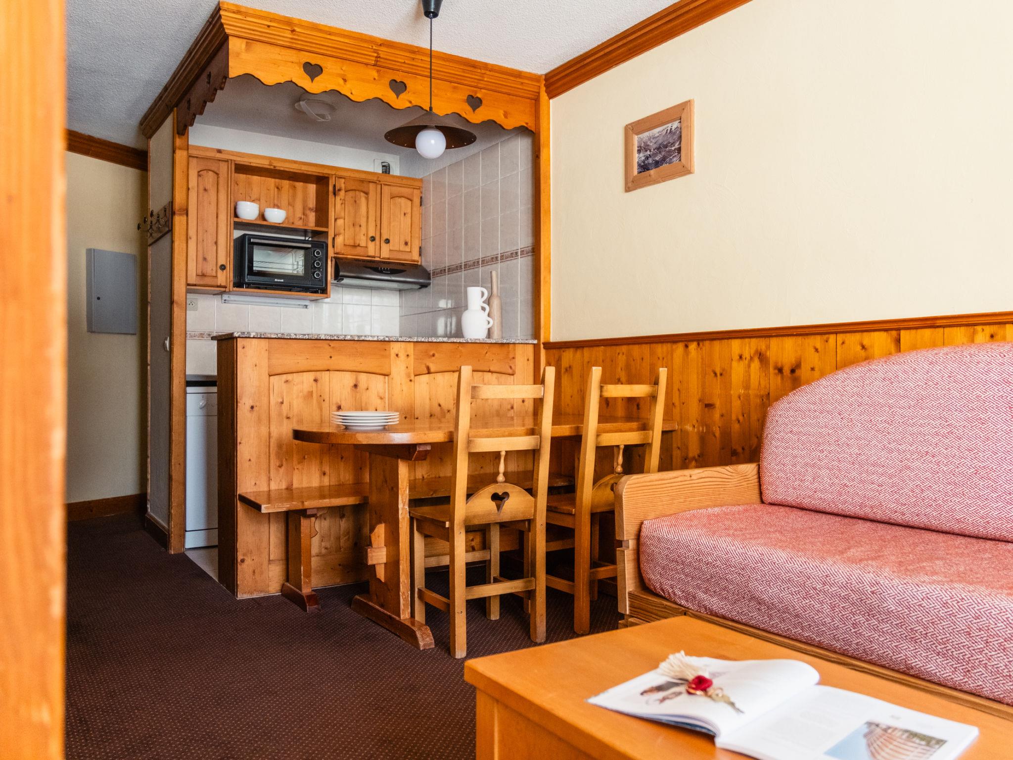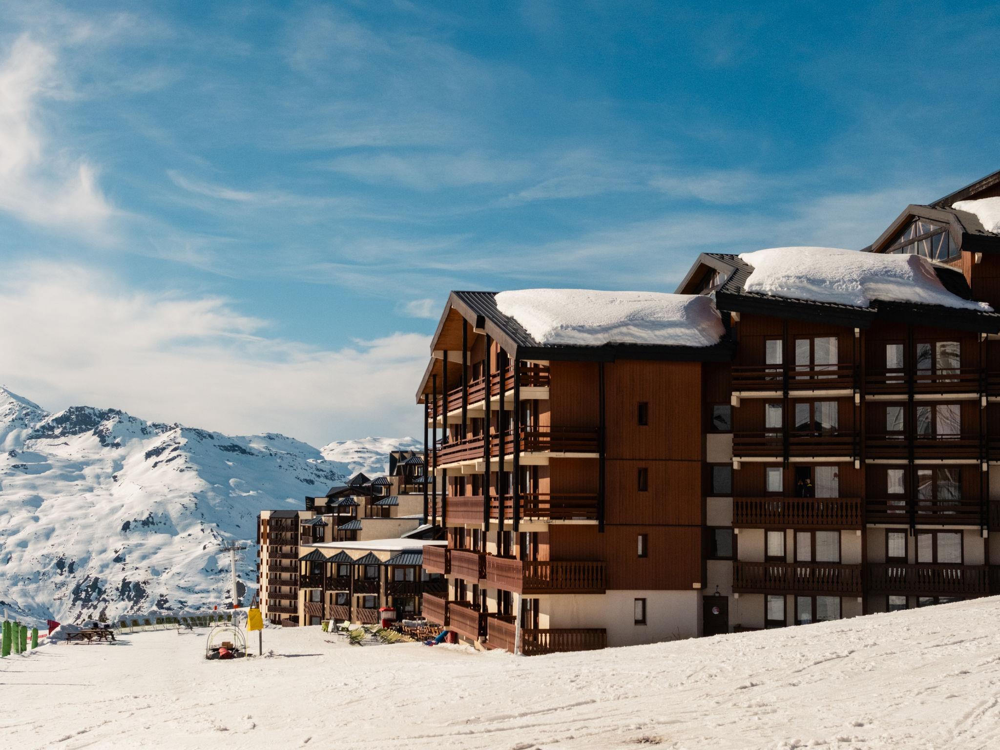 "Le Cheval Blanc Privilège", 3-room apartment 45 to 50 m2 on 2 levels. Rustic furnishings: living/sleeping room with 1 sofabed, 1 pull-out bed, dining table and satellite TV (flat screen). Exit to the balcony. 1 open room with curtain with 2 sleeping facilities. Kitchenette (2 hot plates, mini-oven, dishwasher, microwave, electric coffee machine). Bathroom, sep. WC. Upper floor: (spiral staircase) walk-through room with 2 beds and shower. Open gallery with 2 beds. Electric heating. Small balcony. Partial view of the ski run. Facilities: safe, children's high chair, baby cot. Internet (WiFi, free). Please note: smoke alarm.
