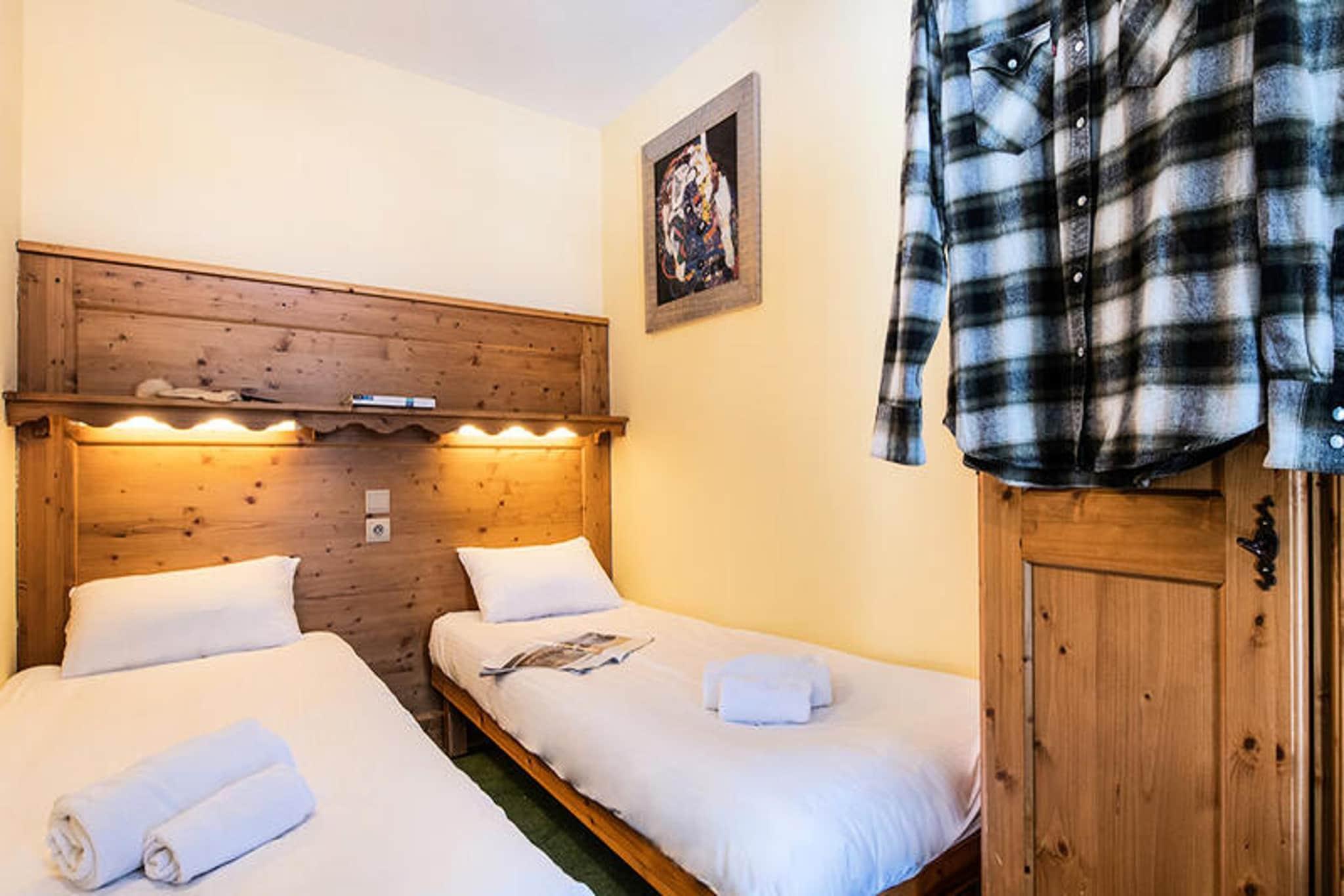 Alojándose en la Residencia Le Cheval Blanc***, podrá disfrutar de unas vacaciones típicas en un entorno excepcional. La omnipresente madera le sumerge en una atmósfera saboyana auténtica y exótica. La Residencia ofrece servicios como consigna de equipaje, recepción abierta las 24 horas, servicio de préstamo de máquinas de raclette/fondue, juegos de mesa... Dentro de la residencia se encuentran dos restaurantes: Le Jasper y Le Chaudron Magique. Salón con sofá cama desplegable para 2 personas. Cocina equipada. Dormitorio con 2 camas individuales o sofá cama desplegable para 2 personas. Altillo con 4 camas individuales. 2 cuartos de baño o aseos con ducha y WC separados. Apartamento en el lado del pueblo. Acceso Wifi - gratuito en los apartamentos. Paquete de limpieza final - incluido (excepto área de cocina). Limpieza diaria bajo petición (cargo adicional) Ropa de cama - incluida y dejada en el apartamento. Ropa de baño - incluida y dejada en el apartamento. Cuna para bebé: lista previa reserva y sujeta a disponibilidad. Aparcamiento cubierto - 90EURO/semana Tasa turística (cargo adicional): a pagar en el sitio según la tarifa vigente Televisión - incluida. TV de pantalla plana sólo para apartamentos “confort”