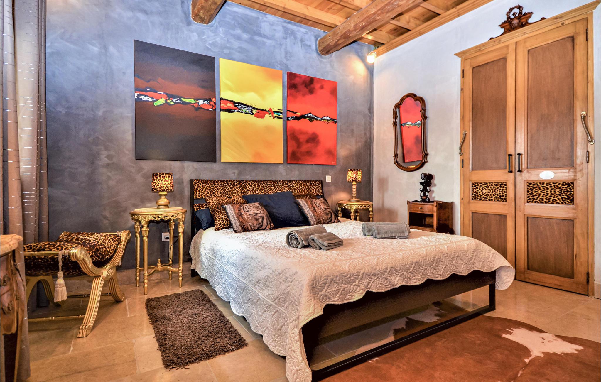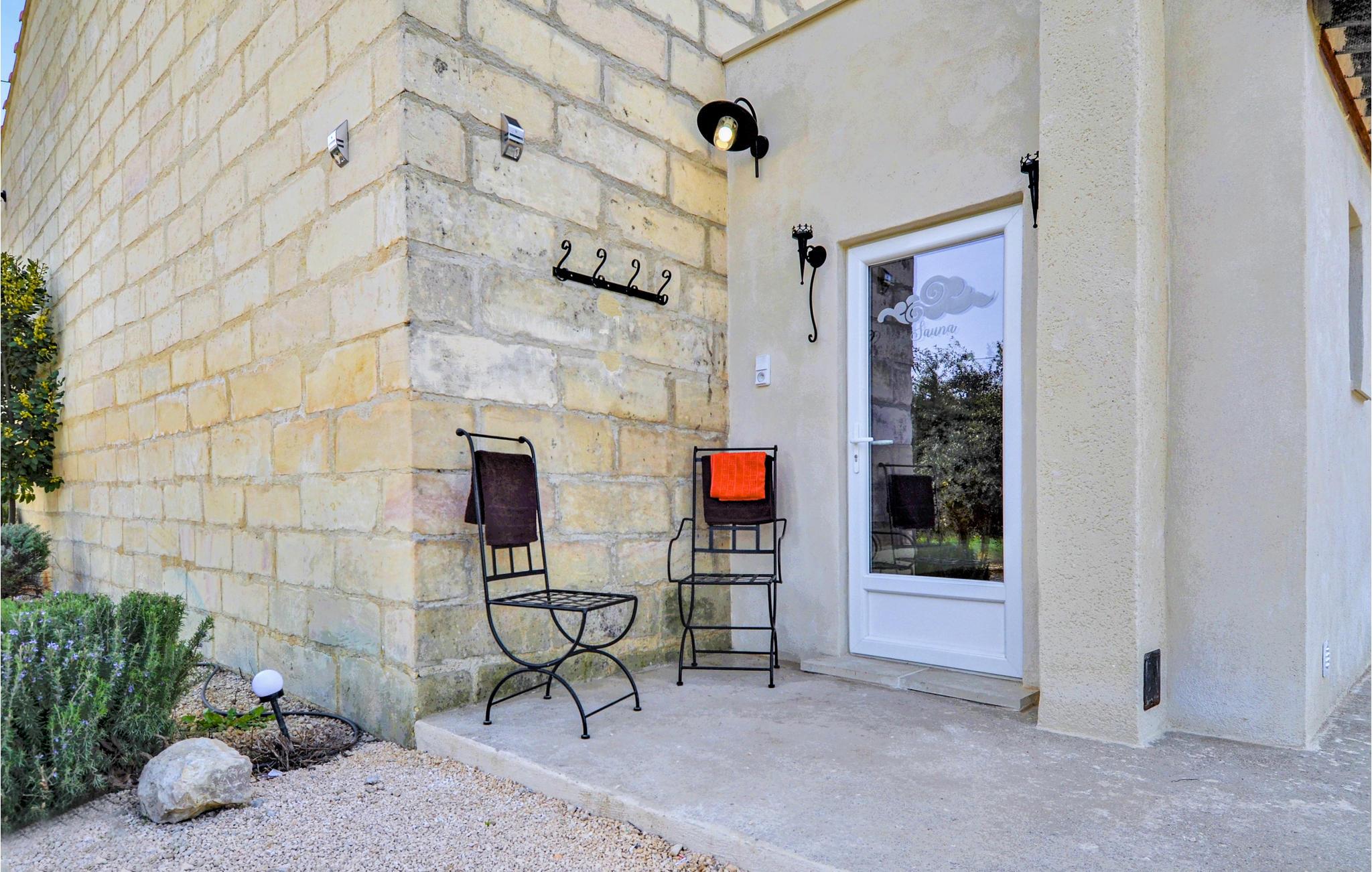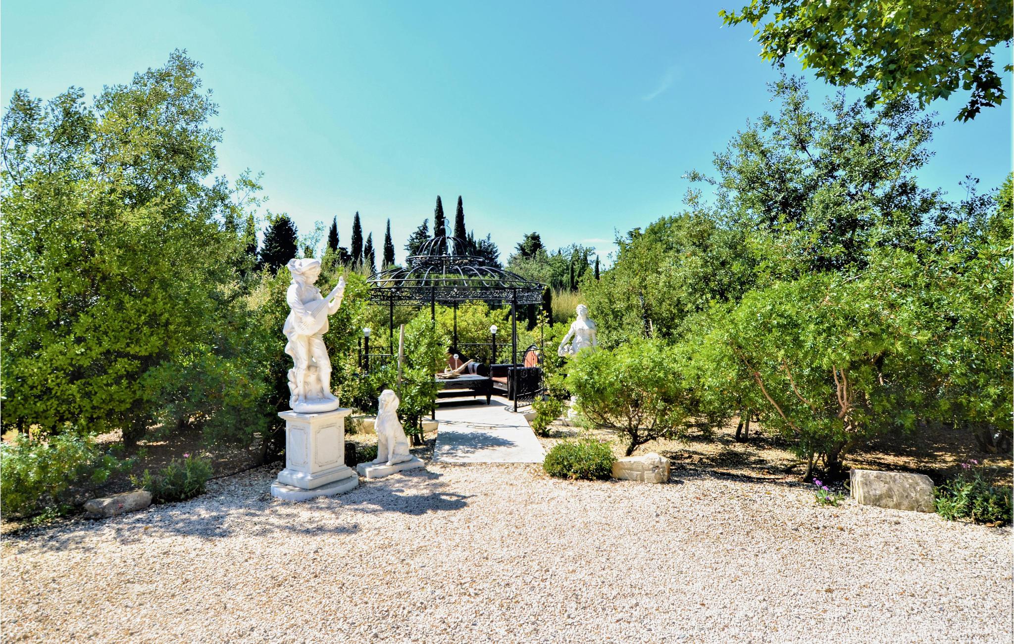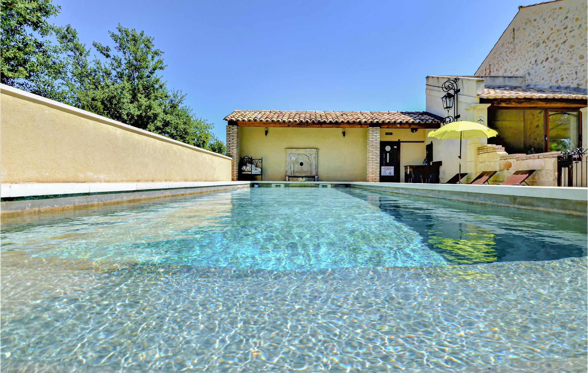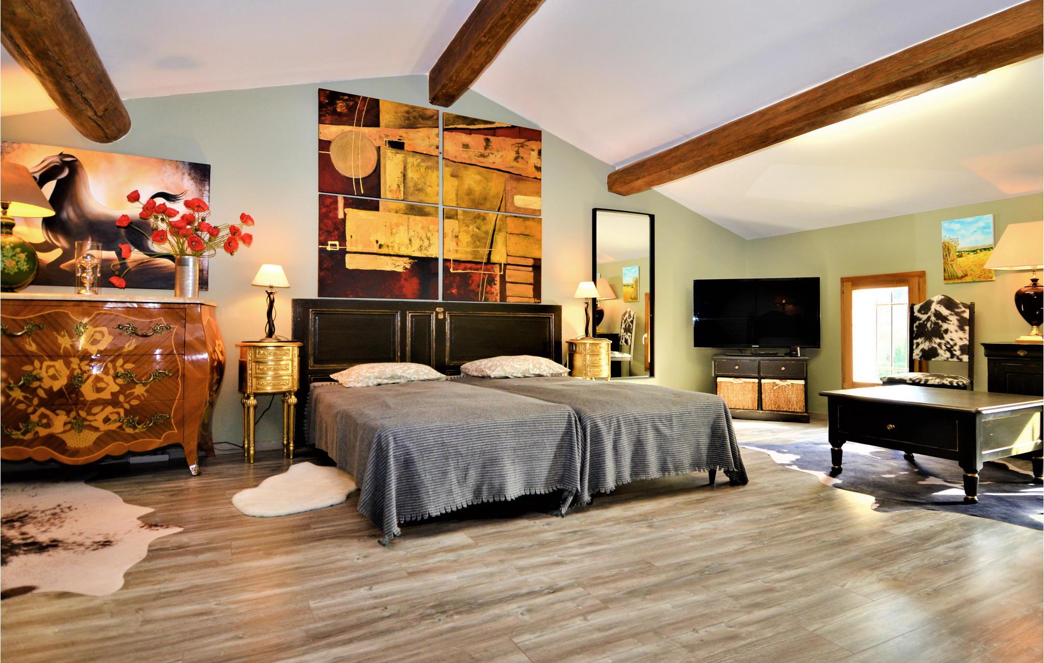 Dette store feriehus ligger tæt på interessante byer som Avignon, Nîmes, Arles og Les Baux-de-Provence. Ferieboligen, der er over 200 m² stor, byder udover egen pool på seks smukke soveværelser og fem badeværelser for op til seksten gæster.En allé beklædt med platantræer fører til huset på en 3,5 hektar stor grund. Ejendommen har tre stuer og to fuldt udstyrede køkkener. Udover den 4 x 12,5 m store swimmingpool, som drives af salt, er der et overdækket og opvarmet spabad, sauna og boulebane til din rådighed, og den ene af de to terrasser har pergola og er udstyret med en stor plancha eller grillplade monteret. Vallabrègues er en hyggelig by med blandt andet et kurvmuseum, og kun ti minutter væk har Avignogn sit tidligere pavepalads, den ikoniske Saint-Bénézet-bro og en travl bymidte. Guidede byture tilbydes i Avignon. Også anbefalet er Remoulins, Gardon-kløfterne med den populære Pont du Gard, Fontvieille og dens mølle Daudet, slottet ved Tarascon, klosteret Saint-Michel-de-Frigolet, Arles og dets romerske arenaer, Saint-Rémy-de- Provence eller Les Baux-de-Provence med et slot, volde og Carrières de Lumières eller et tidligere stenbrud, der nu er skueplads for unikke multimedieshows og udstillinger. Denne unikke region byder på en lang række cykel- og vandrestier, golfbaner, legepladser (10 minutter), gokartbane i Beaucaire (10 minutter), paintball i Avignon, biografer. Mange markeder tiltrækker vine og andre delikatesser fra regionen, for eksempel i Vallabrègues (mandag morgen), Aramon (onsdage), Fontvieille (mandage og fredage), Saint-Rémy-de-Provence (onsdage) eller i Villeneuve-les-Avignon ( torsdage). De, der kommer om sommeren, kan opleve en feria- eller tyrefægtningsfestival med abrivados (kører tyrene til arenaen) og bandidos (ledsager tyrene til græsningen efter konkurrencen). Dette komfortable midlertidige hjem og denne solrige region lover en afslappende og uforglemmelig ferie i Frankrig.