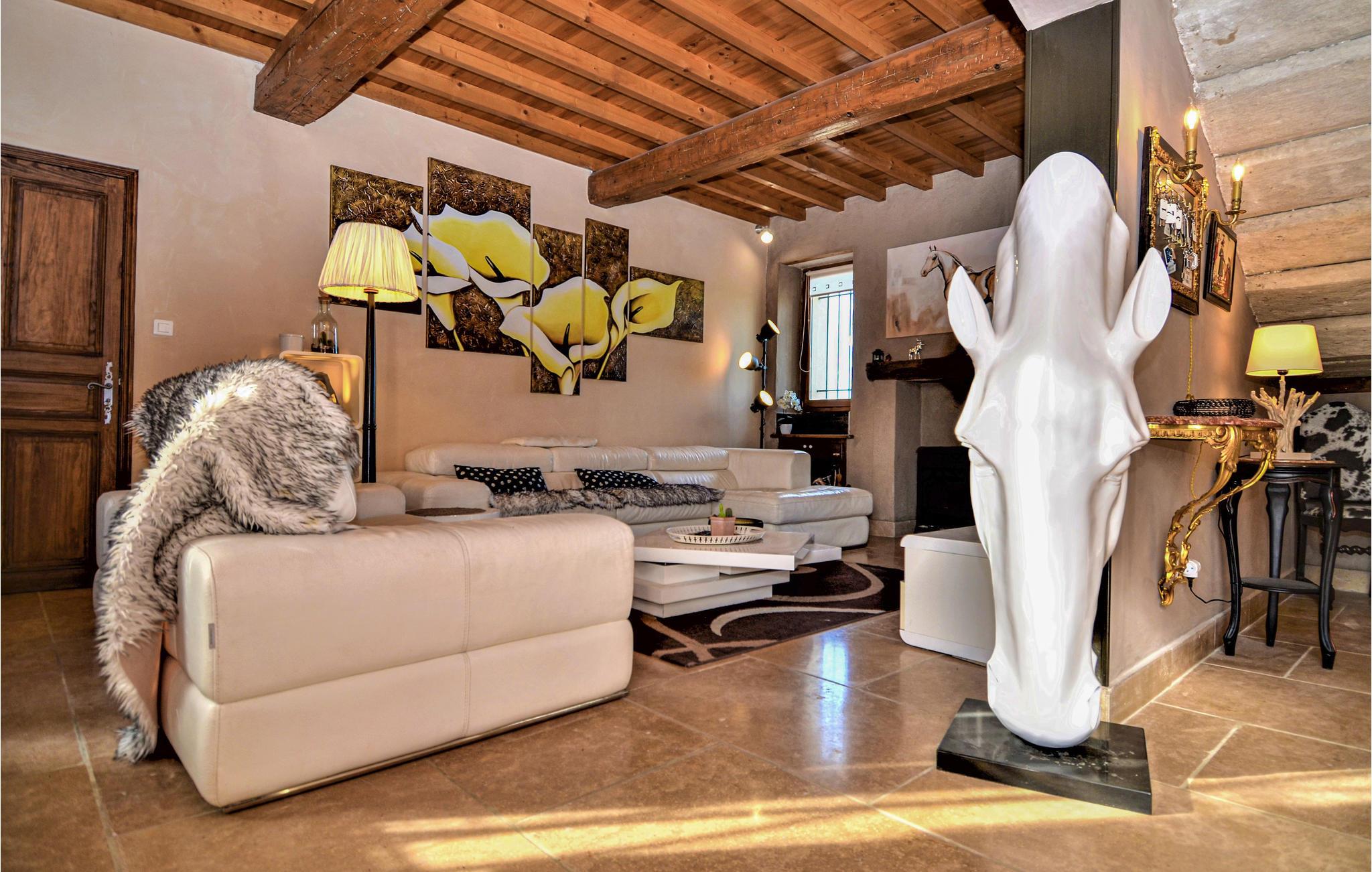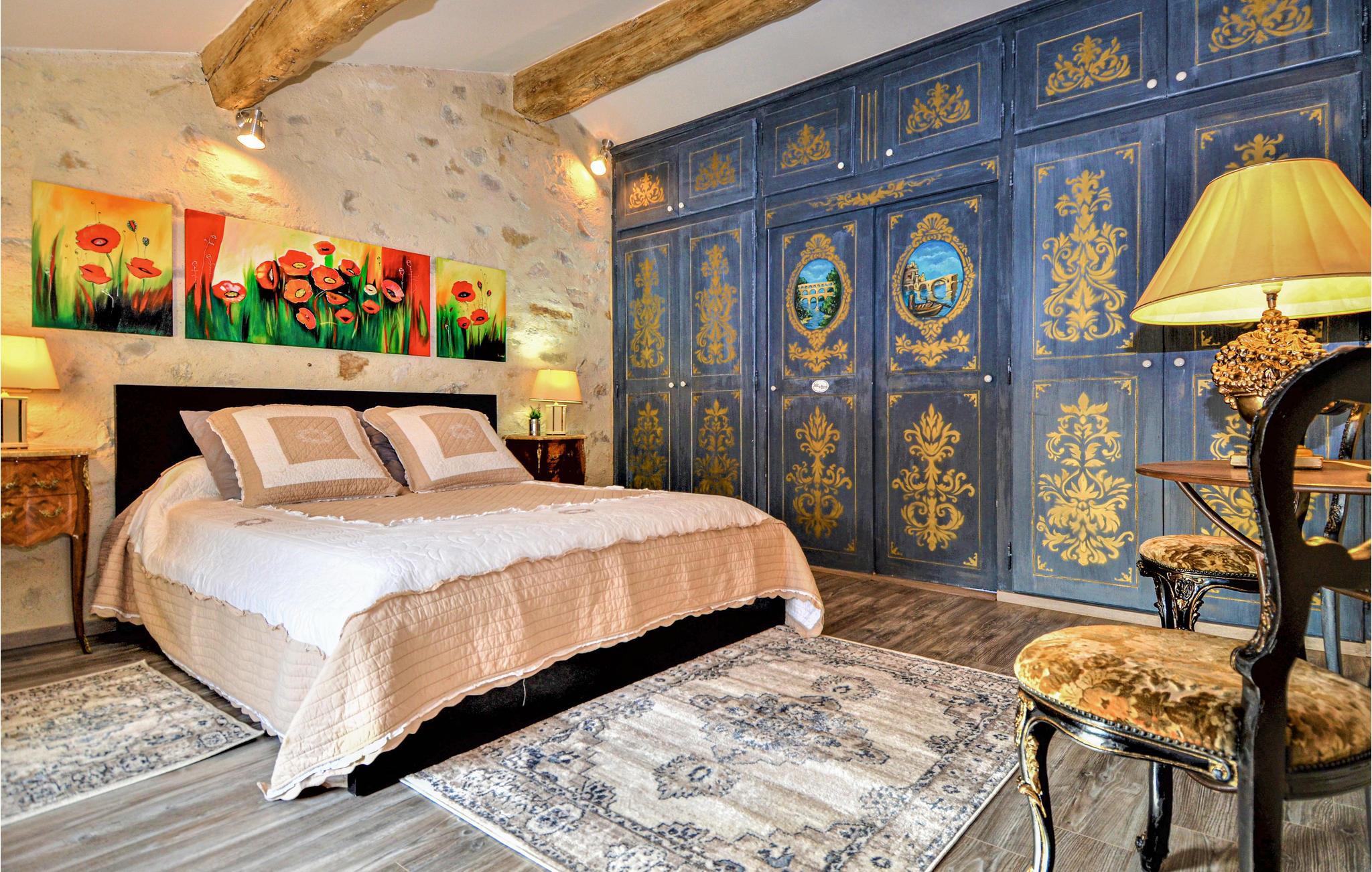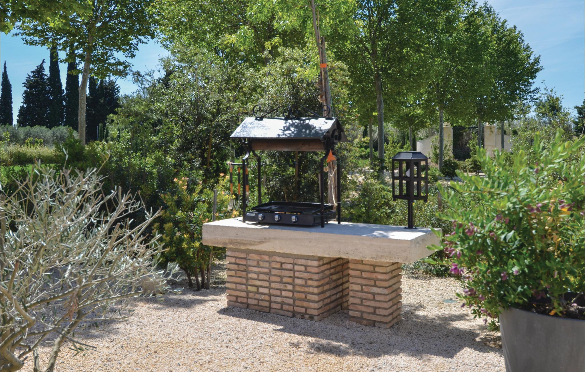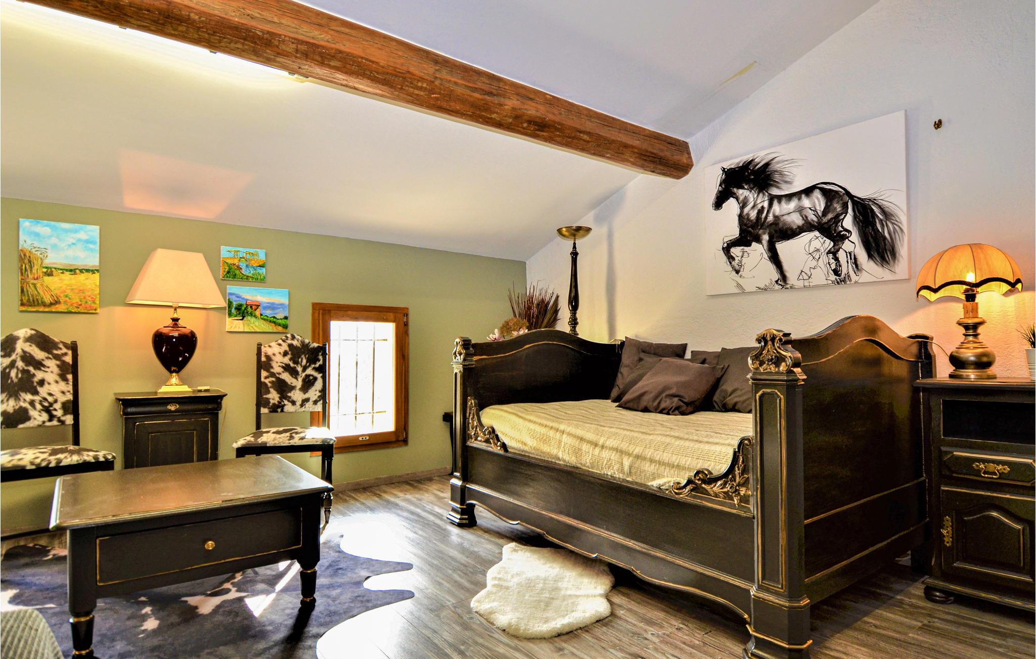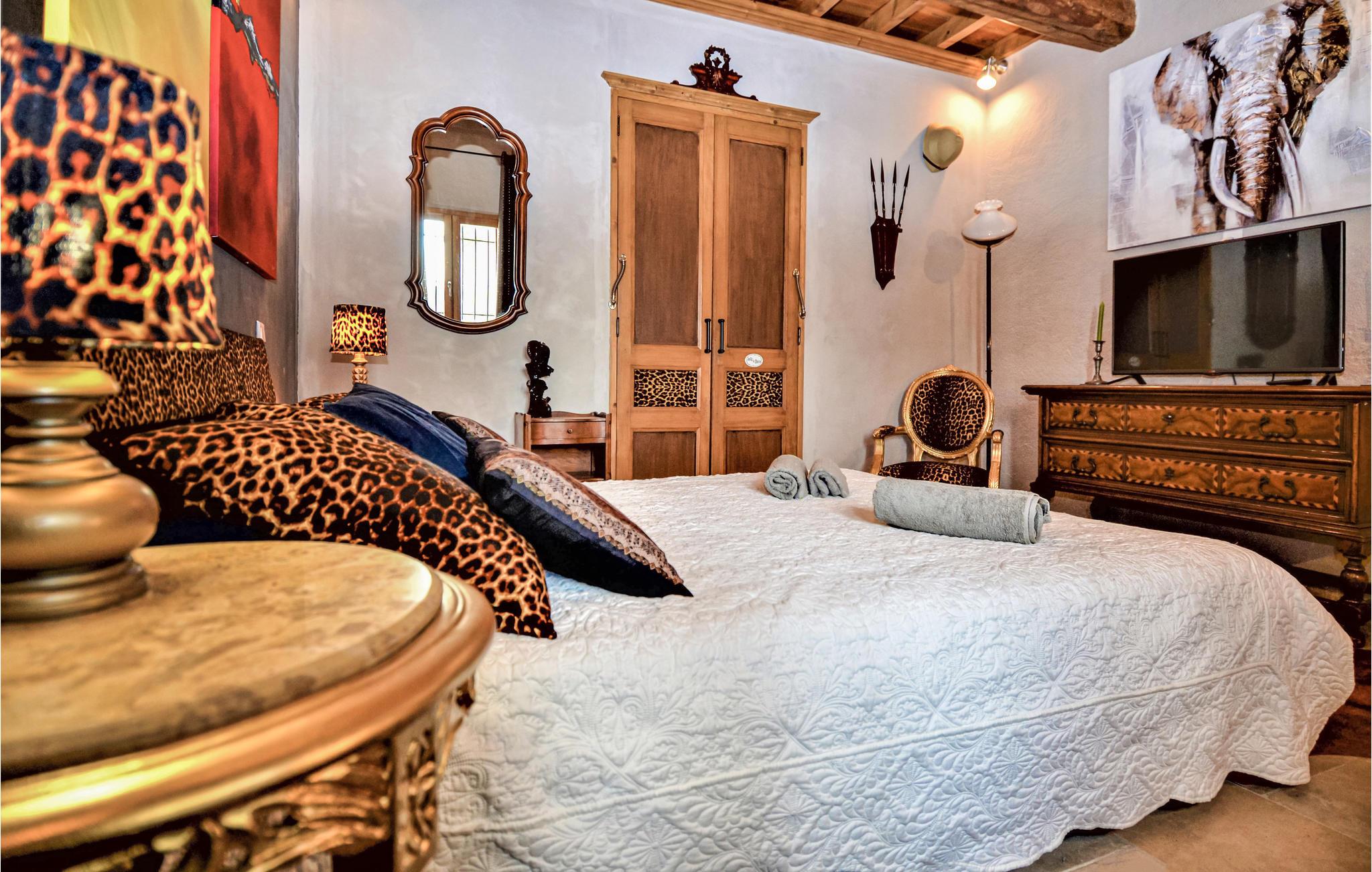 Dette store feriehus ligger tæt på interessante byer som Avignon, Nîmes, Arles og Les Baux-de-Provence. Ferieboligen, der er over 200 m² stor, byder udover egen pool på seks smukke soveværelser og fem badeværelser for op til seksten gæster.En allé beklædt med platantræer fører til huset på en 3,5 hektar stor grund. Ejendommen har tre stuer og to fuldt udstyrede køkkener. Udover den 4 x 12,5 m store swimmingpool, som drives af salt, er der et overdækket og opvarmet spabad, sauna og boulebane til din rådighed, og den ene af de to terrasser har pergola og er udstyret med en stor plancha eller grillplade monteret. Vallabrègues er en hyggelig by med blandt andet et kurvmuseum, og kun ti minutter væk har Avignogn sit tidligere pavepalads, den ikoniske Saint-Bénézet-bro og en travl bymidte. Guidede byture tilbydes i Avignon. Også anbefalet er Remoulins, Gardon-kløfterne med den populære Pont du Gard, Fontvieille og dens mølle Daudet, slottet ved Tarascon, klosteret Saint-Michel-de-Frigolet, Arles og dets romerske arenaer, Saint-Rémy-de- Provence eller Les Baux-de-Provence med et slot, volde og Carrières de Lumières eller et tidligere stenbrud, der nu er skueplads for unikke multimedieshows og udstillinger. Denne unikke region byder på en lang række cykel- og vandrestier, golfbaner, legepladser (10 minutter), gokartbane i Beaucaire (10 minutter), paintball i Avignon, biografer. Mange markeder tiltrækker vine og andre delikatesser fra regionen, for eksempel i Vallabrègues (mandag morgen), Aramon (onsdage), Fontvieille (mandage og fredage), Saint-Rémy-de-Provence (onsdage) eller i Villeneuve-les-Avignon ( torsdage). De, der kommer om sommeren, kan opleve en feria- eller tyrefægtningsfestival med abrivados (kører tyrene til arenaen) og bandidos (ledsager tyrene til græsningen efter konkurrencen). Dette komfortable midlertidige hjem og denne solrige region lover en afslappende og uforglemmelig ferie i Frankrig.