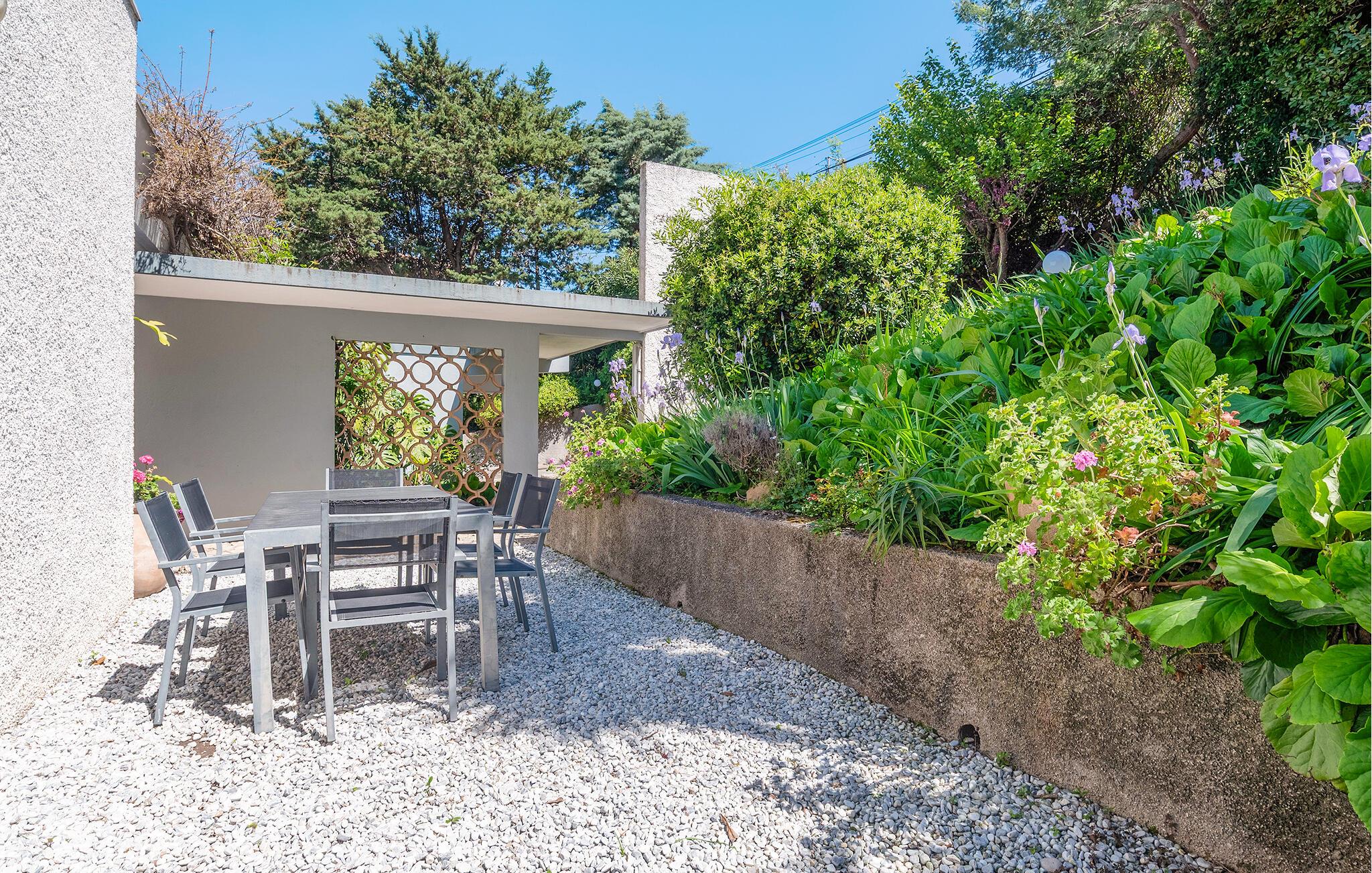 Dette rummelige feriehus i californisk stil byder jer velkommen med en lys og middelhavsagtig atmosfære og giver jer mulighed for at nyde den charmerende Côte d'Azur fuldt ud. Dens let hævede beliggenhed og store vinduer giver jer en smuk udsigt over landskabet, mens I tryller middelhavsretter frem eller slapper af på stilfulde møbler i stuen.