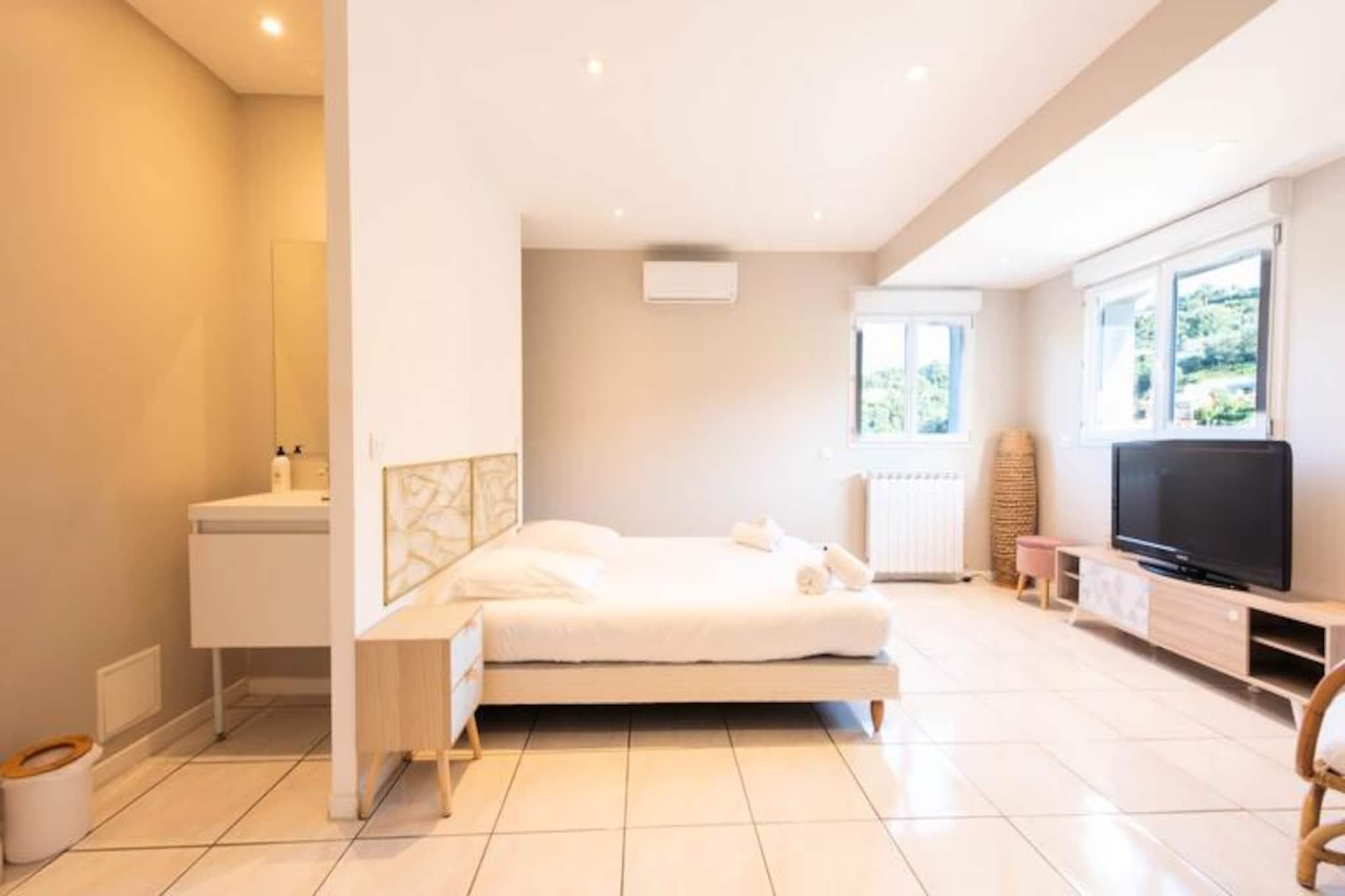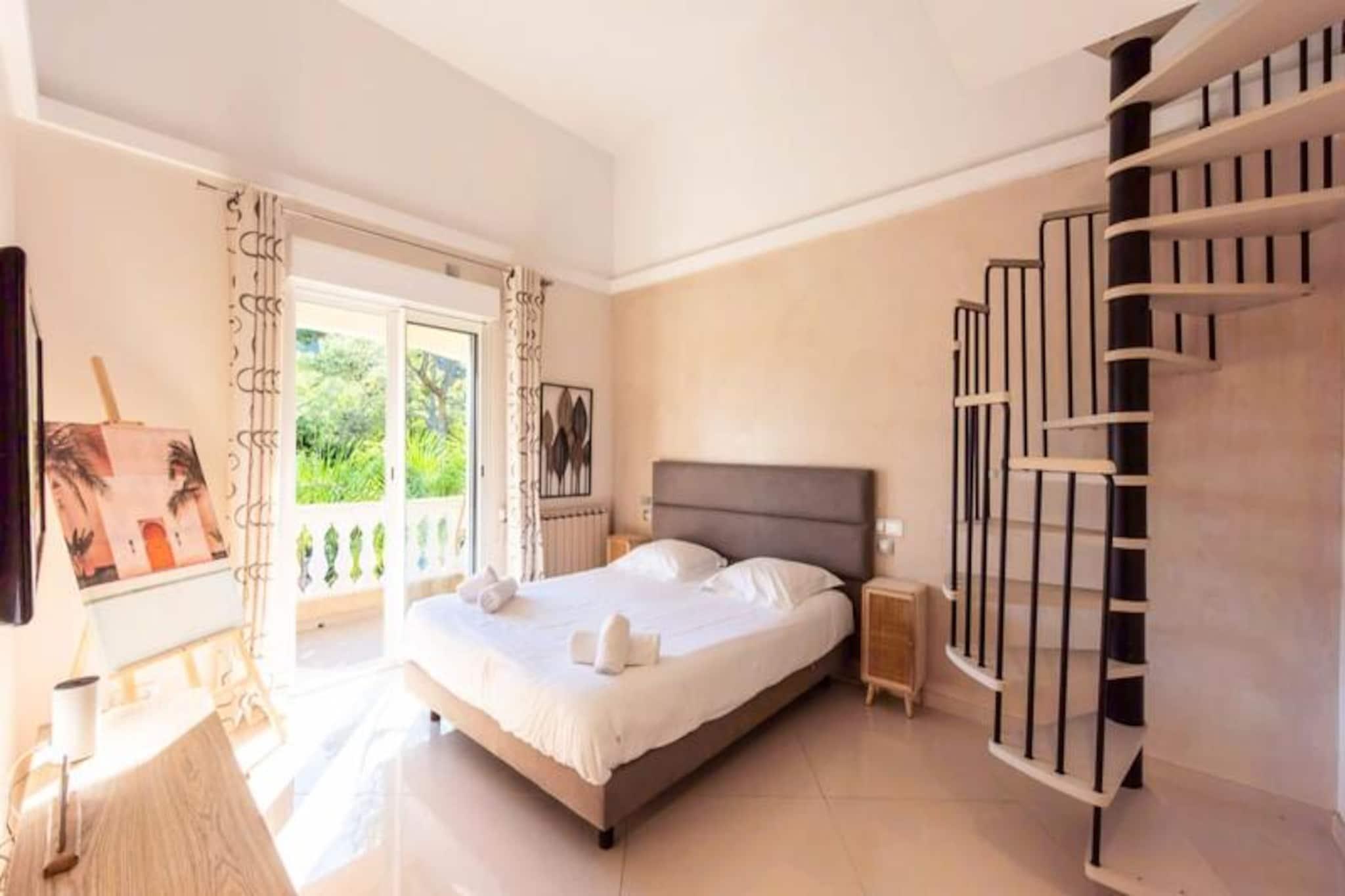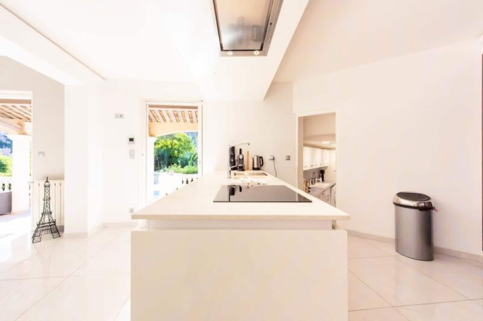 Højt over den glitrende kystlinje i Super Cannes tilbyder denne luksuriøse villa et uovertruffent tilflugtssted, hvor ro og elegance mødes. Forestil dig at vågne op til den blide summen af ??cikader og duften af ??middelhavsblomster, med panoramaudsigt over de grønne bakker og det azurblå hav. Dette er din private oase, et sted at slappe af og genoprette forbindelsen med dine kære midt i den franske rivieras skønhed. \n\nTræd indenfor i denne omhyggeligt designede villa på 330 m², hvor hver eneste detalje er udtænkt for at sikre komfort og sofistikering. Med seks rummelige soveværelser og fem badeværelser kan ejendommen nemt rumme store familier eller vennegrupper. De åbne opholdsrum har højt til loftet, moderne møbler og rigeligt naturligt lys, mens de fuldt udstyrede køkkener inviterer dig til at skabe kulinariske lækkerier. Udendørs lover den opvarmede pool og jacuzzi afslapning under solen, mens sommerkøkkenet og de store terrasser sætter scenen for mindeværdige spiseoplevelser under åben himmel. \n\nDenne villa ligger kun få minutter fra strandene i Cannes og Golfe Juan og er perfekt placeret til at udforske regionens skatte. Gå en tur langs den ikoniske Croisette, nyd en udsøgt middag ved havet, eller tag en tur til nærliggende landsbyer som Biot og Valbonne for at opleve provencalsk charme. For dem, der søger eventyr, er det pulserende natteliv i Juan-les-Pins og parfumefabrikkerne i Grasse inden for rækkevidde. \n\nUanset om du soler dig i Rivieraens solskin eller nyder villaens biograf og spillehal, tilbyder denne ejendom en problemfri blanding af luksus og afslapning. Skab uforglemmelige minder i omgivelser, der føles som et stykke paradis.