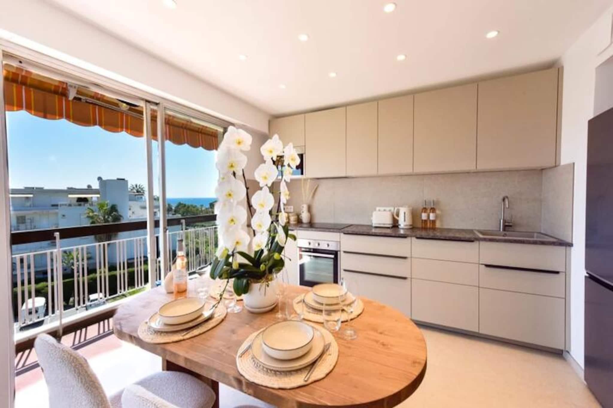 Forestil dig at vågne op til den blide lyd af bølger og træde ud på din private terrasse for at nyde den betagende havudsigt. Denne smukt renoverede lejlighed med et soveværelse i Golfe-Juan tilbyder et roligt tilflugtssted kun 5 minutters gang fra stranden. Beliggende i et lukket område med en sikker underjordisk garage, kombinerer denne ejendom moderne elegance med charmen ved den franske riviera, hvilket gør den til det perfekte tilflugtssted for par eller små familier, der søger både komfort og bekvemmelighed. Træd indenfor og oplev en rummelig opholdsstue fyldt med naturligt lys, med en blød sovesofa, lænestole og et smart-tv til hyggelige aftener. Det fuldt udstyrede, eksklusive køkken åbner ud til stuen, hvilket skaber et problemfrit rum til madlavning og spisning. Soveværelset med aircondition har en luksuriøs kingsize-seng, premium-sengetøj og direkte adgang til terrassen, hvor du kan nyde måltider under åben himmel ved spisebordet, mens du kigger ud over det azurblå vand. Et elegant badeværelse med bruseniche og LED-antidugspejl tilføjer et strejf af spa-lignende forkælelse. Beliggenheden er uovertruffen. En kort gåtur fører dig til sandstrandene i Golfe-Juan, den pulserende havn med dens yachter og bådudlejning samt charmerende lokale butikker og restauranter. For en dag med udforskning ligger Cannes og Antibes kun en kort køretur væk og byder på ikoniske vartegn som Croisetten, Rue d'Antibes og Cap d'Antibes. De nærliggende Lérins-øer, der er tilgængelige med båd, lover turkisblåt vand og uforglemmelig natur. Med sin blanding af luksus, beliggenhed og personlig concierge-service sikrer denne lejlighed et mindeværdigt ophold på Côte d'Azur. Uanset om du er her for afslapning eller eventyr, er dette din port til det bedste af den franske Riviera.