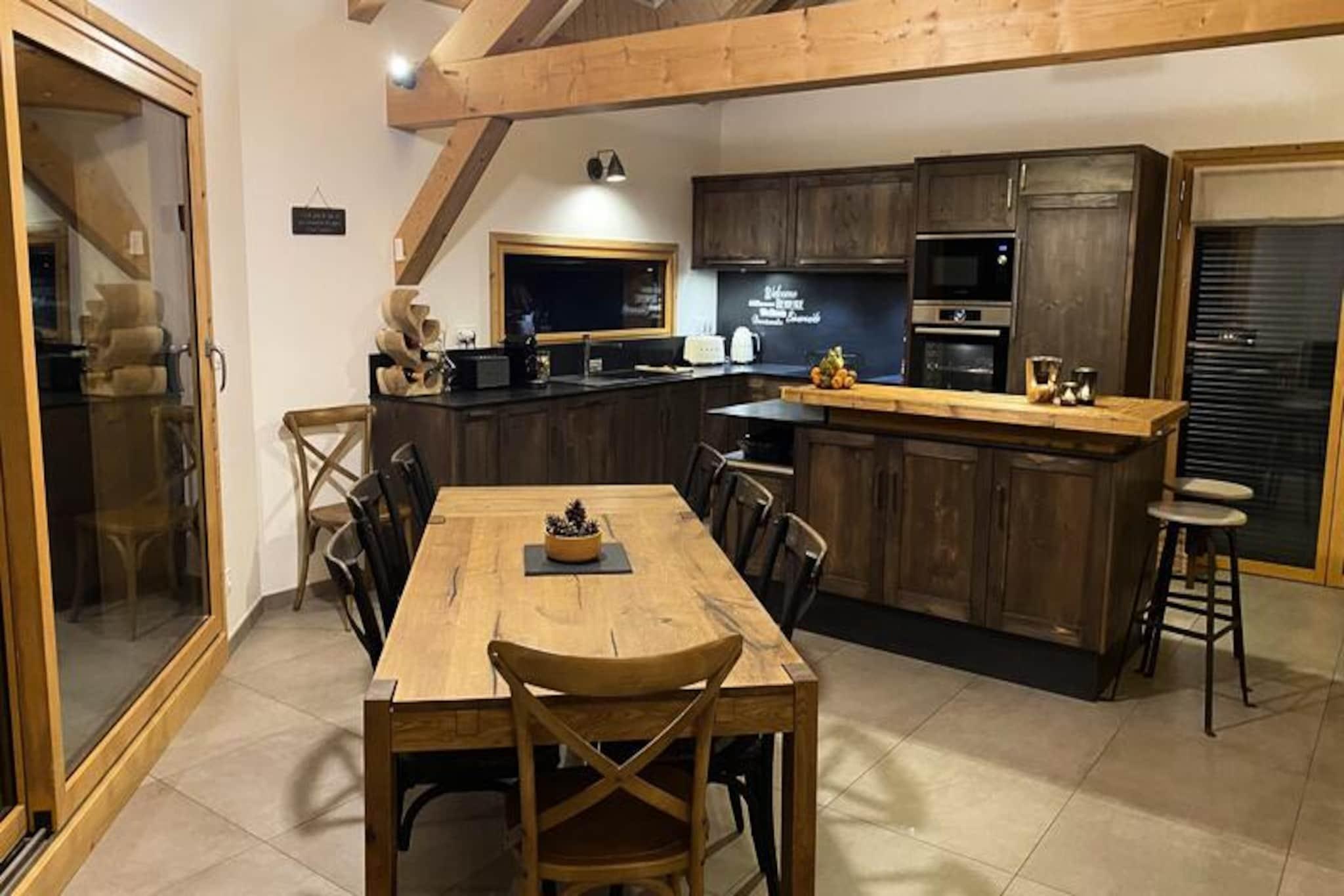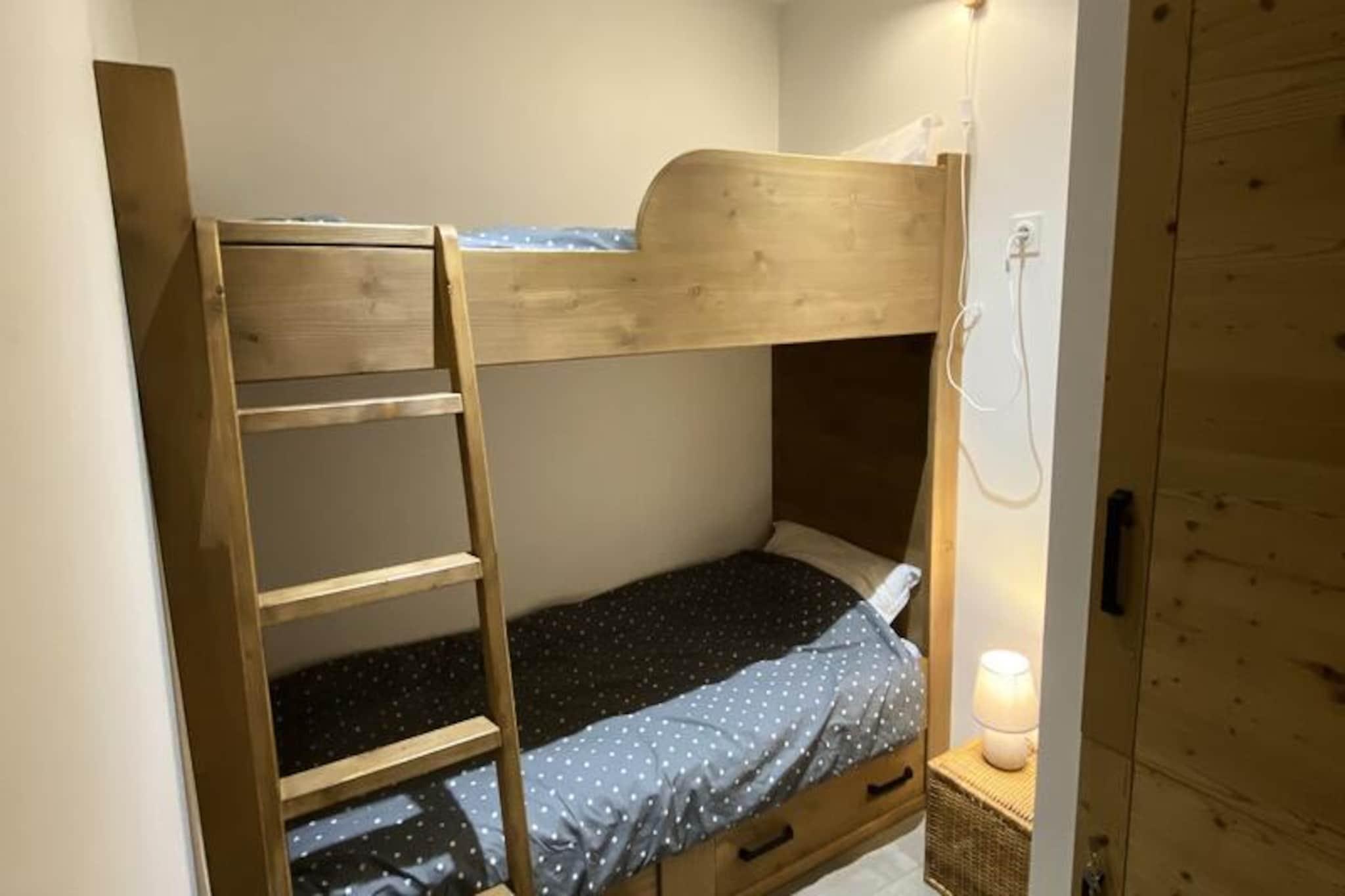I den fredfyldte landsby Crêt du Serroz tilbyder dette charmerende, fritliggende chalet et roligt alpint tilflugtssted, kun 1,1 km fra Valloires pulserende centrum. Omgivet af betagende udsigt over bjergene er chaleten perfekt placeret til både vinter- og sommereventyr. Uanset om du søger spændingen ved pisterne eller naturens fredelige charme, tilbyder denne ejendom idylliske omgivelser for din ferie. En kort gåtur på 600 meter bringer dig til Moulin Benjamin-stoleliften og ESF-skiskolens mødested, hvilket sikrer nem adgang til pisterne. Om sommeren ligger fritidscentret med swimmingpool, skøjtebane og wellness-område kun 1,7 km væk, hvilket tilbyder uendelige muligheder for afslapning og rekreation. Et betalt shuttlebusstoppested er også bekvemt placeret 250 meter fra chaleten, der forbinder dig ubesværet med hjertet af Valloire. Chaleten, der strækker sig over tre etager, har komfortabel plads til op til otte gæster med sine gennemtænkte sovepladser. Den øverste etage har tre hyggelige soveværelser, herunder et med en dobbeltseng og en enkeltseng, samt en charmerende hytte med køjesenge. Den rummelige opholdsstue på øverste etage inviterer dig til at slappe af ved brændeovnen, der har en smart højttaler og gratis Wi-Fi, der tilføjer moderne komfort. Det fuldt udstyrede tekøkken med ovn, mikrobølgeovn, opvaskemaskine og induktionskogeplade gør det til en leg at tilberede måltider. To badeværelser og ekstra separate toiletter sikrer bekvemmelighed for alle gæster, mens vaskerummet med vaskemaskine og tørretumbler gør dit ophold praktisk. Træd udenfor til den sydvendte terrasse, hvor du kan nyde den alpine sol eller grille med familie og venner. Privat parkering til to biler og en garage giver rigelig plads til køretøjer, mens skiboksen holder dit udstyr sikkert. Med sin fredelige beliggenhed, moderne faciliteter og nemme adgang til både pisterne og Valloires livlige centrum er denne hytte det perfekte valg til en mindeværdig alpin flugt. Uanset om du snor dig gennem puddersne om vinteren eller vandrer gennem frodige bjergstier om sommeren, lover denne ejendom en uforglemmelig oplevelse i hjertet af de franske alper.