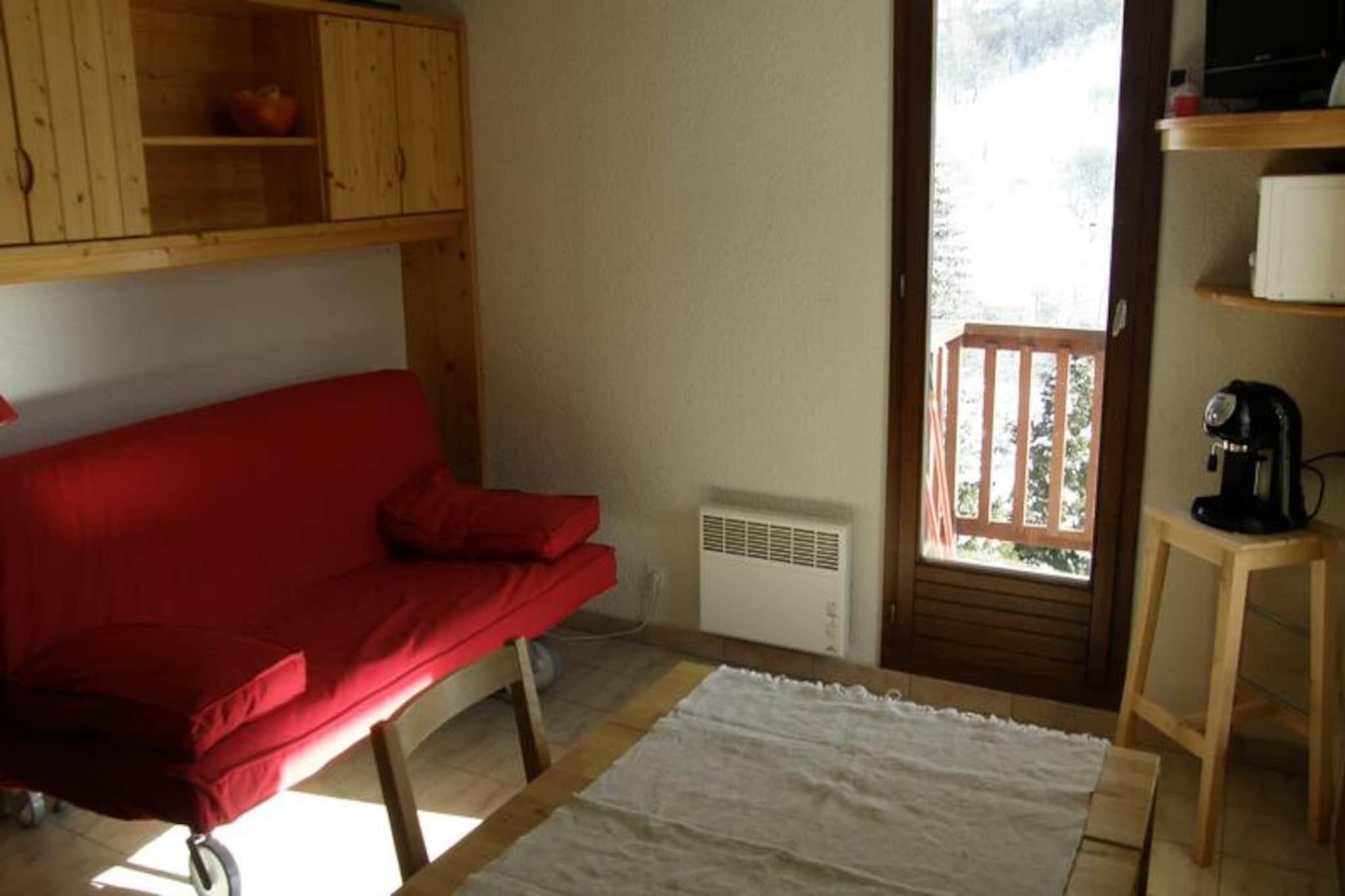 Omgivet af Les Verneys' fredfyldte skønhed tilbyder denne charmerende alpine residens et hyggeligt tilflugtssted kun 2 km fra Valloires travle hjerte. Uanset om du besøger stedet i de sneklædte vintermåneder eller den solrige sommersæson, sikrer ejendommens beliggenhed nem adgang til udendørs eventyr og lokale lækkerier. Forestil dig selv vågne op til frisk bjergluft, træde ud på din sydøstvendte balkon og planlægge en dag fyldt med udforskning og afslapning i de franske alper. \n\nIndenfor er residensen omhyggeligt designet til at rumme op til fire gæster, hvilket gør den ideel til par eller små familier. Soveværelset har en komfortabel dobbeltseng, mens stuen tilbyder en dobbelt sovesofa til ekstra sovepladser. Tekøkkenet er udstyret med essentielle apparater, herunder ovn, mikrobølgeovn og køleskab, så du nemt kan tilberede måltider. Efter en dag med skiløb eller vandreture kan du slappe af i den hyggelige opholdsstue med et tv eller forfriske dig på badeværelset, der er komplet med bruser og hårtørrer. Praktiske faciliteter såsom vaskemaskine og skiopbevaring gør dit ophold mere behageligt. \n\nOm vinteren ligger Verneys-stoleliften og ESF-skiskolens mødested kun 450 m væk, hvilket giver problemfri adgang til pisterne. I nærheden finder du langrendsløjper, en gratis skilift for begyndere og et udvalg af skibutikker, et bageri, en ostebutik og restauranter inden for 400 m. En betalt shuttlebus er bekvemt placeret 230 m væk og forbinder dig med det bredere område. Sommeren byder på muligheder for golf og tennis, med faciliteter i nærheden, og de samme lokale butikker og spisesteder, der sikrer, at du aldrig er langt fra frisk bagværk eller regionale specialiteter. \n\nUanset om du søger spændende vintersport eller rolige sommervandreture, er denne bolig den perfekte base for din alpine ferie. Dens blanding af komfort, praktisk anvendelighed og nærhed til vigtige attraktioner gør den til et dejligt valg til din næste ferie i de franske alper.