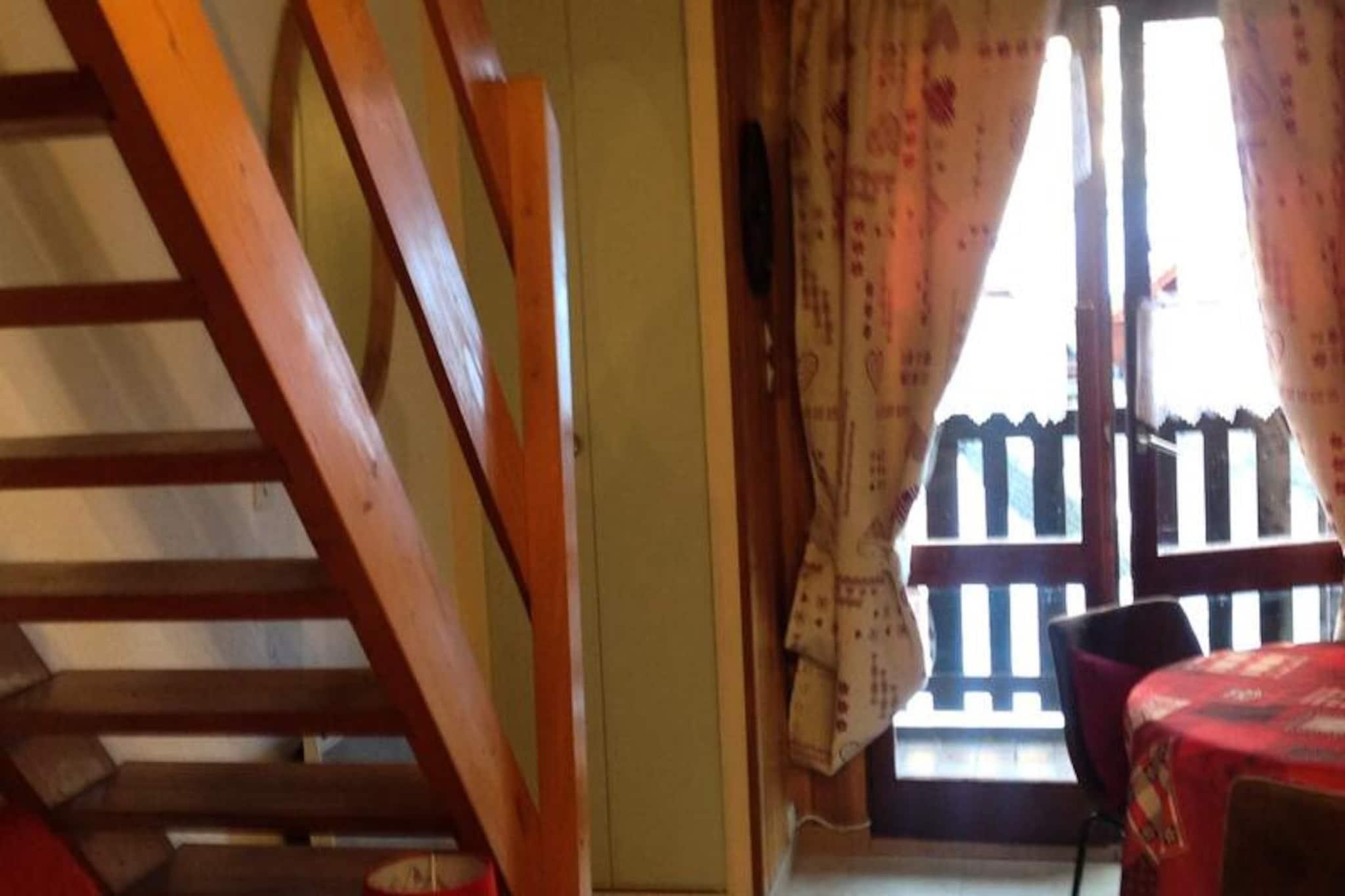 I hjertet af den charmerende alpelandsby Valloire tilbyder denne hyggelige bolig et ideelt tilflugtssted for både vinter- og sommerferier. Omgivet af de majestætiske tinder i de franske alper kombinerer ejendommen en central beliggenhed med nem adgang til regionens bedste aktiviteter, hvilket gør den perfekt for både eventyrere og afslapningssøgende. Uanset om du er her for at sno dig gennem uberørte skråninger eller sole dig i sommersolen, vil Valloires pulserende atmosfære betage dig. \n\nLejligheden har en gennemtænkt planløsning, der komfortabelt rummer op til fire gæster. Den åbne mezzanin rummer en dobbeltseng, mens stuen har en sovesofa, begge udstyret med behagelige dyner til afslappende nætter. Tekøkkenet er fuldt udstyret med moderne apparater, herunder keramisk kogeplade, ovn, mikrobølgeovn og opvaskemaskine, hvilket sikrer, at du har alt, hvad du behøver for at tilberede lækre måltider. Slap af i opholdsstuen med et tv og en dvd-afspiller, eller gå ud på den østvendte balkon for at nyde den friske bjergluft og den fantastiske udsigt. Yderligere faciliteter såsom vaskemaskine, tørretumbler og ski-/cykelopbevaring gør dit ophold endnu mere behageligt.\n\nOm vinteren ligger Crêt de la Brive-svævebanen og skiskolens mødested kun 280 meter væk, hvilket giver problemfri adgang til pisterne. Lokale butikker ligger blot 100 meter fra din dør, hvilket sikrer, at alle fornødenheder er inden for rækkevidde. I sommermånederne inviterer det nærliggende fritidscenter, kun 240 meter væk, dig til at nyde swimmingpoolen, skøjtebanen og wellnessfaciliteterne. Det omkringliggende område kan også prale af naturskønne vandre- og cykelstier, der er perfekte til at udforske de betagende alpine landskaber.\n\nUanset om du er tiltrukket af spændingen ved vintersport eller sommerens ro i bjergene, er denne bolig i Valloire den perfekte base for en uforglemmelig alpin flugt. Lad charmen i denne maleriske landsby og de franske alpers skønhed skabe minder, der vil vare hele livet.