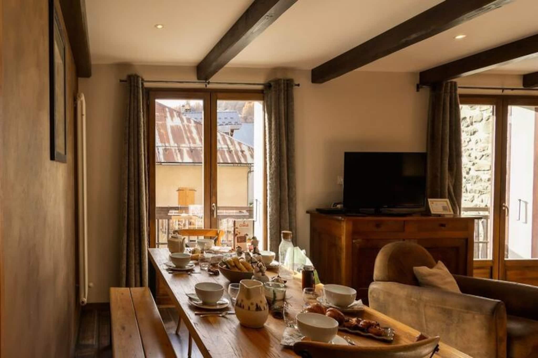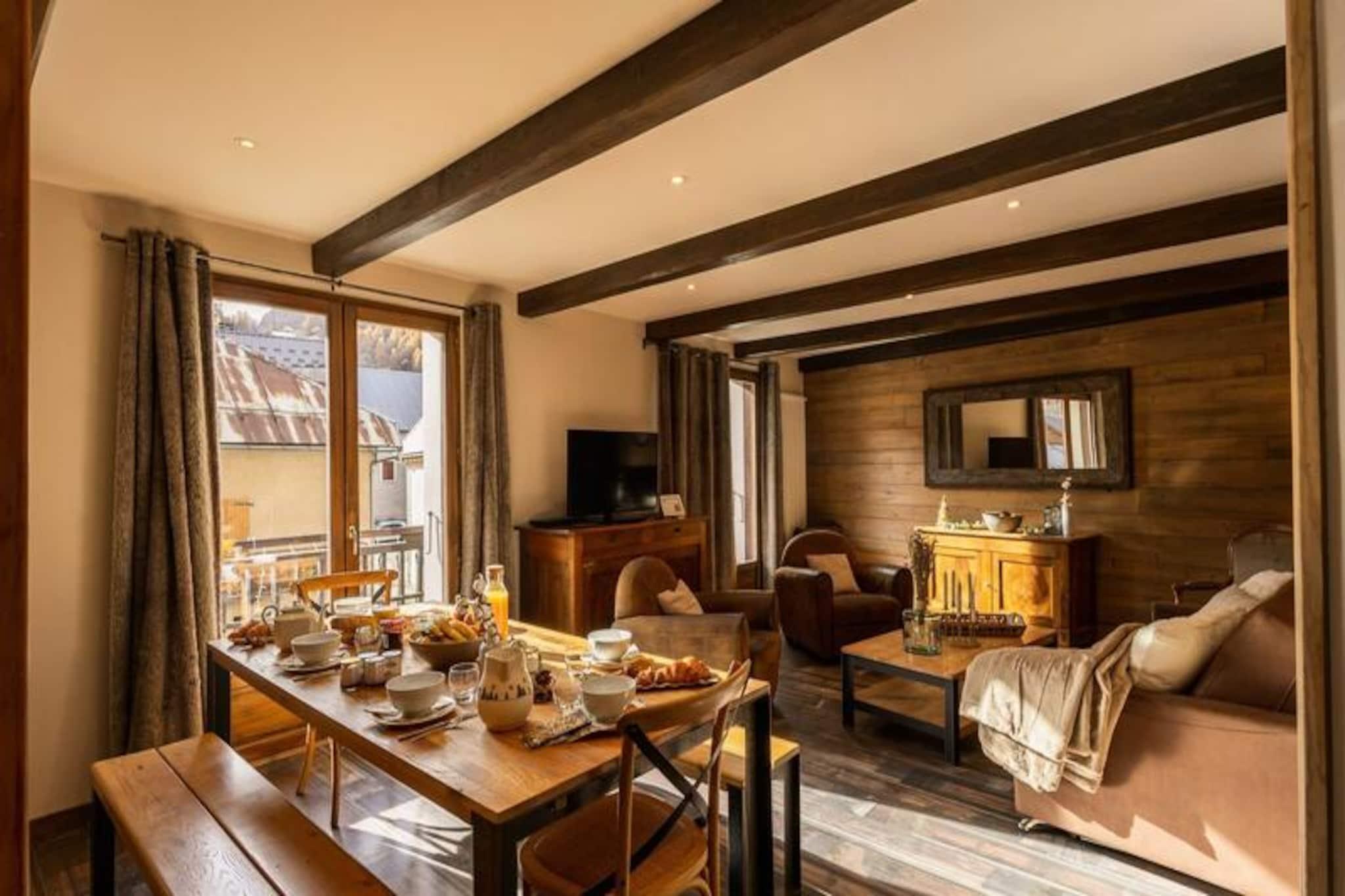 I hjertet af den maleriske landsby Valloire tilbyder denne charmerende bolig en perfekt blanding af alpin tradition og moderne komfort. Omgivet af de majestætiske tinder i de franske alper inviterer denne ejendom dig til at fordybe dig i bjergenes fredfyldte skønhed, uanset om den er dækket af sne om vinteren eller badet i gyldent sollys om sommeren. Den pulserende landsbyatmosfære med dens hyggelige butikker og indbydende caféer ligger kun en kort gåtur væk, hvilket gør den til et ideelt tilflugtssted for familier og grupper, der søger både eventyr og afslapning. Boligen har komfortabel plads til op til otte gæster fordelt på tre hyggelige soveværelser og en rummelig opholdsstue. Hvert soveværelse er omhyggeligt designet, hvor to har dobbeltsenge og fjernsyn, mens det tredje tilbyder en enkeltseng og køjesenge, perfekt til børn eller venner. Stuen med sin sydvendte balkon tilbyder et varmt og indbydende rum at slappe af efter en dag med udforskning. Det fuldt udstyrede tekøkken har moderne apparater såsom opvaskemaskine, ovn og vaskemaskine, hvilket sikrer et problemfrit ophold. Med to private brusebadeværelser, et badekar og endda et skirum med støvletørrer er hver eneste detalje tænkt over for din bekvemmelighed. Vintergæster vil sætte pris på nærheden til Crêt de la Brive-svævebanen og skiskolens mødesteder, kun 260 meter væk, hvilket gør det nemt at komme ud på pisterne. Om sommeren ligger fritidscentret med swimmingpool, skøjtebane og wellness-område kun 350 meter fra din dør. Uanset om du står på ski, vandrer eller blot nyder den alpine charme, sikrer denne beliggenhed uforglemmelige øjeblikke. Vælg denne bolig for dens uovertrufne beliggenhed, gennemtænkte faciliteter og løftet om en mindeværdig alpin ferie, hvor hver årstid bringer sin egen unikke magi.