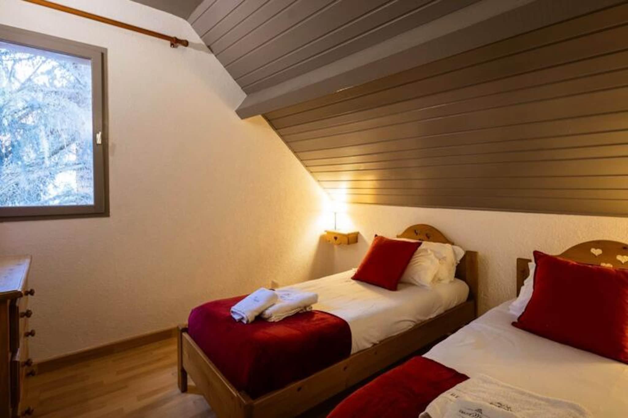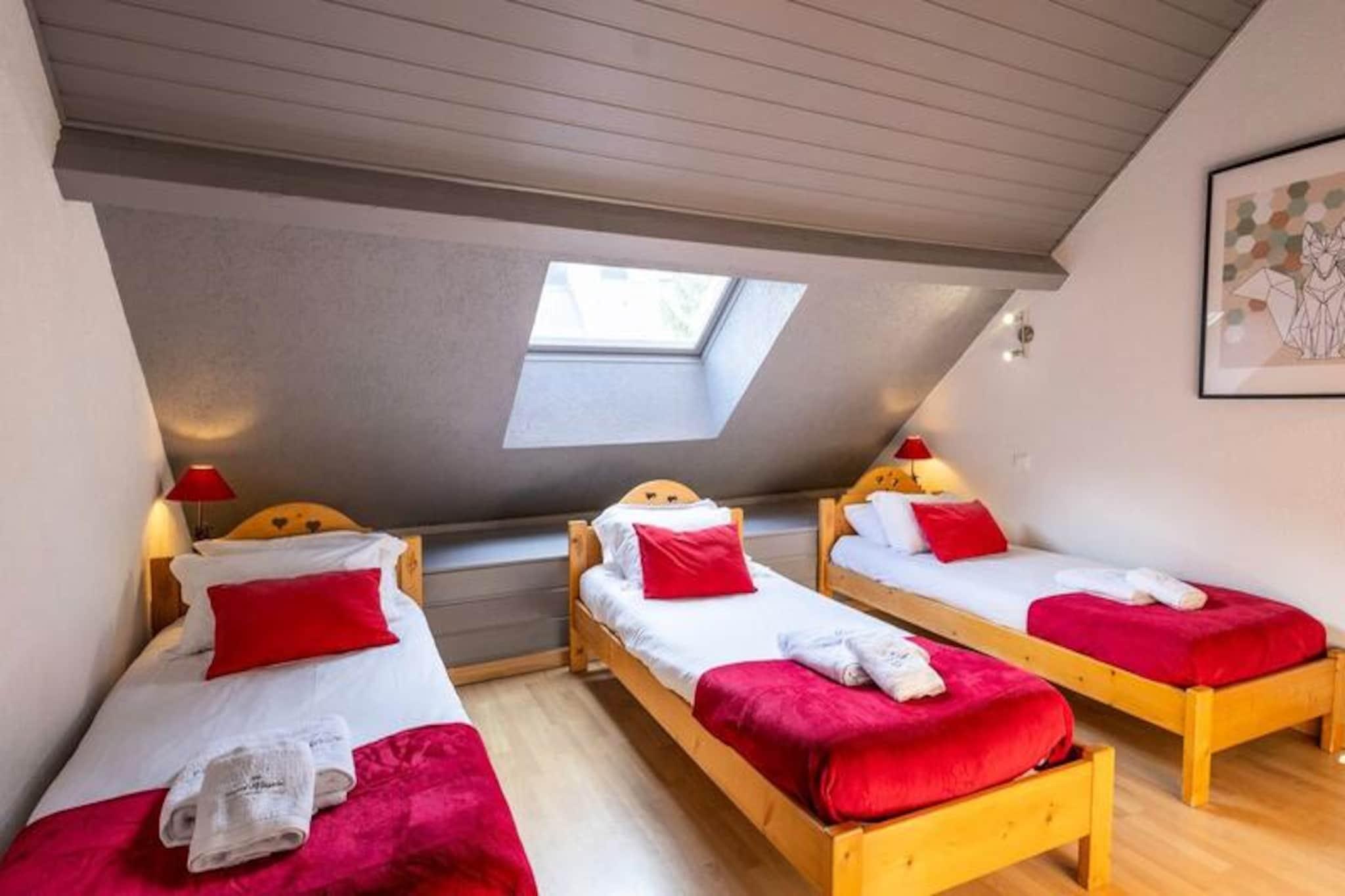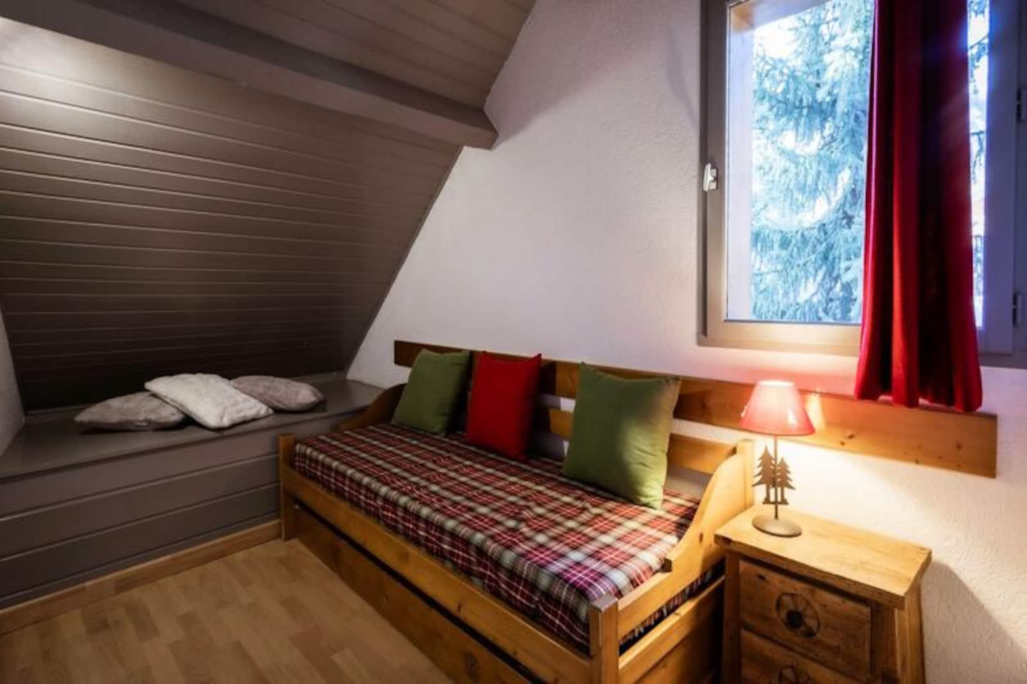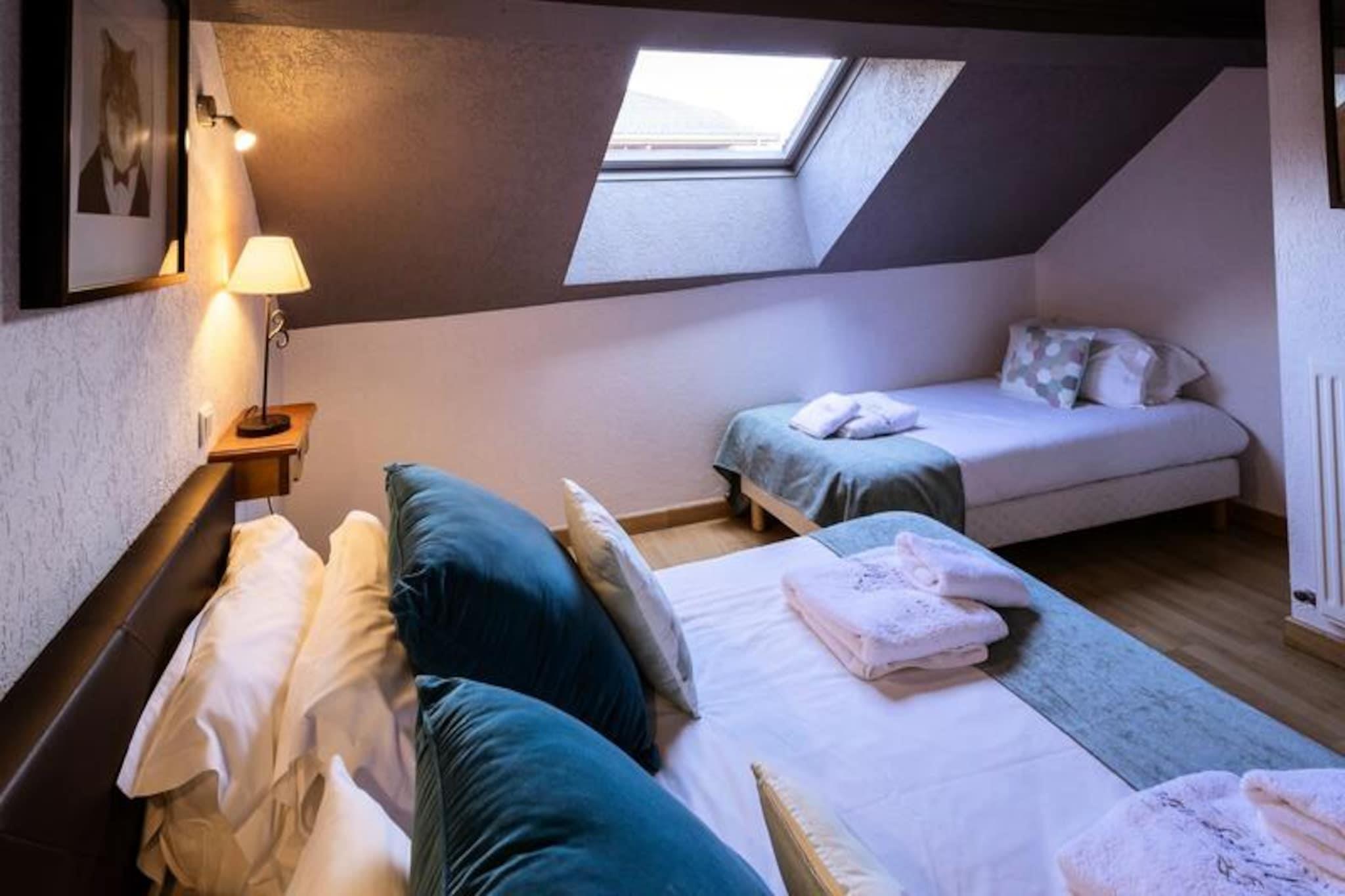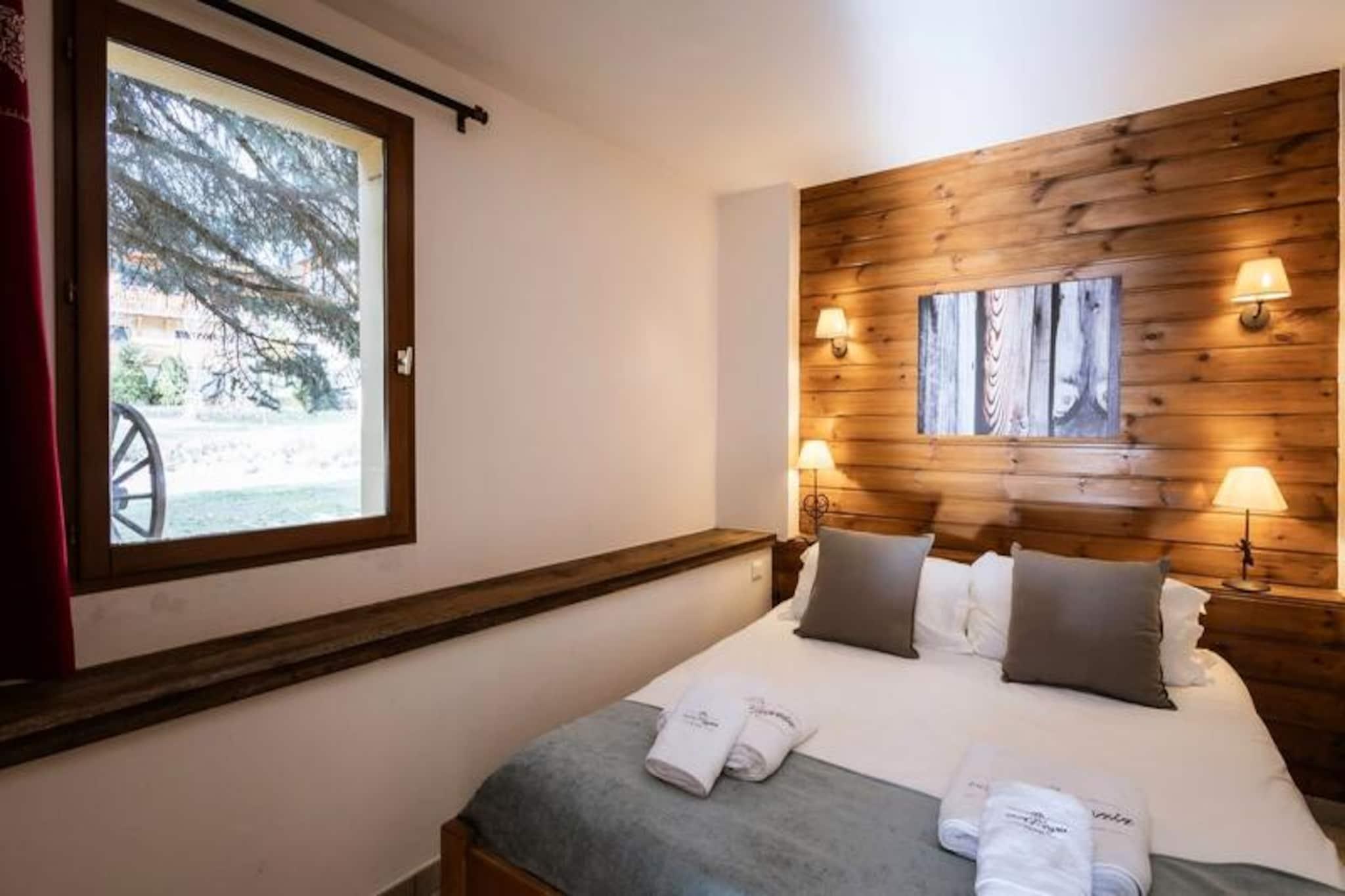 I den charmerende landsby Les Verneys, kun 2 km fra hjertet af Valloire, tilbyder denne rummelige duplexlejlighed en perfekt blanding af traditionel alpin charme og moderne komfort. Omgivet af en betagende udsigt over bjergene er denne ejendom et ideelt tilflugtssted for familier og grupper, der søger en rolig, men bekvem base for deres ferieoplevelser. Med sin sydvendte terrasse kan du nyde solen og den friske bjergluft og skabe uforglemmelige minder i enhver sæson. \n\nLejligheden har komfortabel plads til op til 12 gæster fordelt på fem veludstyrede soveværelser. Stueetagen har en hyggelig stue med tv og Wi-Fi, et åbent køkken udstyret med moderne apparater og et praktisk brusebad. Ovenpå finder du yderligere soveværelser og badeværelser, hvilket sikrer rigelig plads og privatliv for alle. Ejendommen inkluderer også et skirum med støvletørrer, fælles cykelopbevaring og adgang til et fitnesscenter, sauna, dampbad og jacuzzi, der tilbyder afslapning efter en dag med udforskning.\n\nVinterentusiaster vil sætte pris på nærheden til Verneys-stoleliften og ESF-skiskolen, kun 400 m væk, samt langrendsløjper og en skilift for begyndere i nærheden. Om sommeren forvandles landsbyen til et paradis for udendørsaktiviteter med en golfbane, tennisbaner og en legeplads inden for gåafstand. Lokale faciliteter såsom et bageri og en aviskiosk ligger kun 350 m væk, mens en regelmæssig shuttle forbinder dig med Valloires pulserende centrum.\n\nUanset om du er her for at stå på ski, vandre eller bare slappe af, tilbyder denne duplexlejlighed i Les Verneys den perfekte kombination af komfort, bekvemmelighed og alpin charme for en uforglemmelig ferieoplevelse.