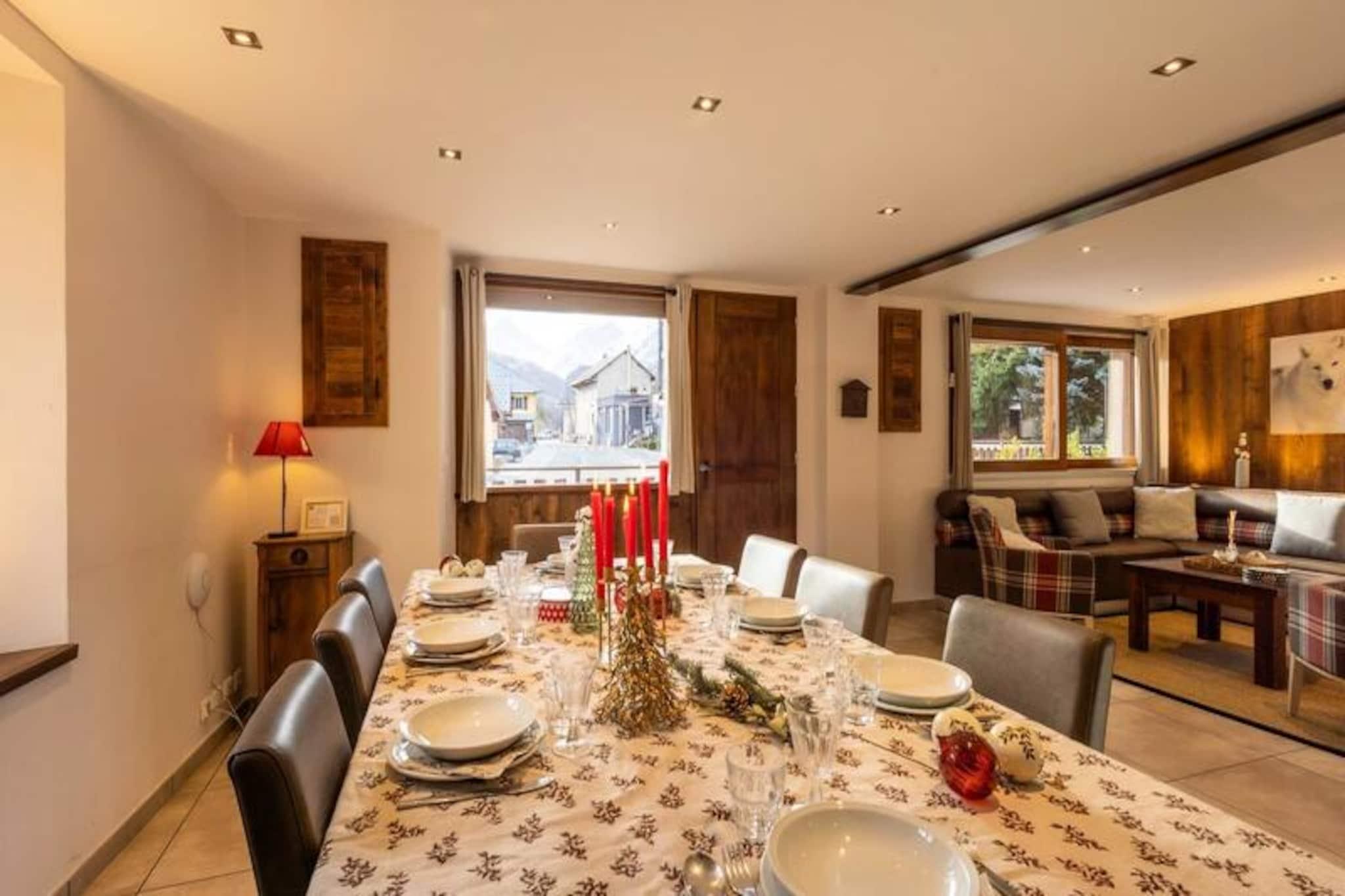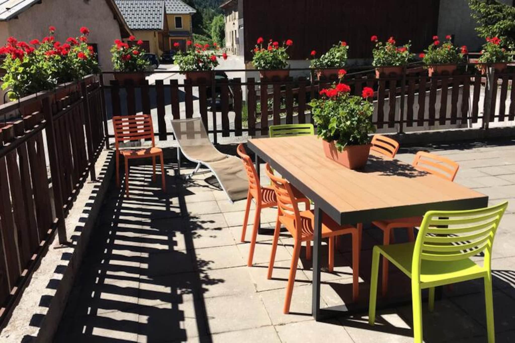 Midt i den fredfyldte charme i Les Verneys, kun 2 km fra hjertet af Valloire, tilbyder denne rummelige duplexlejlighed en perfekt blanding af traditionel alpin atmosfære og moderne komfort. Forestil dig at vågne op til den friske bjergluft og træde ud på din private sydvendte terrasse, hvor solen oplyser den betagende udsigt over de omkringliggende tinder. Uanset om du besøger om vinteren eller sommeren, inviterer denne ejendom dig til at fordybe dig i de franske alpers skønhed. \n\nLejligheden er designet til at rumme op til 13 gæster og kan prale af fem gennemtænkt indrettede soveværelser fordelt på to etager, der tilbyder både privatliv og fleksibilitet for familier eller vennegrupper. Stueetagen har en hyggelig stue med tv og Wi-Fi samt et fuldt udstyret tekøkken med moderne apparater, herunder opvaskemaskine, ovn og køleskab/fryser. Tre badeværelser, herunder et med badekar og et andet med bruser, sikrer bekvemmelighed for alle. Yderligere faciliteter såsom vaskemaskine, tørretumbler og skiopbevaring med støvletørrer forbedrer dit ophold. \n\nOm vinteren ligger Verneys-stoleliften og ESF-skiskolens mødested kun 400 m væk, hvilket gør det nemt at komme til pisterne. En gratis begynderlift i nærheden er perfekt for dem, der er nye inden for skiløb, mens langrendsløjper og skibutikker ligger inden for gåafstand. Sommeren forvandler området til et paradis for friluftsentusiaster med en golfbane, tennisbaner og en legeplads kun en kort gåtur væk. Lokale bagerier og aviskiosker tilføjer et strejf af bekvemmelighed til din alpine ferie. \n\nMed adgang til fitnesscenter, sauna, dampbad og jacuzzi tilbyder denne ejendom afslapning efter en dag med eventyr. Uanset om du søger spændende skiløjper eller rolige bjergvandringer, lover denne duplexlejlighed i Les Verneys et uforglemmeligt tilflugtssted i hjertet af Alperne.