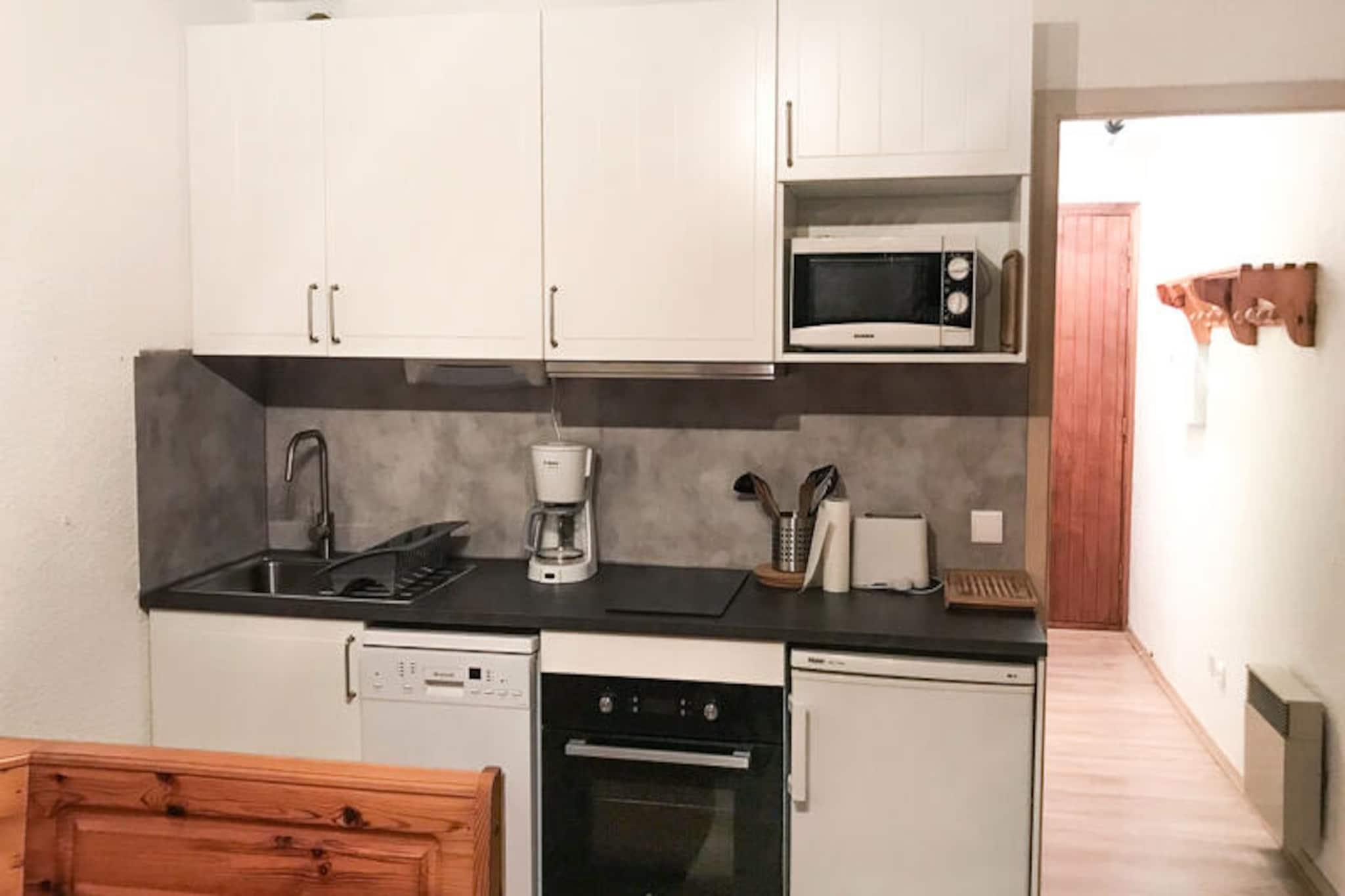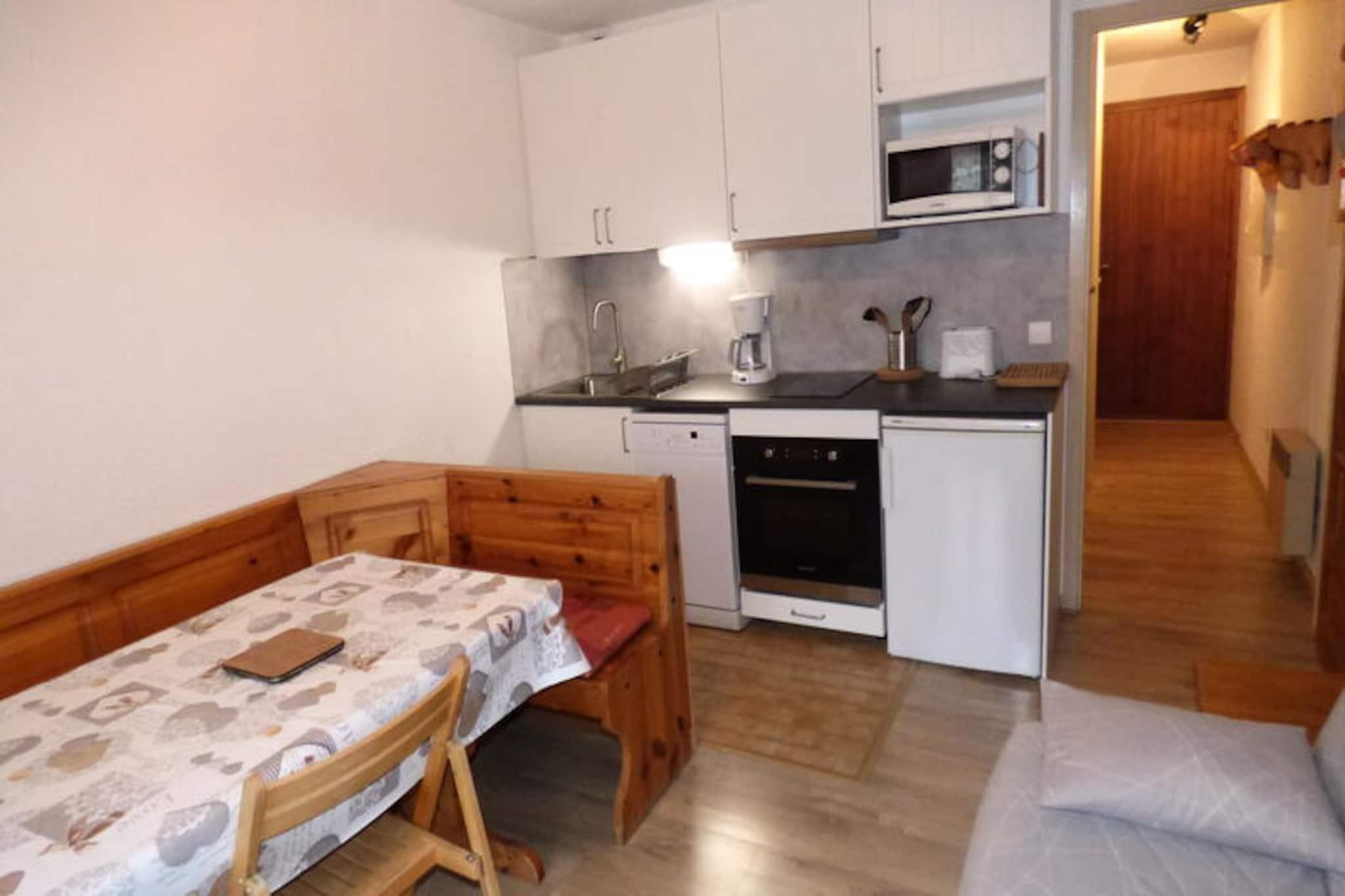 Midt i Valloires charmerende gader tilbyder denne hyggelige lejlighed et indbydende tilflugtssted for rejsende, der søger både eventyr og afslapning. Med sin centrale beliggenhed befinder du dig kun få skridt fra lokale butikker, restauranter og landsbyens pulserende hjerte. Uanset om du er her for at klatre gennem sneklædte skråninger om vinteren eller sole dig i alpesolen om sommeren, placerer denne bolig dig i centrum af det hele. Den sydvendte balkon giver et dejligt sted at nyde din morgenkaffe, mens du nyder den fredfyldte udsigt over bjergene. \n\nIndenfor er lejligheden omhyggeligt designet til at rumme op til fire gæster. Stuen har en komfortabel dobbeltsovesofa, mens entréområdet tilbyder køjesenge, perfekt til familier eller små grupper. Tekøkkenet er udstyret med essentielle apparater, herunder ovn, køleskab, komfur og mikrobølgeovn, hvilket gør det nemt at tilberede måltider efter en dag med udforskning. En hyggelig opholdsstue med tv inviterer dig til at slappe af, og badeværelset har et badekar til et afslappende bad. \n\nOm vinteren ligger Crêt de la Brive-svævebanen og skiskolens mødested kun 350 meter væk, hvilket sikrer ubesværet adgang til pisterne. Om sommeren ligger fritidscentret med swimmingpool, skøjtebane og wellness-område kun 300 meter fra din dør. Uanset om du står på ski, vandrer eller blot nyder den alpine atmosfære, tilbyder Valloire uendelige muligheder for udendørs sjov. \n\nMed sin bekvemme beliggenhed, komfortable faciliteter og maleriske omgivelser er denne lejlighed den perfekte base for din bjergferie. Skab varige minder i hjertet af de franske alper, hvor hver årstid bringer sin egen unikke charme.