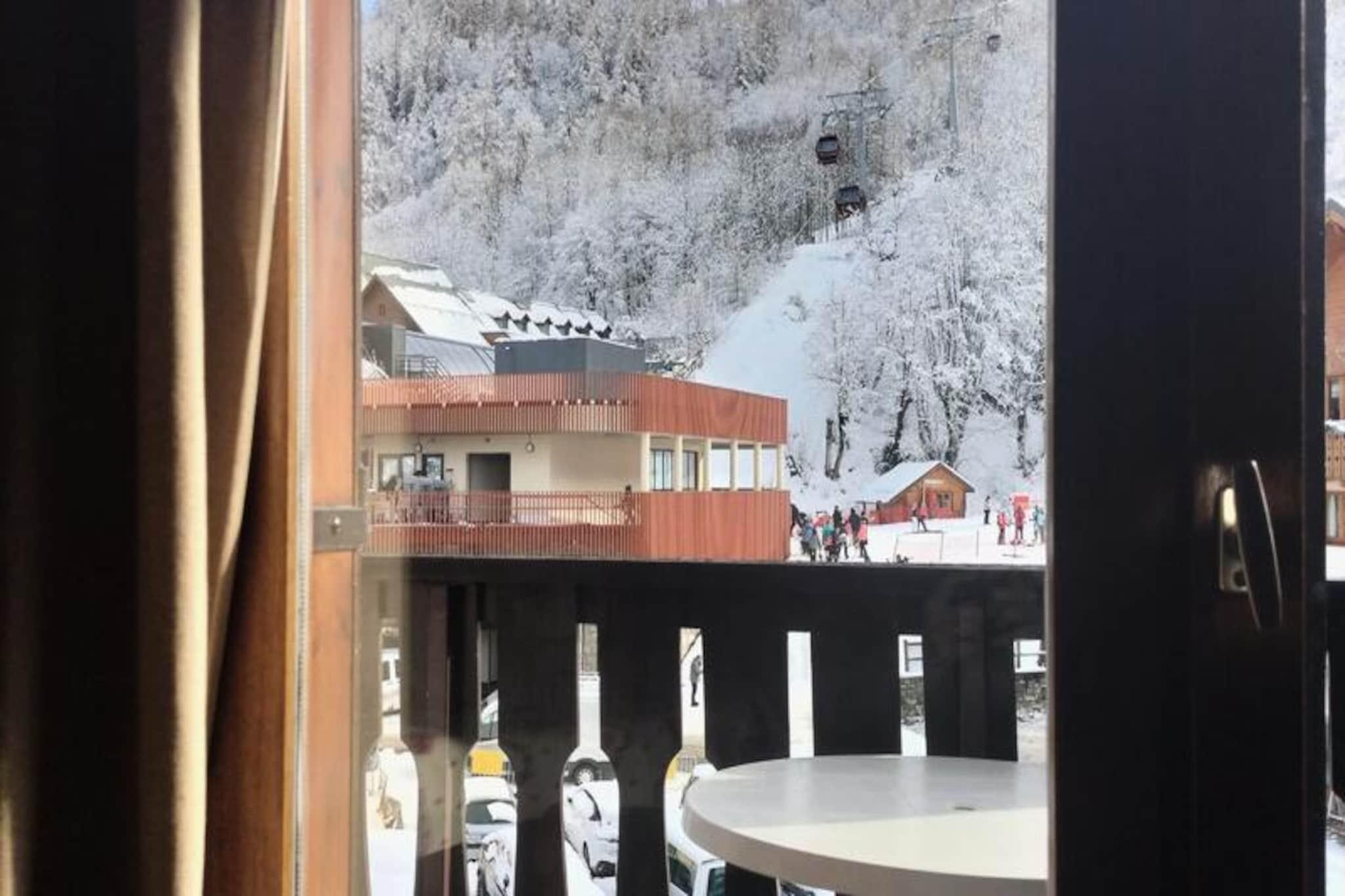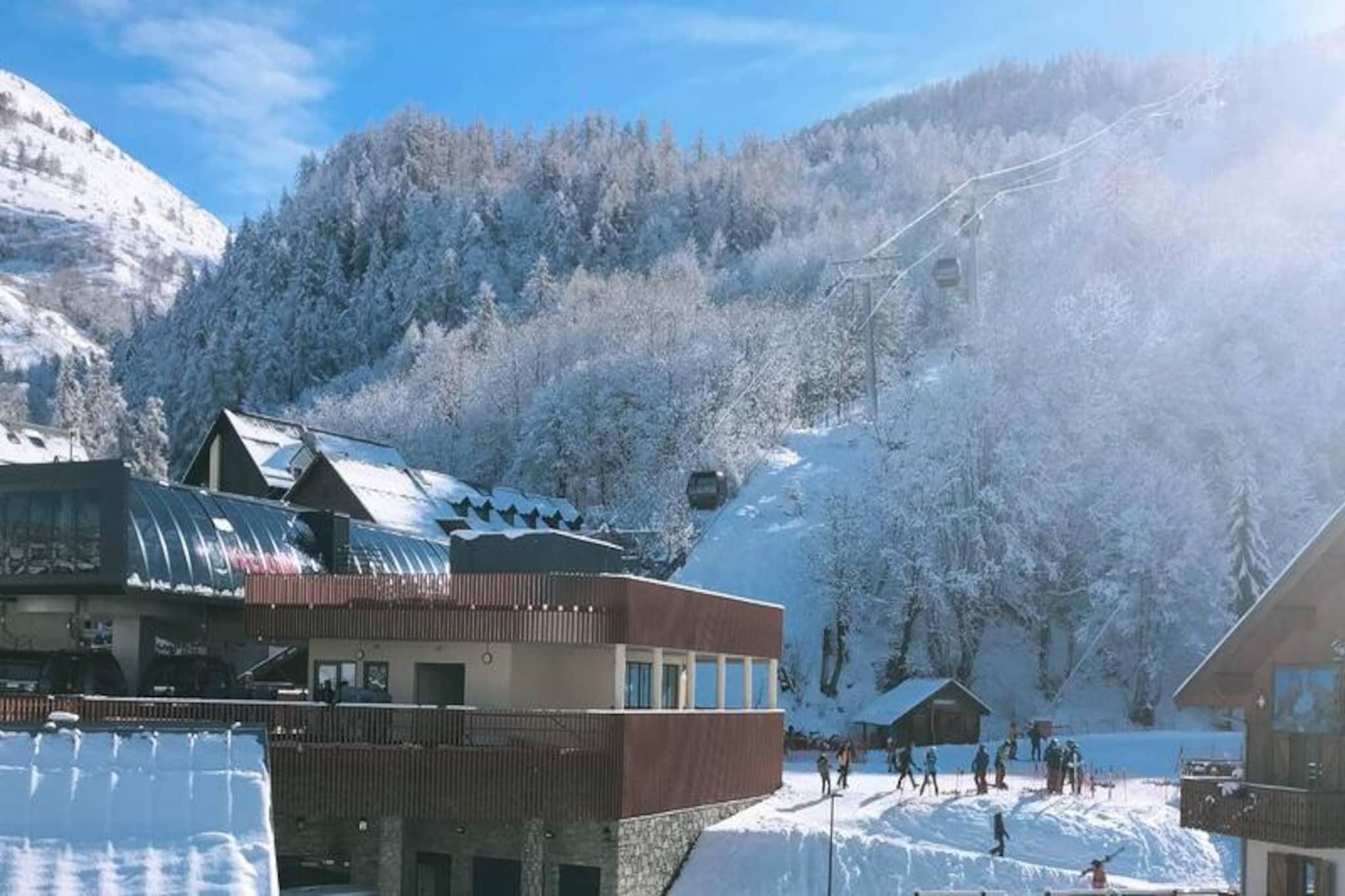 I hjertet af Valloires charmerende landsby inviterer denne hyggelige alpine residens dig til at opleve den perfekte blanding af bekvemmelighed og bjergcharme. Uanset om du besøger om vinteren eller sommeren, placerer ejendommens centrale beliggenhed dig kun få skridt fra lokale butikker, restauranter og spændende aktiviteter. Vågn op til den friske bjergluft og nyd nem adgang til Sétaz-gondolliften, kun 50 meter væk, hvilket gør dine skieventyr ubesværede. Om sommeren ligger fritidscentret med swimmingpool, skøjtebane og wellness-område kun en kort gåtur på 630 meter væk, hvilket tilbyder uendelige muligheder for afslapning og sjov. \n\nIndenfor er lejligheden omhyggeligt designet til komfort og praktisk anvendelighed. Opholdsstuen har en dobbelt sovesofa, mens en hyggelig hyttekrog har køjesenge, perfekt til familier eller små grupper. Tekøkkenet er fuldt udstyret med køleskab/fryser, keramisk kogeplade, ovn, mikrobølgeovn og vaskemaskine, hvilket sikrer, at du har alt, hvad du behøver for et ophold med selvforplejning. Efter en dag med udforskning kan du slappe af i loungen med tv og dvd-afspiller eller tage et bad i det veludstyrede badeværelse. Den sydøstvendte balkon tilbyder et fredeligt sted at nyde din morgenkaffe eller et aftenglas vin, mens du nyder den alpine udsigt. Valloire er en destination, der stråler året rundt. Om vinteren finder du skiløb i verdensklasse og en indbydende landsbyatmosfære, mens sommeren forvandler området til et paradis for vandrere, cyklister og naturelskere. Det nærliggende fritidscenter tilføjer et ekstra lag af nydelse for familier og dem, der søger wellness-aktiviteter. Med skiopbevaring, elevator og fælles parkering sikrer denne bolig et problemfrit ophold. Uanset om du er her for spændende pister eller rolige sommerferier, er denne ejendom din port til de franske alpers skønhed.