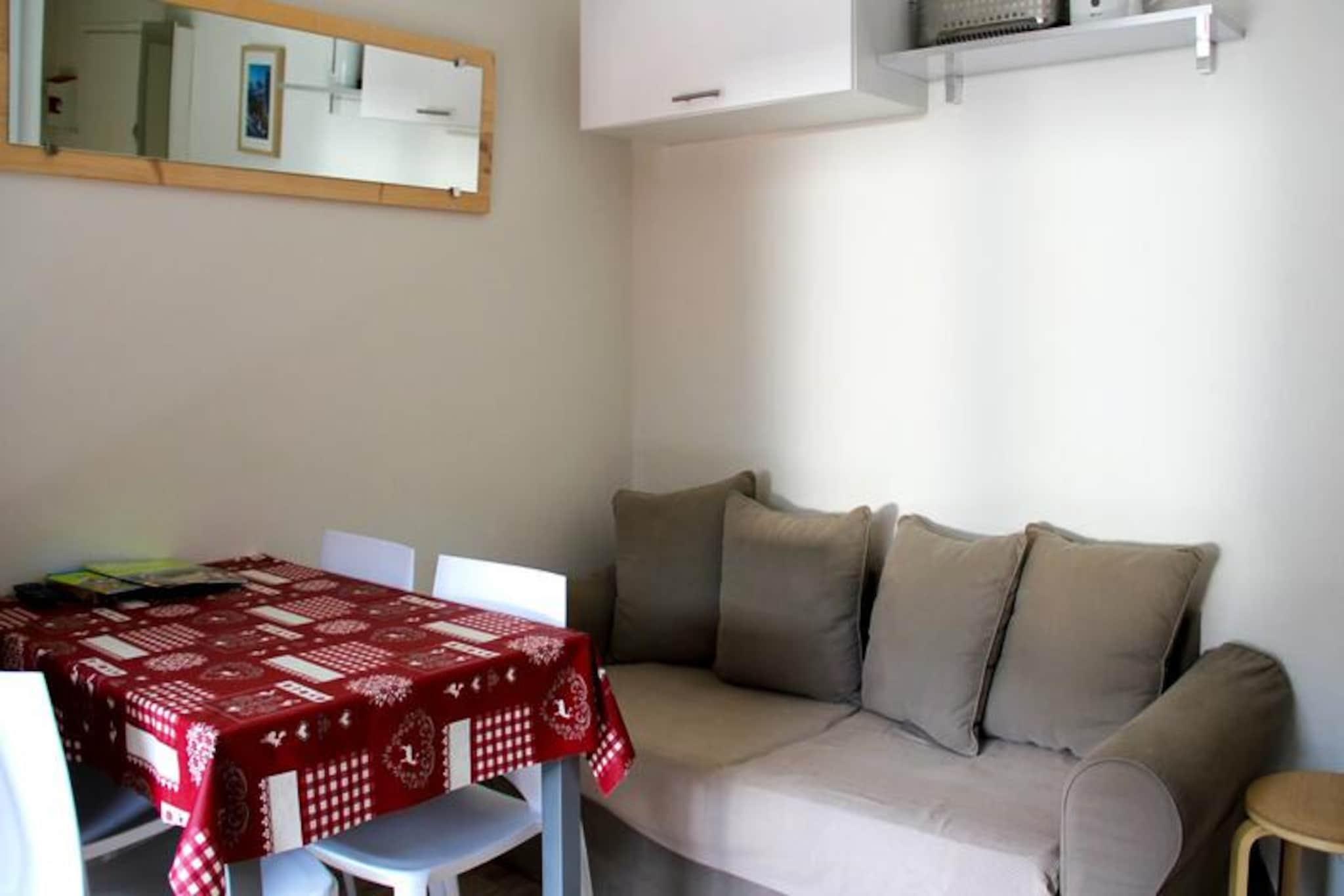 I hjertet af den charmerende landsby Valloire tilbyder denne hyggelige lejlighed et dejligt tilflugtssted for både vinter- og sommerferier. Kun 200 meter til fods fra Crêt de la Brive-svævebanen og skiskolens mødested placerer den dig i centrum af alpint eventyr i de koldere måneder. Om sommeren ligger fritidscentret med swimmingpool, skøjtebane og wellness-område kun 150 meter væk, hvilket lover sjove dage for alle aldre. Den pulserende landsbyatmosfære med butikker og lokale faciliteter i nærheden sikrer et bekvemt og behageligt ophold året rundt. \n\nLejligheden er omhyggeligt designet til at rumme op til fire gæster, hvilket gør den ideel til par eller små familier. Sovepladserne omfatter et hyggeligt soveværelse med køjesenge og en lukket kabine med en komfortabel dobbeltseng. Den vestvendte opholdsstue indbyder til afslapning med sit tekøkken udstyret med moderne apparater, et tv til underholdning og en balkon, hvor du kan slappe af med havemøbler og nyde den friske bjergluft. Praktiske faciliteter såsom opvaskemaskine, vaskemaskine og skiboks øger bekvemmeligheden af ??dit ophold. \n\nValloire er en destination, der kombinerer naturlig skønhed med en livlig fællesskabsånd. Om vinteren er pisterne kun få øjeblikke væk og tilbyder skiløb og snowboarding for alle niveauer. Sommeren forvandler området til et paradis for friluftsentusiaster med vandrestier, cykelruter og naturskønne landskaber, man kan udforske. Det nærliggende fritidscenter tilføjer et strejf af luksus og afslapning til din ferie. \n\nUanset om du søger spændende alpine eventyr eller rolige øjeblikke i de franske alper, er denne charmerende bolig den perfekte base for uforglemmelige minder. Oplev magien i Valloire, og lad dens varme gæstfrihed byde dig velkommen hjem.