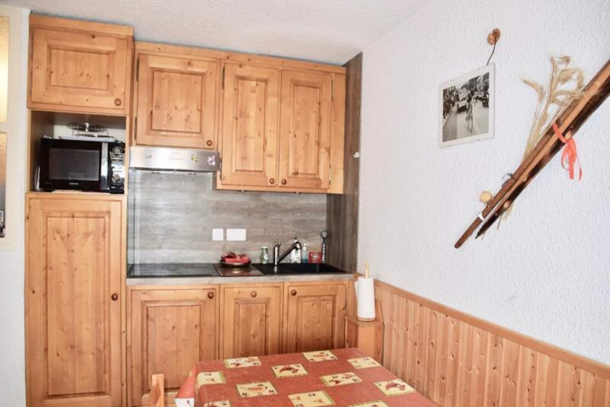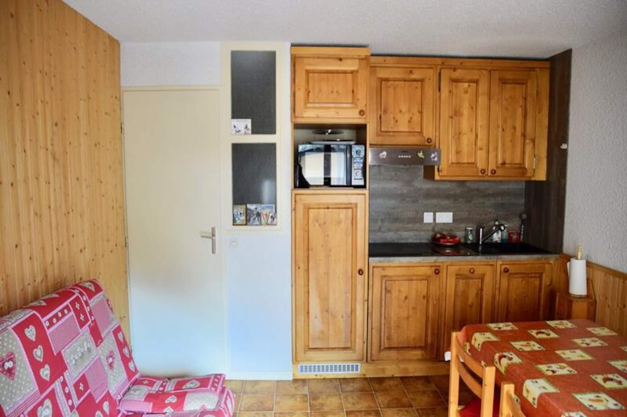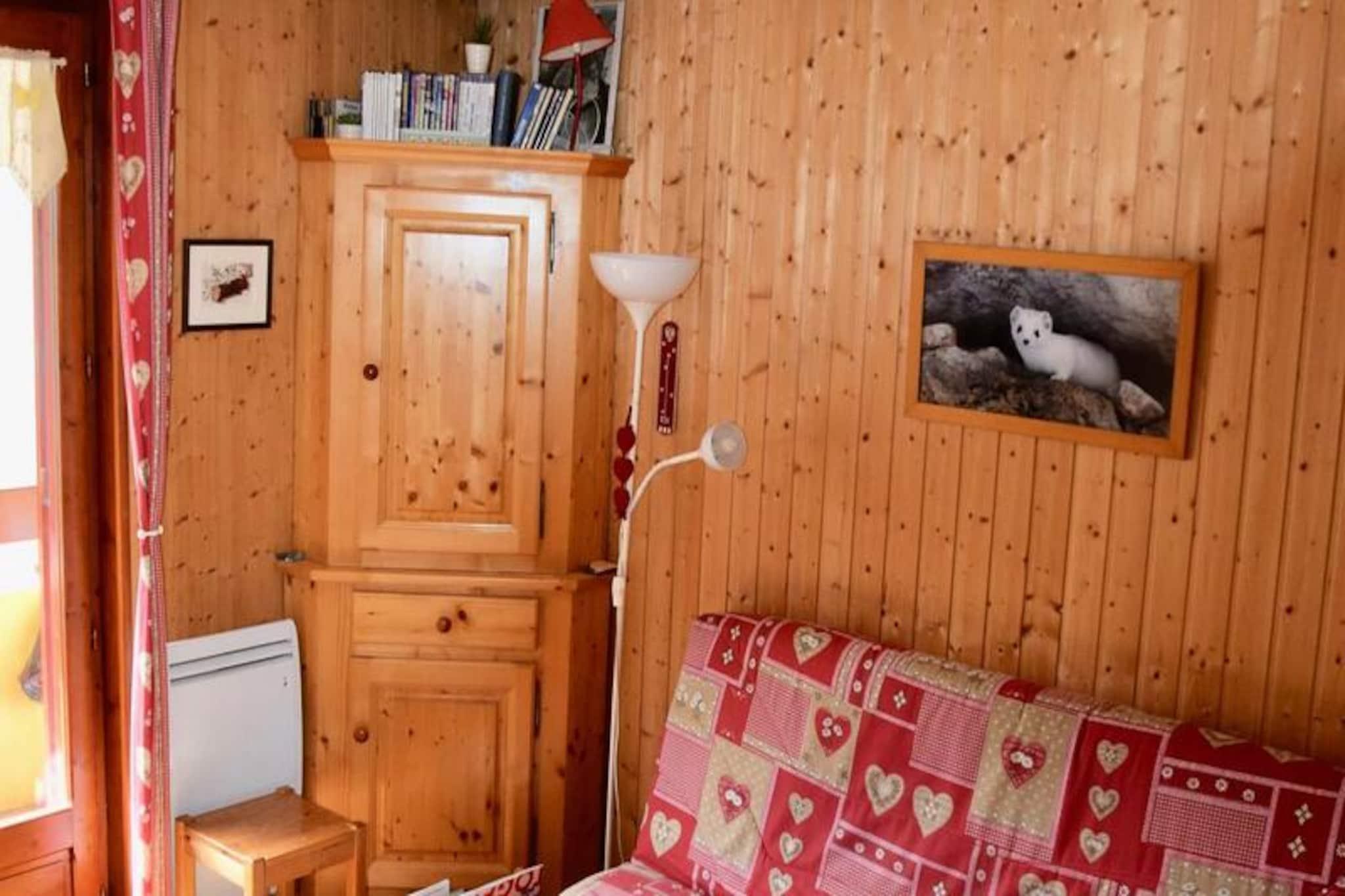 I udkanten af ??den charmerende landsby Les Plans tilbyder denne hyggelige lejlighed et fredeligt tilflugtssted, kun 550 meter fra hjertet af Valloire. Uanset om du besøger stedet om vinteren eller sommeren, giver beliggenheden den perfekte balance mellem ro og bekvemmelighed. Forestil dig selv vågne op til den fredfyldte atmosfære i de franske alper, klar til at udforske de nærliggende pister eller nyde den pulserende landsbyatmosfære. Med en betalt shuttle-bus lige ved boligen er det nemt at komme rundt, hvilket gør den ideel for både familier og par.\n\nLejligheden er omhyggeligt designet til at rumme op til seks gæster. Soveværelset har en komfortabel dobbeltseng, mens hytteområdet tilbyder to køjesenge, perfekt til børn eller venner. Stuen har en sovesofa, hvilket skaber en fleksibel soveplads til din gruppe. Tekøkkenet er fuldt udstyret med moderne apparater såsom mikrobølgeovn, ovn, opvaskemaskine og induktionskogeplade, hvilket sikrer, at du har alt, hvad du behøver for at tilberede lækre måltider. Slap af i loungen med et tv og en dvd-afspiller, eller gå ud på den sydvestvendte balkon for at nyde udsigten over bjergene.\n\nOm vinteren befinder du dig kun 550 meter fra Crêt de la Brive-svævebanen, skiskolens mødested og lokale butikker, hvilket sikrer nem adgang til pisterne og faciliteterne. Om sommeren ligger fritidscentret med swimmingpool, skøjtebane og wellness-område kun 400 meter væk, mens der kun ligger en legeplads 150 meter fra din dørtrin. Det rolige kvarter bidrager til appellen og tilbyder en rolig tilflugtssted efter en dag med eventyr.\n\nUanset om du er her for at stå på ski, vandre eller bare slappe af, tilbyder denne lejlighed en indbydende base for at skabe uforglemmelige minder i hjertet af Alperne. Med sin blanding af komfort, bekvemmelighed og fantastiske omgivelser er det det perfekte valg til din næste ferie.