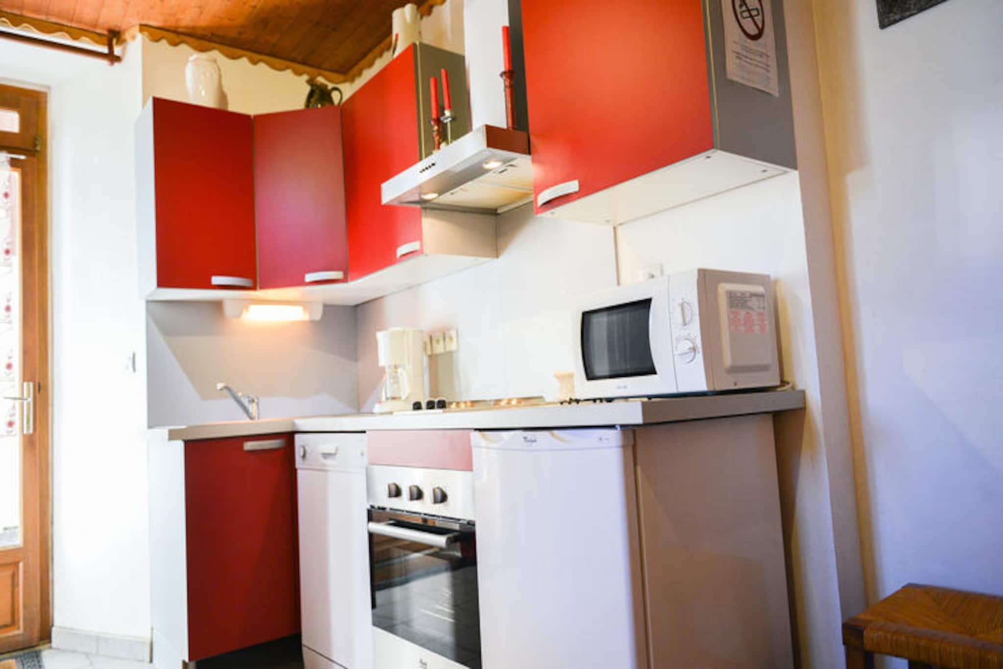 I hjertet af den charmerende alpelandsby Valloire inviterer dette hyggelige tilflugtssted dig til at opleve den perfekte bjergferie. Omgivet af de majestætiske tinder i de franske alper tilbyder denne ejendom en blanding af komfort og bekvemmelighed, hvilket gør den til et ideelt valg til både vinter- og sommerferier. Uanset om du er her for at klatre gennem uberørte skråninger eller nyde den pulserende sommerstemning, placerer denne indkvartering dig i centrum af det hele. \n\nIndenfor er ejendommen omhyggeligt designet til at imødekomme dine behov. Stuen, badet i naturligt lys, har en komfortabel sovesofa til to, et tv, en dvd-afspiller og Wi-Fi for at holde dig forbundet. En separat gang med køjesenge sikrer privatliv og fleksibilitet for familier eller små grupper. Tekøkkenet er fuldt udstyret med ovn, mikrobølgeovn, opvaskemaskine og køleskab, så du nemt kan tilberede måltider. Badeværelset har bruser og hårtørrer, mens et separat toilet øger bekvemmeligheden. For ekstra komfort tilbyder den fælles have med havemøbler et roligt sted at slappe af efter en dag med eventyr.\n\nOm vinteren ligger Crêt de la Brive-svævebanen og skiskolens mødested kun 230 meter væk, hvilket giver problemfri adgang til pisterne. Om sommeren ligger fritidscentret med swimmingpool, skøjtebane og wellness-område kun 500 meter fra din dør. Nærliggende butikker og underholdningssteder sikrer, at alt hvad du behøver er inden for rækkevidde.\n\nMed sin førsteklasses beliggenhed, moderne faciliteter og Valloires fortryllende baggrund lover denne ejendom en uforglemmelig alpin oplevelse. Uanset om du søger spændende udendørsaktiviteter eller fredelige øjeblikke i naturen, er dette tilflugtssted din port til det bedste af de franske alper.