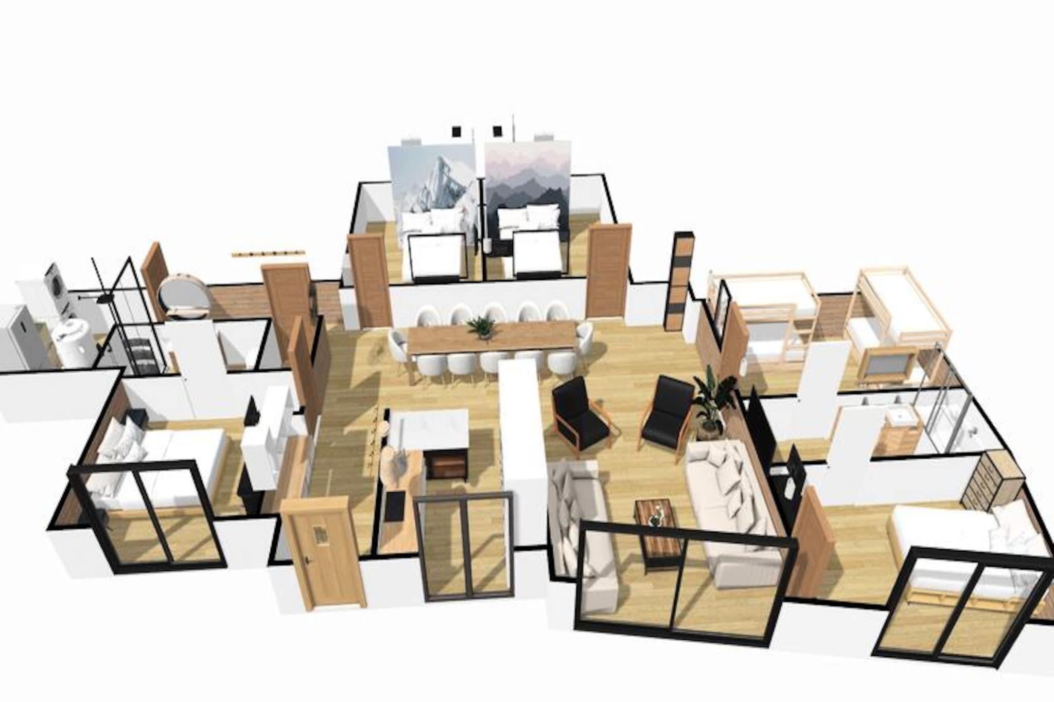 I den fredelige landsby Choseaux-Ville, kun 850 meter fra hjertet af Valloire, tilbyder denne nybyggede chalet-lejlighed en harmonisk blanding af alpin charme og moderne komfort. Omgivet af en betagende udsigt over bjergene er det et fredeligt tilflugtssted, samtidig med at det ligger bekvemt tæt på Crêt de la Brive-gondolliften og skiskolen, kun 650 meter væk. Uanset om du besøger stedet om vinteren eller sommeren, er dette rolige kvarter det perfekte udgangspunkt for dine alpine eventyr. Indvendigt er lejligheden omhyggeligt designet til at rumme op til 12 gæster. Den rummelige stue, badet i naturligt lys, har en hyggelig lounge med tv og Wi-Fi, der er smidigt forbundet med et fuldt udstyret tekøkken med moderne apparater som induktionskomfur, ovn, mikroovn og opvaskemaskine. Soveforholdene er alsidige med fire lukkede soveafdelinger og et køjesengområde, alle møbleret med bløde dyner for ultimativ komfort. Fire badeværelser, herunder et luksuriøst fælles badeværelse med toilet i japansk stil, sikrer bekvemmelighed for større grupper. Yderligere faciliteter omfatter et vaskerum med vaskemaskine, tørretumbler og ekstra køleskab med fryser. Træd ud på den store 60 m² terrasse og nyd den panoramiske udsigt. Terrassen er udstyret med havemøbler, liggestole, parasol og grill og er det ideelle sted at slappe af efter en dag med skiløb eller vandreture. Chalet'en tilbyder også tre private udendørs parkeringspladser, et skiskab i Dry Box nær gondolbanen og sikker fælles cykelopbevaring, der imødekommer både vinter- og sommeraktiviteter. Med butikker, restauranter og et fritidscenter i nærheden, herunder en swimmingpool, skøjtebane og wellness-område, kombinerer denne ejendom bekvemmelighed med ro. Uanset om du suser ned ad snedækkede pister eller udforsker naturskønne stier, lover denne hytte en uforglemmelig alpin ferie for både familier og venner.