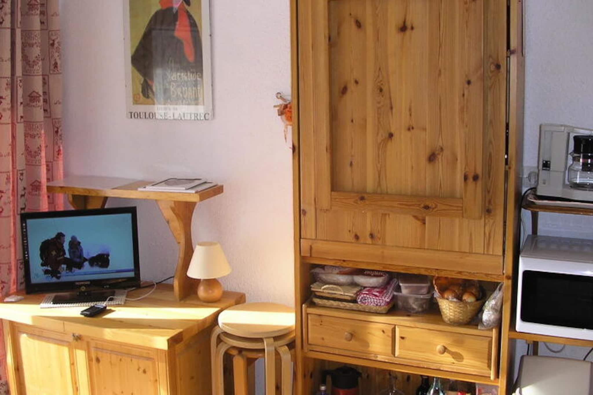 I den charmerende landsby La Grand Vy, kun 1,3 km fra hjertet af Valloire, tilbyder denne hyggelige studiolejlighed et dejligt alpint tilflugtssted for par, der søger ro og bekvemmelighed. Omgivet af betagende bjerglandskab er det den perfekte base for at udforske de franske alper, uanset om I er her for vintersport eller sommereventyr. Med Moulin Benjamin-stoleliften og skiskolens mødested kun 400 meter væk, og "Moulin"-skibakken kun 100 meter fra din dør, vil du nyde problemfri adgang til pisterne. En regelmæssig shuttlebus, der ligger 30 meter fra boligen, sikrer nem transport til landsbyens centrum og videre. Studiolejligheden er designet til komfort og har en sydvendt terrasse, hvor I kan nyde solen og beundre den fredfyldte udsigt over alperne. Indenfor finder I et veludstyret tekøkken med miniovn, køleskab og elektrisk kogeplade samt en hyggelig opholdsstue med tv. Sovepladserne inkluderer en sovesofa i stuen og en enkelt køjeseng i entréen, adskilt af en dør for ekstra privatliv. Badeværelset har badekar, håndvask og hårtørrer, mens et separat toilet inkluderer en vaskemaskine for din bekvemmelighed. I sommermånederne er boligen ideelt beliggende nær vandrestier og kun 100 meter fra ridecentret, hvilket gør det til et fremragende valg for friluftsentusiaster. Fritidscentret med swimmingpool, skøjtebane og wellness-område ligger kun 1,8 km væk og tilbyder masser af muligheder for afslapning og rekreation. Med privat parkering, et skirum og nærhed til lokale butikker og faciliteter kombinerer denne studiolejlighed praktiskhed med charme. Uanset om du snor dig gennem snedækkede pister om vinteren eller udforsker frodige alpine stier om sommeren, tilbyder denne indbydende lejlighed et fredeligt tilflugtssted til at slappe af og skabe uforglemmelige minder i Valloires maleriske omgivelser.