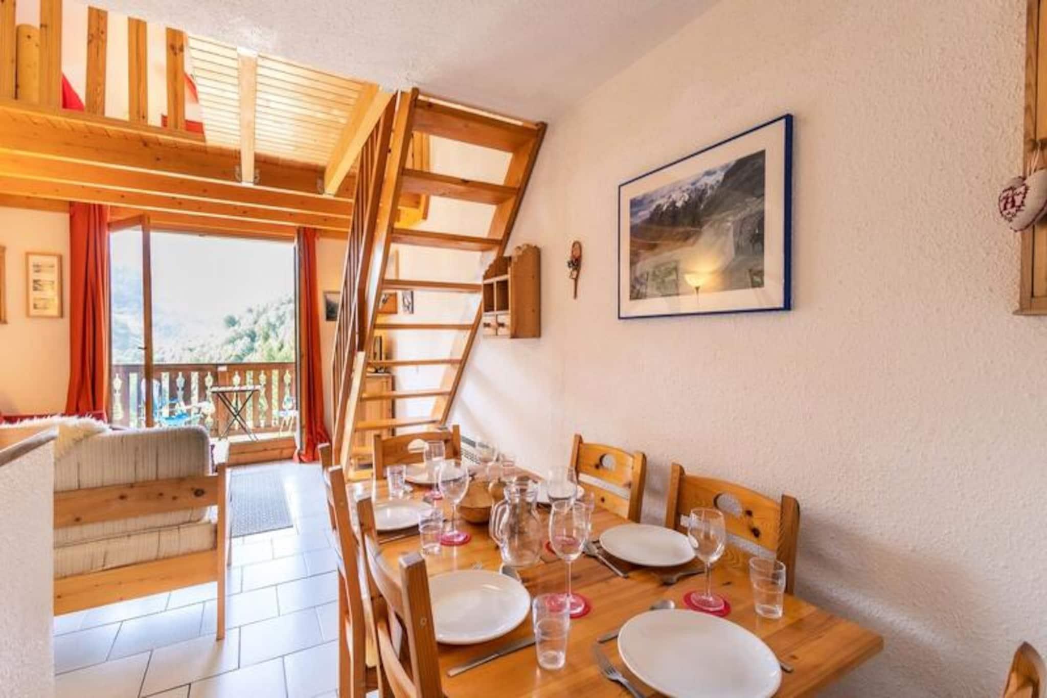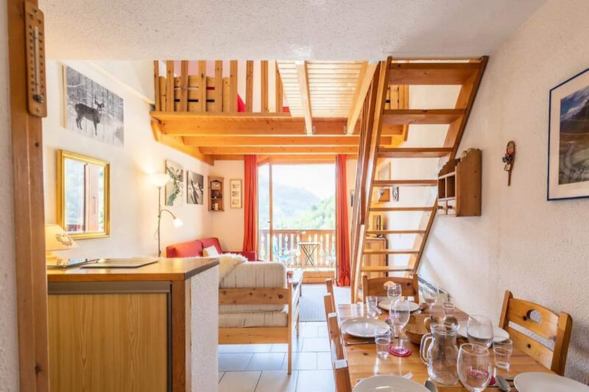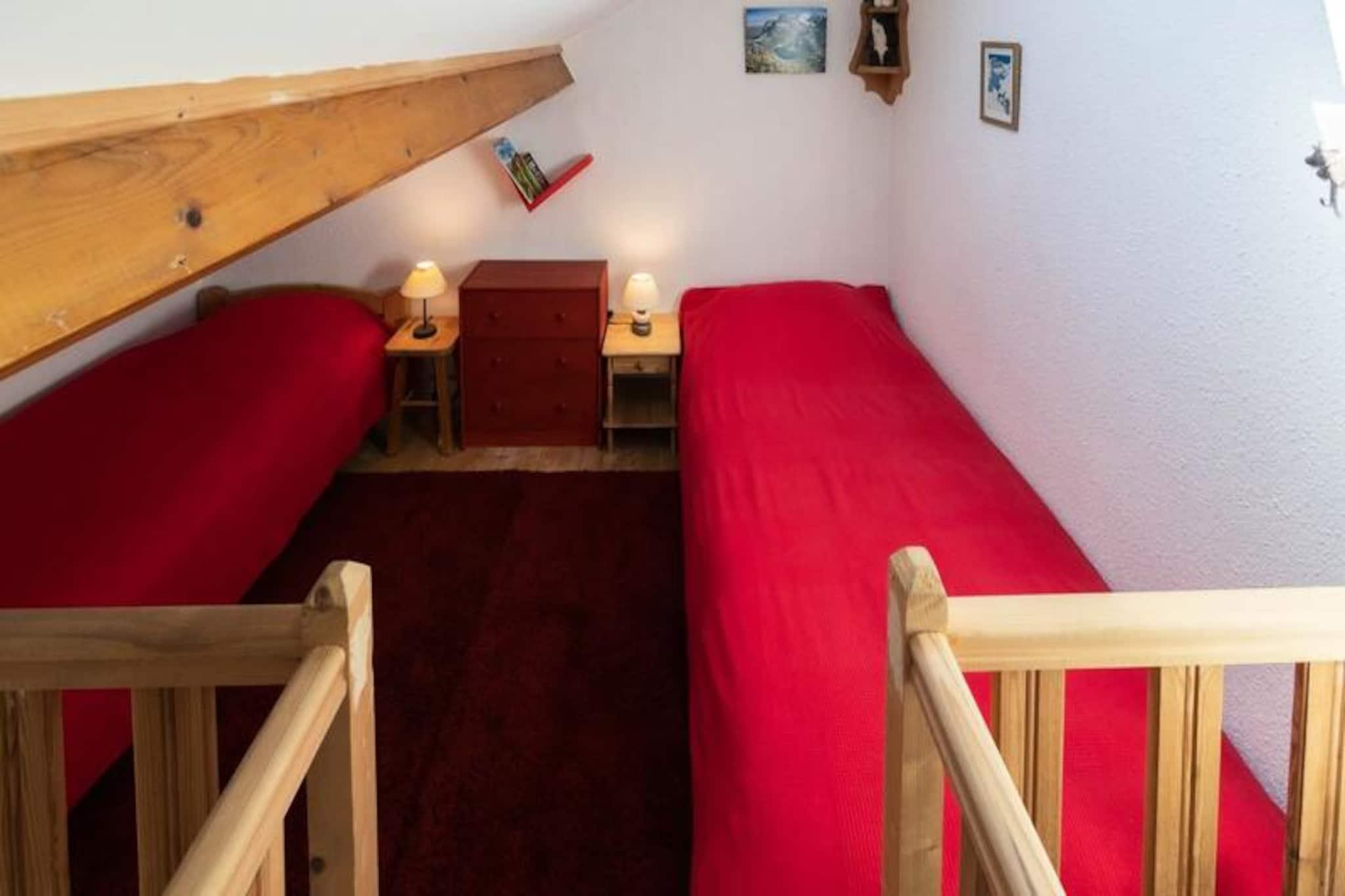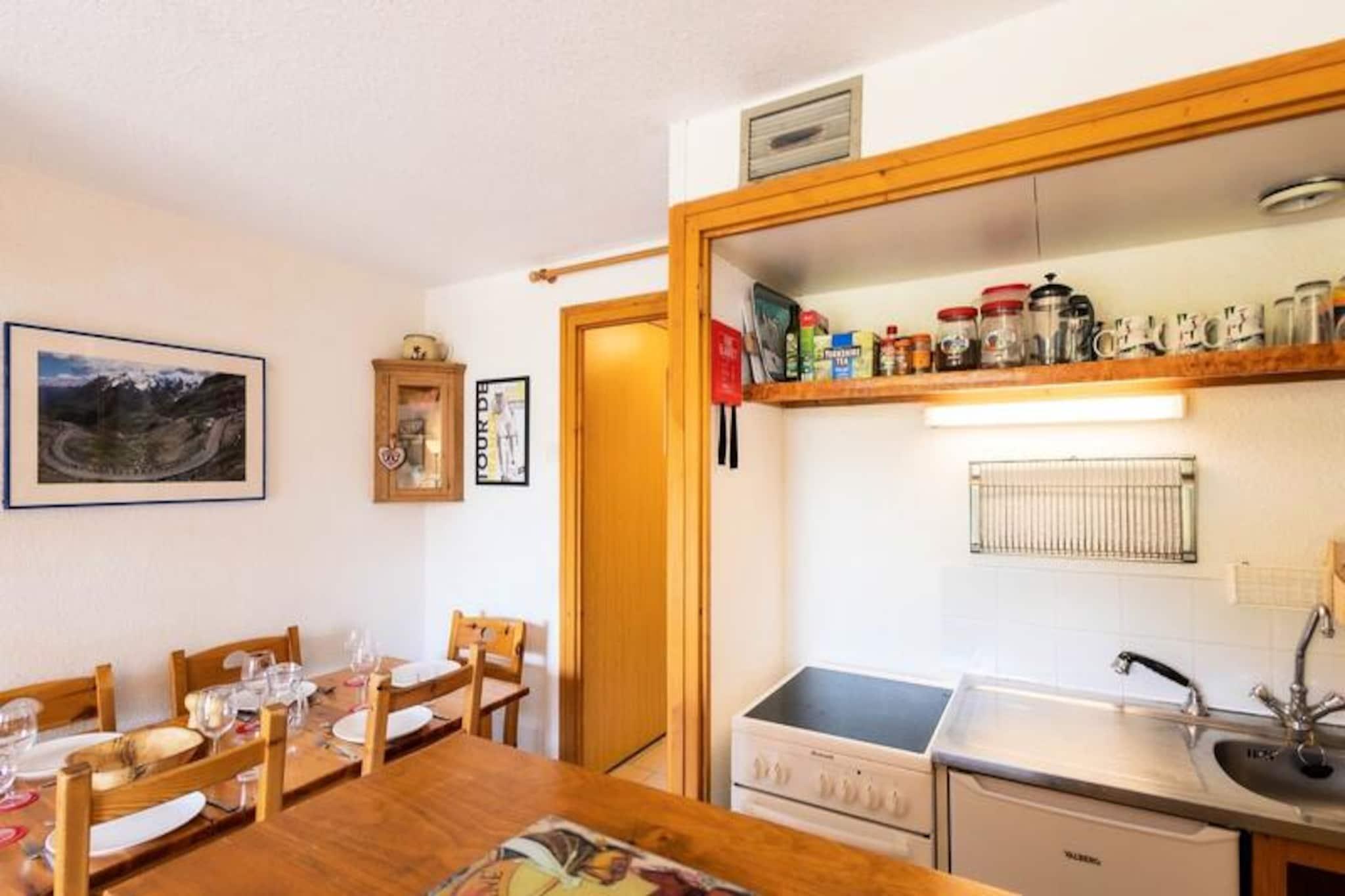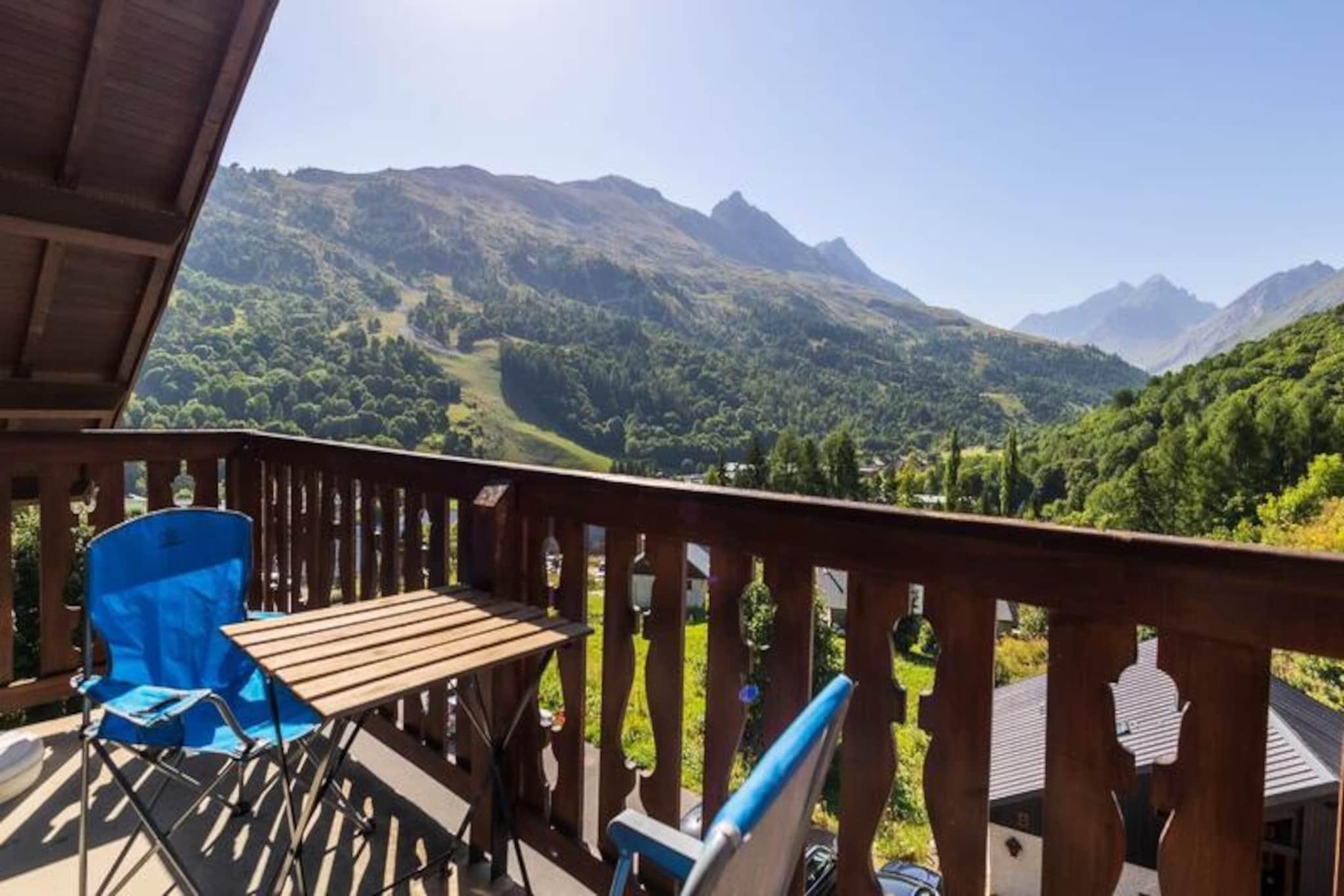 I den fredfyldte landsby Les Verneys, kun 2 km fra Valloires charmerende centrum, tilbyder denne hyggelige alpelejlighed et roligt tilflugtssted omgivet af betagende bjerglandskaber. Uanset om du besøger om vinteren eller sommeren, er denne ejendom den perfekte base for at udforske de franske alper og nyde en række udendørsaktiviteter. Med sin sydvendte balkon vågner du op til en fantastisk udsigt og den friske alpeluft, der sætter tonen for en uforglemmelig ferie. \n\nLejligheden, der ligger i bygning G, har komfortabel plads til op til seks gæster. Den åbne mezzanin har en dobbeltseng og to enkeltsenge, mens stuen har en sovesofa, hvilket sikrer fleksible sovemuligheder for familier eller vennegrupper. Tekøkkenet er udstyret med alt det nødvendige, herunder elektrisk kogeplade, ovn, køleskab og små apparater som kaffemaskine og brødrister. Efter en dag med eventyr kan du slappe af i den hyggelige opholdsstue med tv og dvd-afspiller eller nyde et afslappende bad i badekarret. Praktiske faciliteter såsom vaskemaskine/tørretumbler og skiboks gør dit ophold endnu mere behageligt.\n\nOm vinteren ligger Verneys-stoleliften og ESF-skiskolens mødested kun 650 m væk, og der er en gratis skilift for begyndere i nærheden. Langrendsløjper er inden for rækkevidde, og en betalt shuttlebus til centrum af Valloire ligger kun 450 m væk. Du finder også skibutikker, et bageri og restauranter inden for en kort gåtur på 550 m. I sommermånederne forvandles området til et paradis for vandrere og golfspillere med vandrestier og en golfbane kun 900 m væk. Den uopvarmede udendørs swimmingpool, der er åben i juli og august, er perfekt til at køle af efter en dag i solen.\n\nUanset om du er tiltrukket af pisterne om vinteren eller stierne om sommeren, tilbyder denne lejlighed i Les Verneys en fredelig og veludstyret base for dine alpine eventyr. Med sine idylliske omgivelser og bekvemme beliggenhed lover den en ferie fyldt med afslapning og uforglemmelige minder.