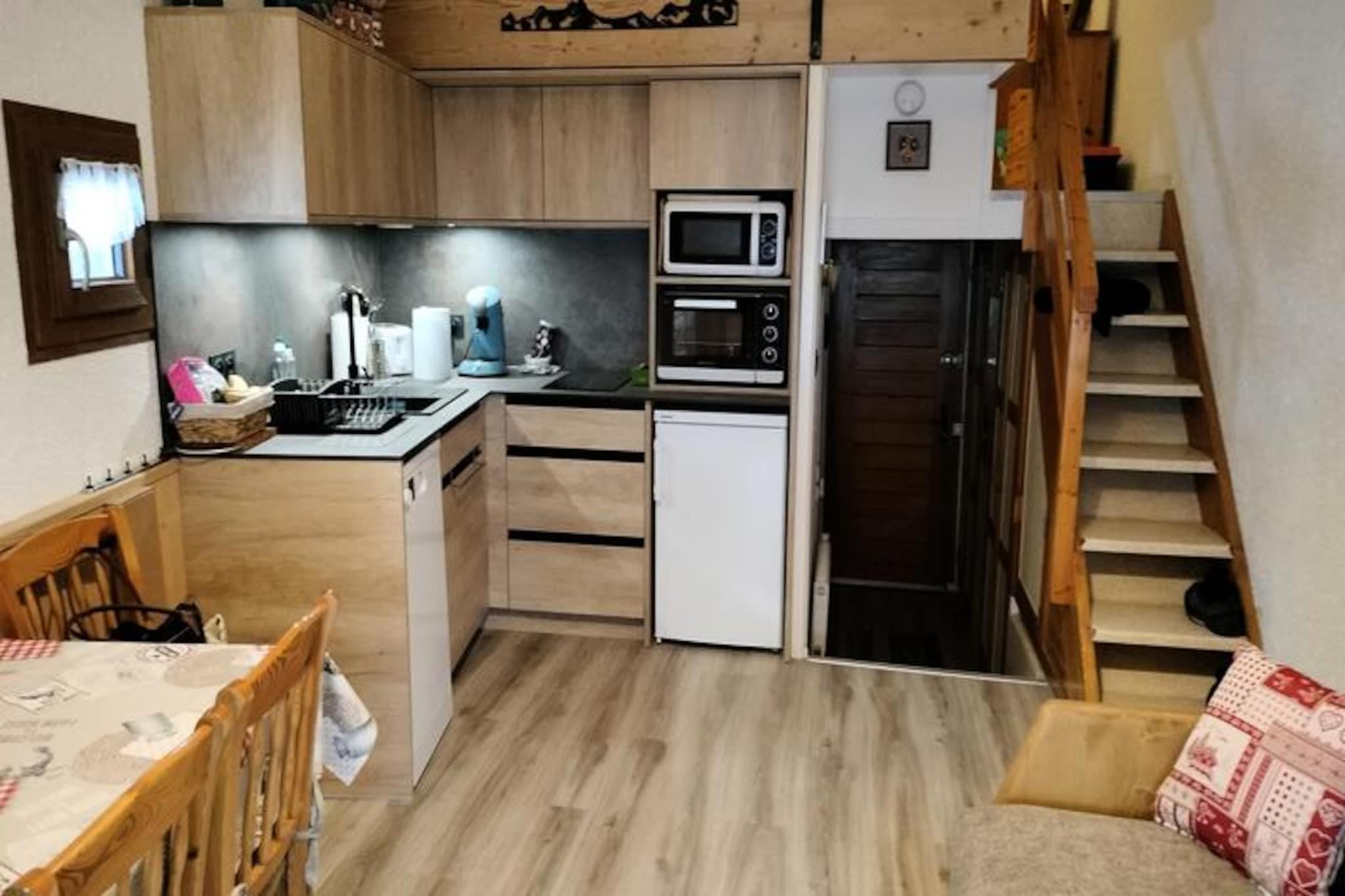 I hjertet af den charmerende alpelandsby Valloire tilbyder denne hyggelige bolig en perfekt blanding af komfort og bekvemmelighed til din bjergferie. Omgivet af de majestætiske tinder i de franske alper ligger ejendommen kun en kort gåtur på 300 meter fra Crêt de la Brive-svævebanen og skiskolens mødested, hvilket gør den til et ideelt valg for vintersportsentusiaster. I sommermånederne vækkes den pulserende landsbyatmosfære til live med aktiviteter, og fritidscentret med swimmingpool, skøjtebane og wellness-område ligger kun 600 meter væk. Boligen er omhyggeligt designet til at rumme op til fire gæster med en mezzanin med en komfortabel dobbeltseng og en stue med sovesofa. Tekøkkenet har moderne bekvemmeligheder såsom ovn, mikrobølgeovn, opvaskemaskine, køleskab og induktionskogeplade, hvilket sikrer, at du har alt, hvad du behøver for at tilberede lækre måltider efter en dag med eventyr. Slap af i den indbydende lounge med tv og Wi-Fi, eller slap af på den sydvendte balkon, mens du nyder den friske bjergluft og den fantastiske udsigt. Badeværelset er udstyret med badekar, håndvask, hårtørrer og toilet for din bekvemmelighed. \n\nBeliggende i hjertet af Valloire finder du butikker, restauranter og lokale attraktioner kun få skridt væk. Uanset om du står på ski ned ad uberørte pister om vinteren eller udforsker naturskønne vandrestier om sommeren, placerer denne bolig dig i centrum af det hele. Med et skirum, elevator og fælles parkering bliver dit ophold endnu mere problemfrit. Oplev charmen ved Valloire og skab uforglemmelige minder i dette idylliske alpine tilflugtssted.