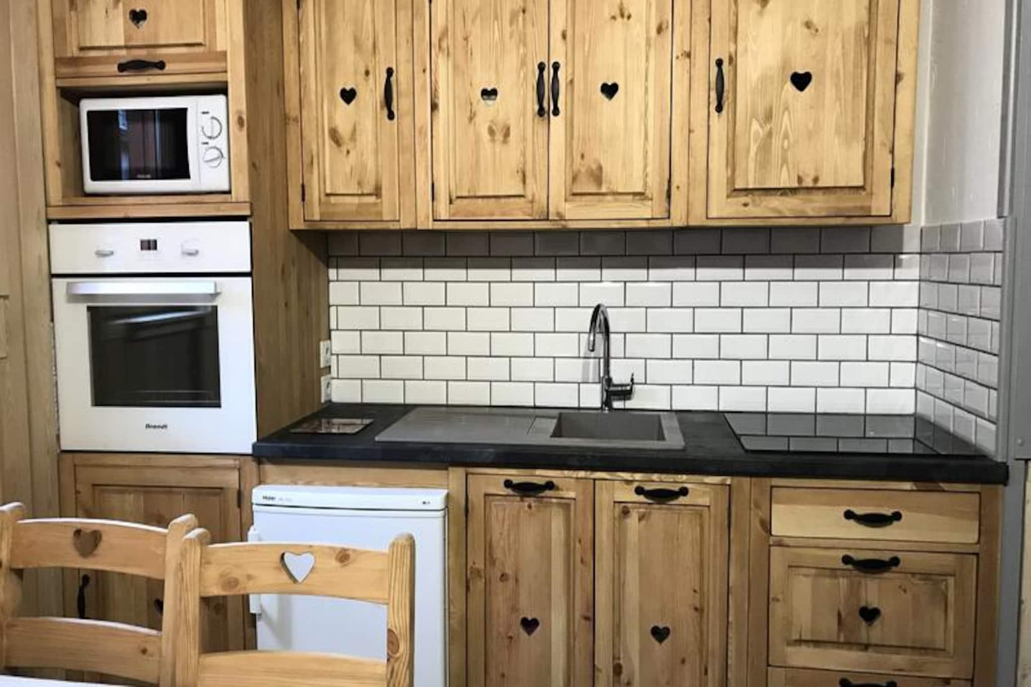 I hjertet af den charmerende alpelandsby Valloire tilbyder denne hyggelige bolig det perfekte tilflugtssted for din bjergferie. Omgivet af betagende tinder og kun en kort gåtur fra Crêt de la Brive-skilifterne, er det en ideel base for både vintersportsentusiaster og naturelskere. Den pulserende landsbyatmosfære med dens hyggelige butikker og lokale spisesteder tilføjer et strejf af varme og autenticitet til dit ophold. Om sommeren er boligen lige så indbydende, beliggende kun 250 meter fra fritidscentret, hvor du kan nyde en swimmingpool, skøjtebane og wellness-område, samt en kort gåtur fra legepladsen. Lejligheden er omhyggeligt designet til at rumme op til fire gæster, hvilket gør den perfekt til små familier eller par. Opholdsstuen er lys og sydvendt og åbner ud til en rummelig 11 m² terrasse med havemøbler, hvor du kan nyde udsigten over bjergene og den friske alpeluft. Tekøkkenet er udstyret med moderne apparater, herunder ovn, mikrobølgeovn, køleskab og induktionskogeplade, hvilket sikrer, at du har alt, hvad du behøver for et behageligt ophold. Sovepladserne inkluderer en kahyt med køjesenge og en udtrækssovesofa i stuen, alle udstyret med behagelige dyner til afslappende nætter. Et moderne badeværelse med bruser og separat toilet øger bekvemmeligheden. Uanset om du er her for at klatre gennem uberørte pister om vinteren eller udforske de frodige stier og udendørsaktiviteter om sommeren, placerer denne bolig dig i centrum af det hele. Med skibokse, fælles parkering og nem adgang til landsbyens faciliteter er det et problemfrit valg til din alpine ferie. Skab uforglemmelige minder i de maleriske omgivelser i Valloire, hvor eventyr og afslapning går hånd i hånd.