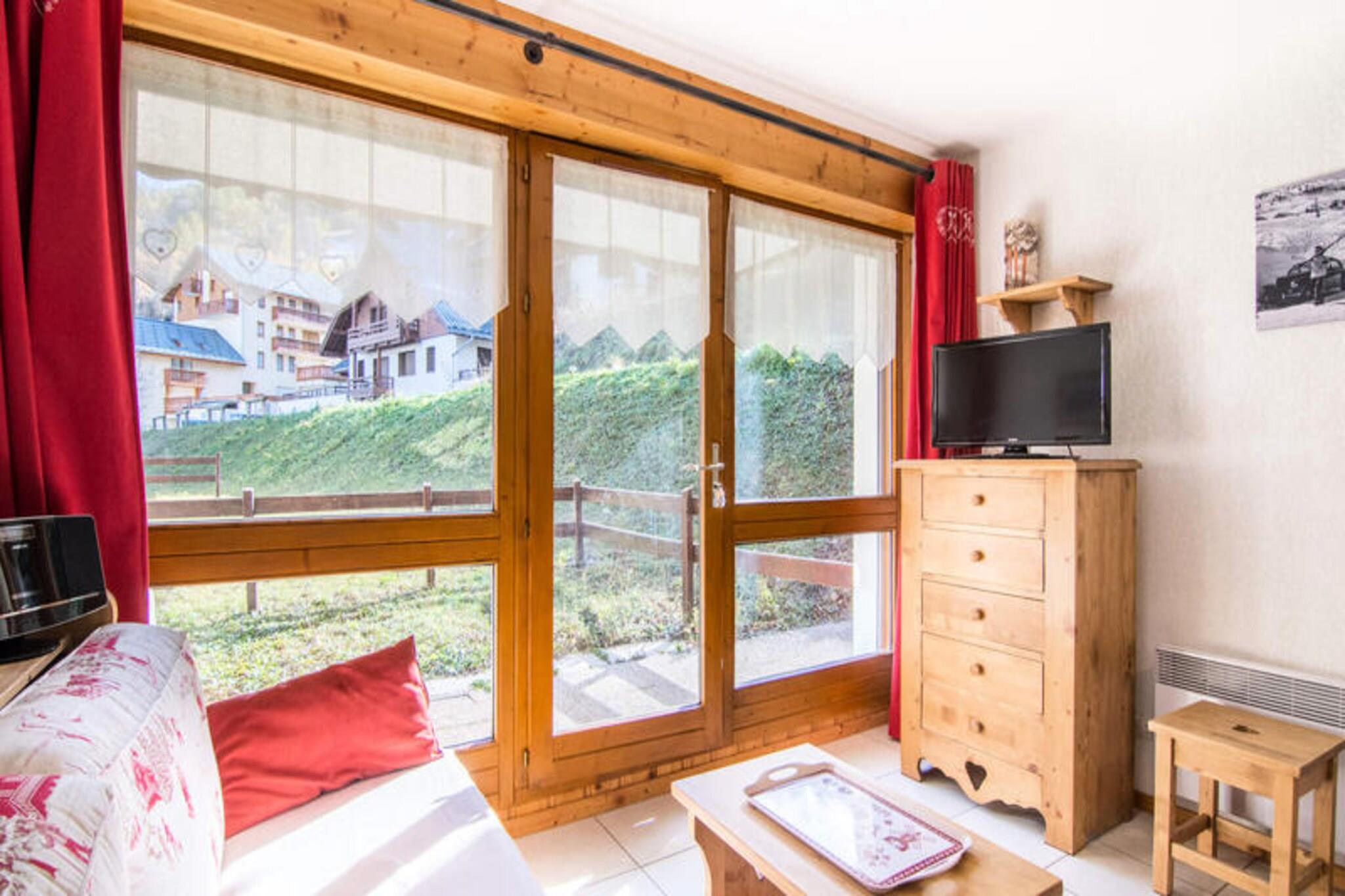 I hjertet af den charmerende alpelandsby Valloire tilbyder denne hyggelige bolig et dejligt tilflugtssted for både vinter- og sommerferier. Omgivet af Maurienne-dalens majestætiske tinder er ejendommen perfekt beliggende kun 150 meter fra Sétaz-svævebanen, hvilket gør den til et førsteklasses valg for skientusiaster. I de varmere måneder forvandles den pulserende landsbyatmosfære til et centrum for udendørsaktiviteter, med fritidscentret med swimmingpool, skøjtebane og wellness-område kun 650 meter væk. De nærliggende butikker og restauranter bidrager til bekvemmeligheden og sikrer, at alt hvad du behøver er inden for rækkevidde. Boligen er omhyggeligt designet til at tilbyde komfort og praktisk anvendelighed. Soveværelset har to enkeltsenge, der kan sættes sammen, mens stuen har en sovesofa, hvilket gør den ideel til par eller små familier. Tekøkkenet er udstyret med moderne bekvemmeligheder, herunder elektrisk kogeplade, køleskab, miniovn, mikrobølgeovn og opvaskemaskine, så du nemt kan tilberede måltider. Slap af i loungen med tv og mini-stereoanlæg, eller slap af på den sydøstvendte terrasse og lille have med havemøbler og liggestole, hvor du kan nyde den alpine sol.\n\nUden for ejendommen er Valloire en skattekiste af aktiviteter og attraktioner. Om vinteren sikrer nærheden til skiskolens mødested og de omfattende pister i skiområdet Galibier-Thabor endeløse eventyr i sneen. Om sommeren kan du udforske vandre- og cykelstierne, der snor sig gennem de betagende landskaber, eller nyde landsbyens kulturelle begivenheder og festivaler. Med sin blanding af naturlig skønhed, moderne komfort og førsteklasses beliggenhed lover denne bolig en uforglemmelig alpin ferie.