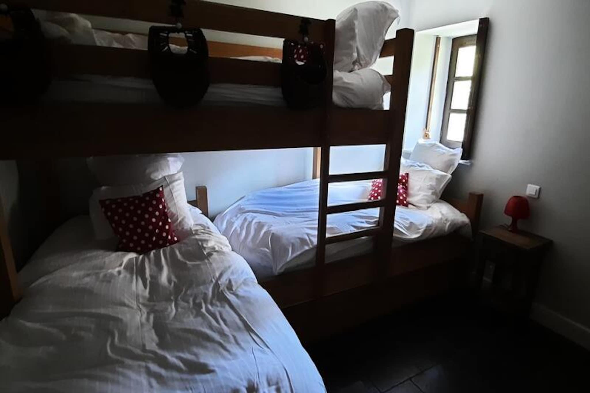 I den fredfyldte landsby La Rivine, kun 3,8 km fra Valloires charmerende centrum, tilbyder dette traditionelle landsted et fredeligt bjergparadis for op til otte gæster. Omgivet af de franske alpers betagende skønhed er denne ejendom et paradis for både naturelskere og eventyrlystne. Uanset om du besøger stedet om vinteren eller sommeren, gør de rolige omgivelser og nærheden til udendørsaktiviteter det til et ideelt valg for familier og vennegrupper. \n\nIndenfor kombinerer lejligheden rustik charme med moderne bekvemmeligheder. Den rummelige opholdsstue har en hyggelig pejs med brænde, perfekt til afslapning efter en dag på pisterne eller stierne. Det åbne køkken er fuldt udstyret med ovn, mikrobølgeovn, induktionskogeplade og endda raclette- og fonduesæt til en ægte Savoyard-madoplevelse. Tre komfortable soveværelser tilbyder fleksible sovearrangementer, herunder et værelse med en dobbeltseng og et andet med flere enkeltsenge og en køjeseng, hvilket gør det perfekt til familier. Yderligere faciliteter inkluderer Wi-Fi, et fjernsyn, en vaskemaskine og en tørretumbler, hvilket sikrer et bekvemt og behageligt ophold. \n\nOm vinteren ligger ejendommen kun 1,1 km fra Les Verneys, hvor du finder en stolelift, skiskole og essentielle butikker som et bageri og en aviskiosk. En shuttlebus kører i højsæsonen i ferien, hvilket gør adgangen endnu nemmere. Der er også langrendsløjper i nærheden, hvilket tilbyder uendelige muligheder for snefyldte eventyr. Om sommeren forvandles området til et paradis for friluftsentusiaster med tennisbaner og en golfbane kun 700 meter væk. Den fælles have og den private terrasse er de perfekte steder at nyde det alpine landskab. \n\nMed sin fredelige beliggenhed, autentiske alpine charme og adgang til aktiviteter året rundt lover denne ejendom en uforglemmelig bjergferie. Uanset om du står på ski om vinteren eller vandrer og spiller golf om sommeren, er hvert øjeblik her helt sikkert fyldt med afslapning og eventyr.