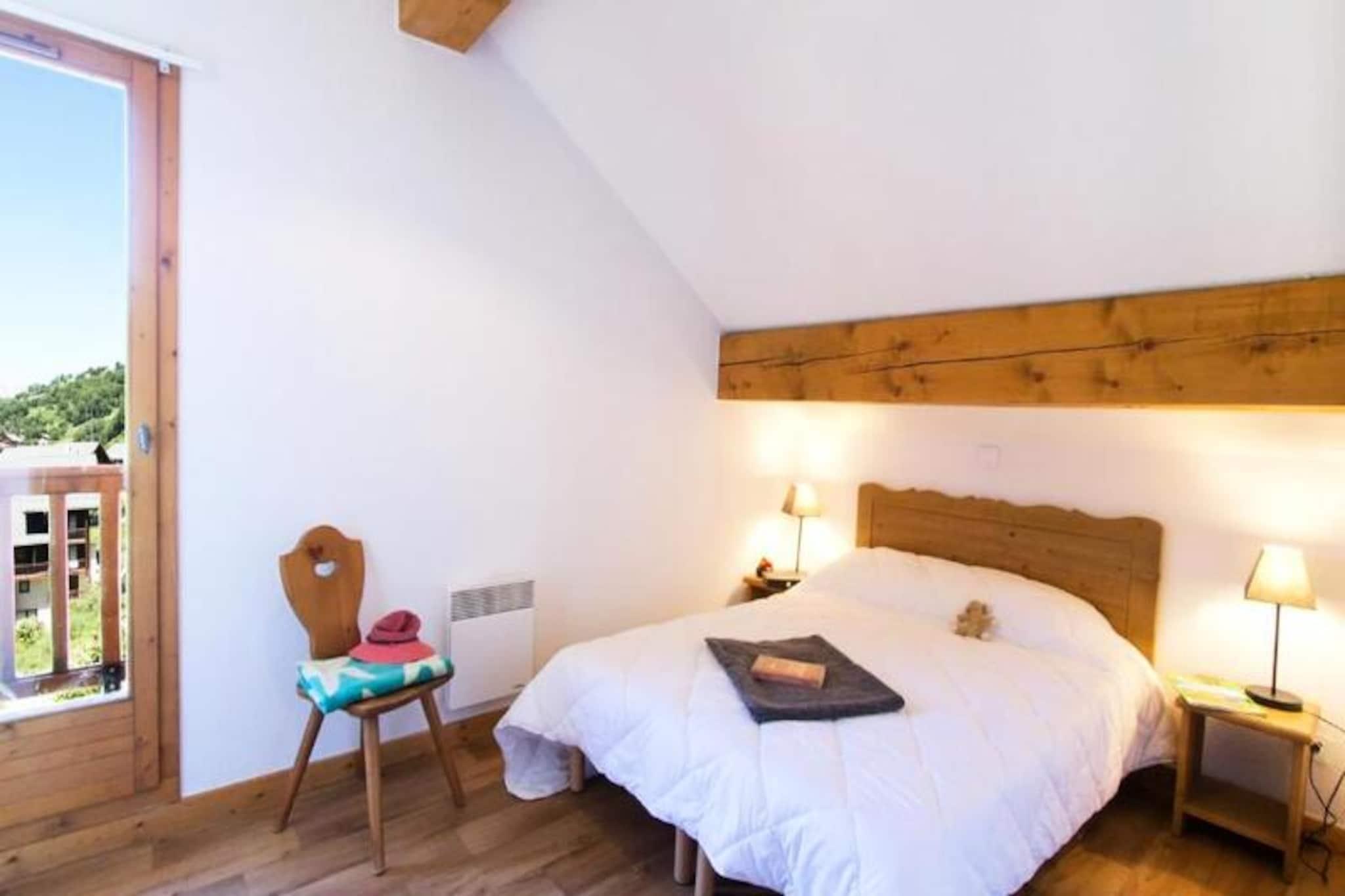 Beliggende i hjertet af de nordlige alper, tilbyder dette charmerende feriehus i chalet-stil et hyggeligt tilflugtssted med en fantastisk udsigt over landsbyen nedenfor. Ejendommen kan rumme op til seks gæster og har en komfortabel stue med en udtrækssovesofa til to, et soveværelse med en dobbeltseng og et andet soveværelse med to enkelt- eller køjesenge. Gæster kan nyde bekvemmeligheden ved inkluderet Wi-Fi og medbringe deres kæledyr, hvilket gør det ideelt for familier og grupper. Afslapning venter med adgang til en opvarmet semi-overdækket swimmingpool og et wellness-område med sauna. Beliggende i det maleriske feriested Valloire, er dette feriehus perfekt placeret til at udforske de omkringliggende attraktioner. Oplev det pulserende landsbycentrum kun 1 km væk, hvor du finder lokale markeder, dejlige caféer og butikker. Friluftsentusiaster kan nyde vandreture, cykling og vintersport, med skilifter kun 800 meter væk. Områdets familievenlige atmosfære sikrer underholdning for besøgende i alle aldre. Ejendommen er udstyret med et moderne køkken, der inkluderer køleskab, ovn og væsentlige redskaber, hvilket gør tilberedningen af ??måltider til en leg. Et separat badeværelse og toilet giver ekstra privatliv, og en privat balkon tilbyder et fredeligt sted at nyde det alpine landskab. Yderligere faciliteter inkluderer sengetøj og håndklæder, overdækket parkering (reservation påkrævet) og et babysæt til unge rejsende.