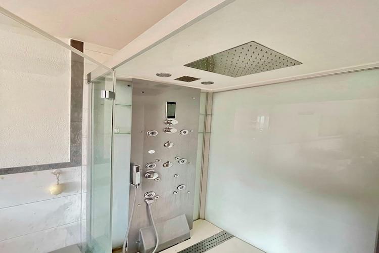 Stueetage: (badeværelse(bruser, håndvask, toilet), Arbejdsværelse(spisebord, sofahjørne, fitnessapparater)) På 1. etage: (Stue(dobbeltsovesofa, spisebord, pejs, sofahjørne), Køkken(kogeplade, elkedel, brødrister, emhætte, kaffemaskine, ovn, mikrobølgeovn, opvaskemaskine , køle-fryseskab), badeværelse(badekar, håndvask, toilet, føntørrer), badeværelse(håndvask, toilet), terrasse) På 2. etage: (soveværelse(dobbeltseng), soveværelse(dobbeltseng), soveværelse(king size-seng), badeværelse(bruser, håndvask, toilet)) garage, grill, vaskemaskine, have, parkering, liggestole, strygebræt, strygejern, Solcreme