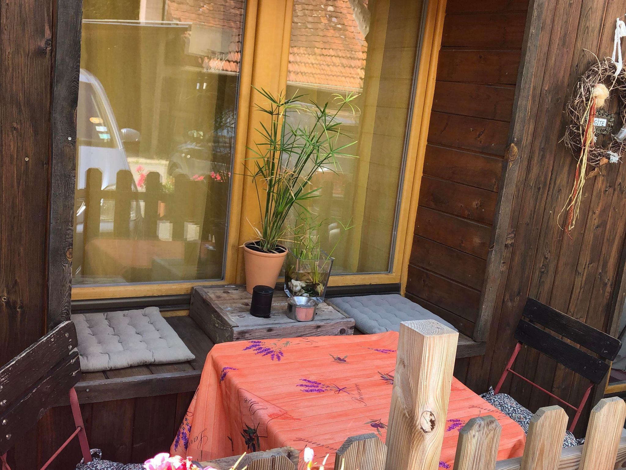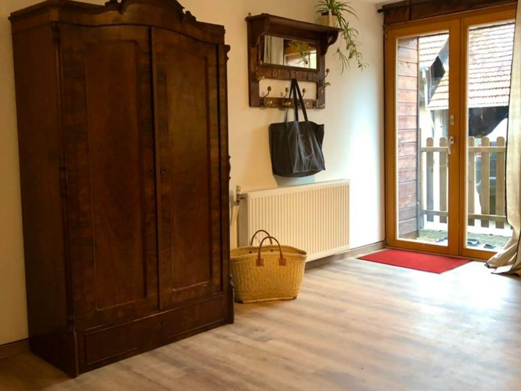 Es ist ebenerdig und verfügt über einen seperaten Eingangmit einem schönen Ausblick ins Grüne.
