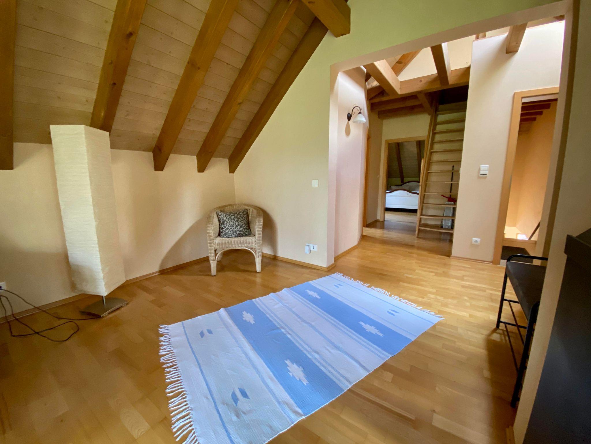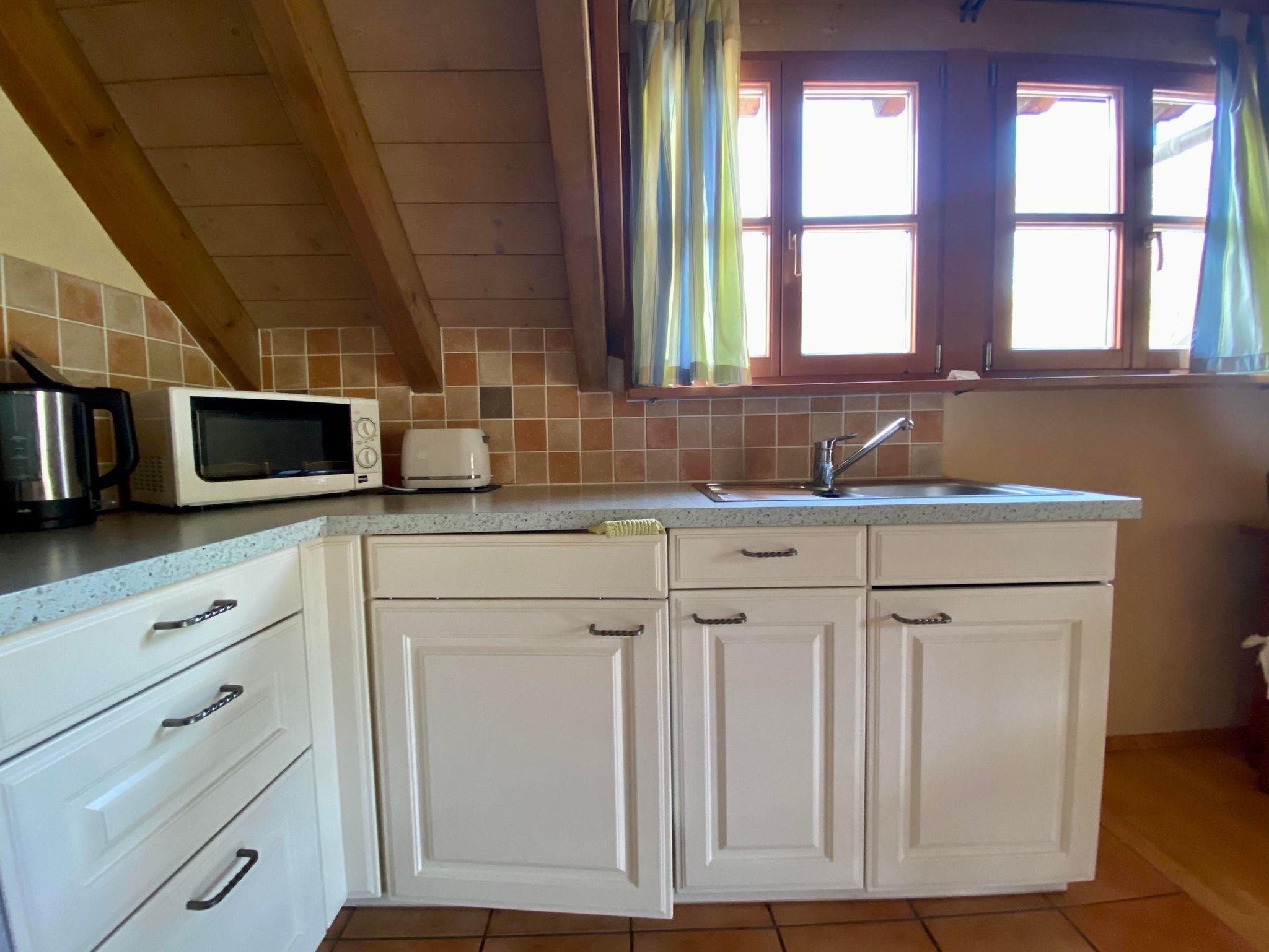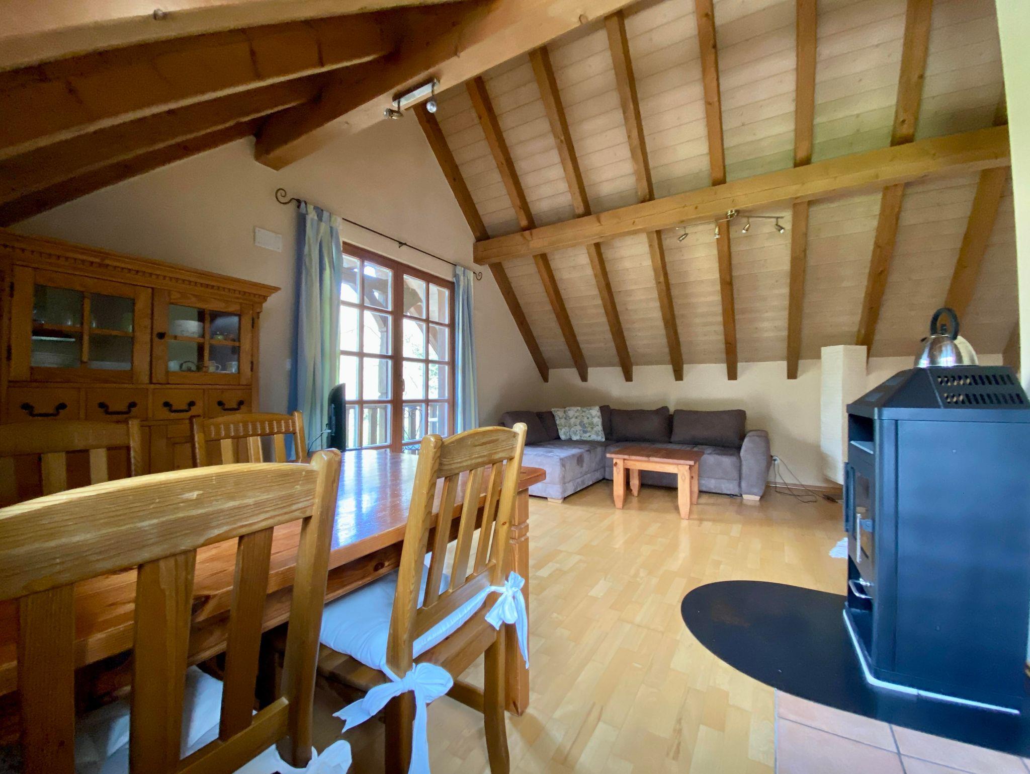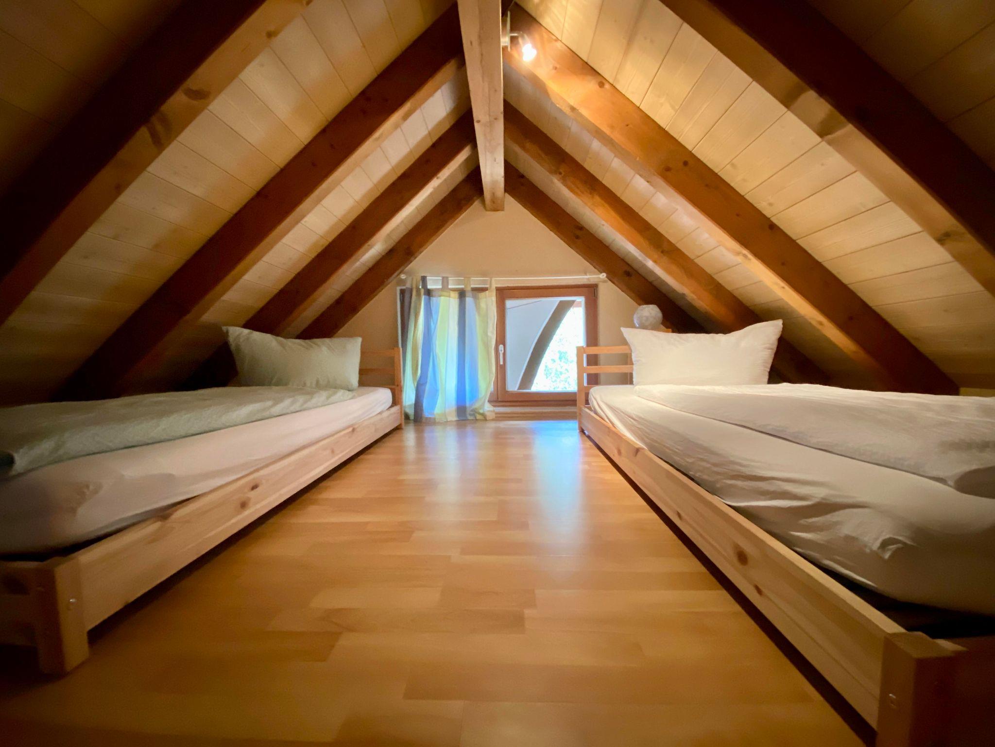 Die Wohnung ist für 2-4 Personen geeignet. Sie besteht aus einer großen Wohnküche mit offenen Dachbalken, einem separaten Schlafzimmer, Bad sowie einer Schlafnische mit Dachfenster. Die Räume haben durchgehend Parkettböden.