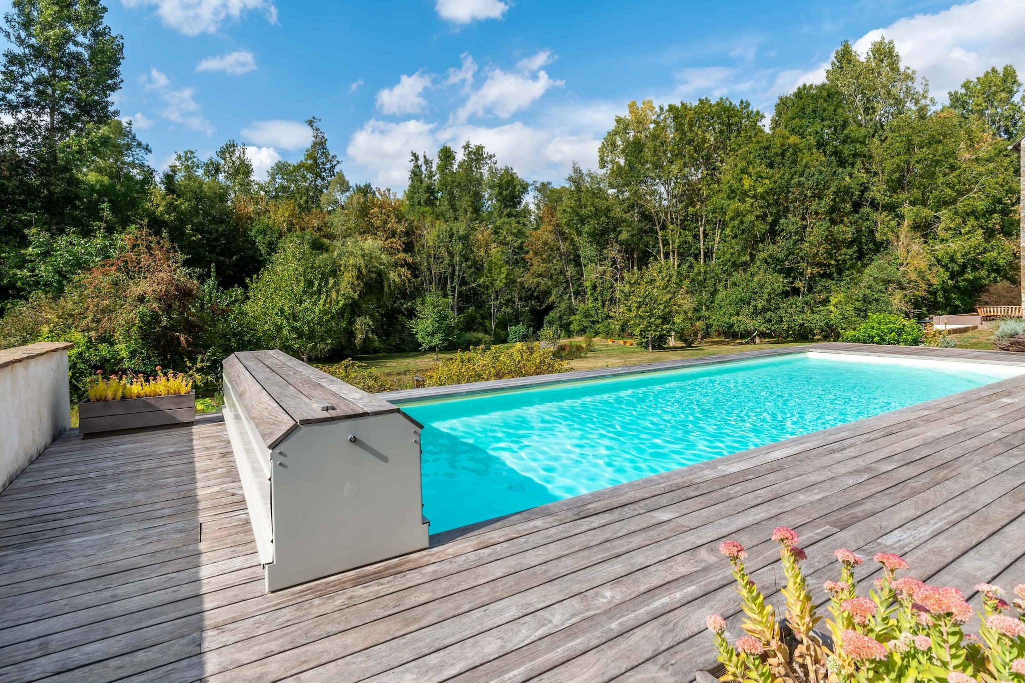I en gammel traditionel gård renoveret fra 2010 til 2015 nyde roen uden naboer i hjertet af landet. Den 11m x 4m swimmingpool, opvarmet til 26 grader om sommeren, meget godt udsat. Huset med udsigt over poolen har 3 værelser og 6 senge (1 dobbeltseng + 2x2 køjeseng), køkken, badeværelse, toilet. I haven venter en privat swimmingpool, der er privatiseret, terrassen op, liggestole og parasoller til rådighed. Haven er omgivet af en lille strøm, hvor du kan gå på kano, og mange gåture gennem skoven fra huset er mulige. Ejeren accepterer ikke børn under alderen 5 år gammel på grund af farerne ved swimmingpoolen, dog med sikkerhed Kun babyer, der endnu ikke går, accepteres.