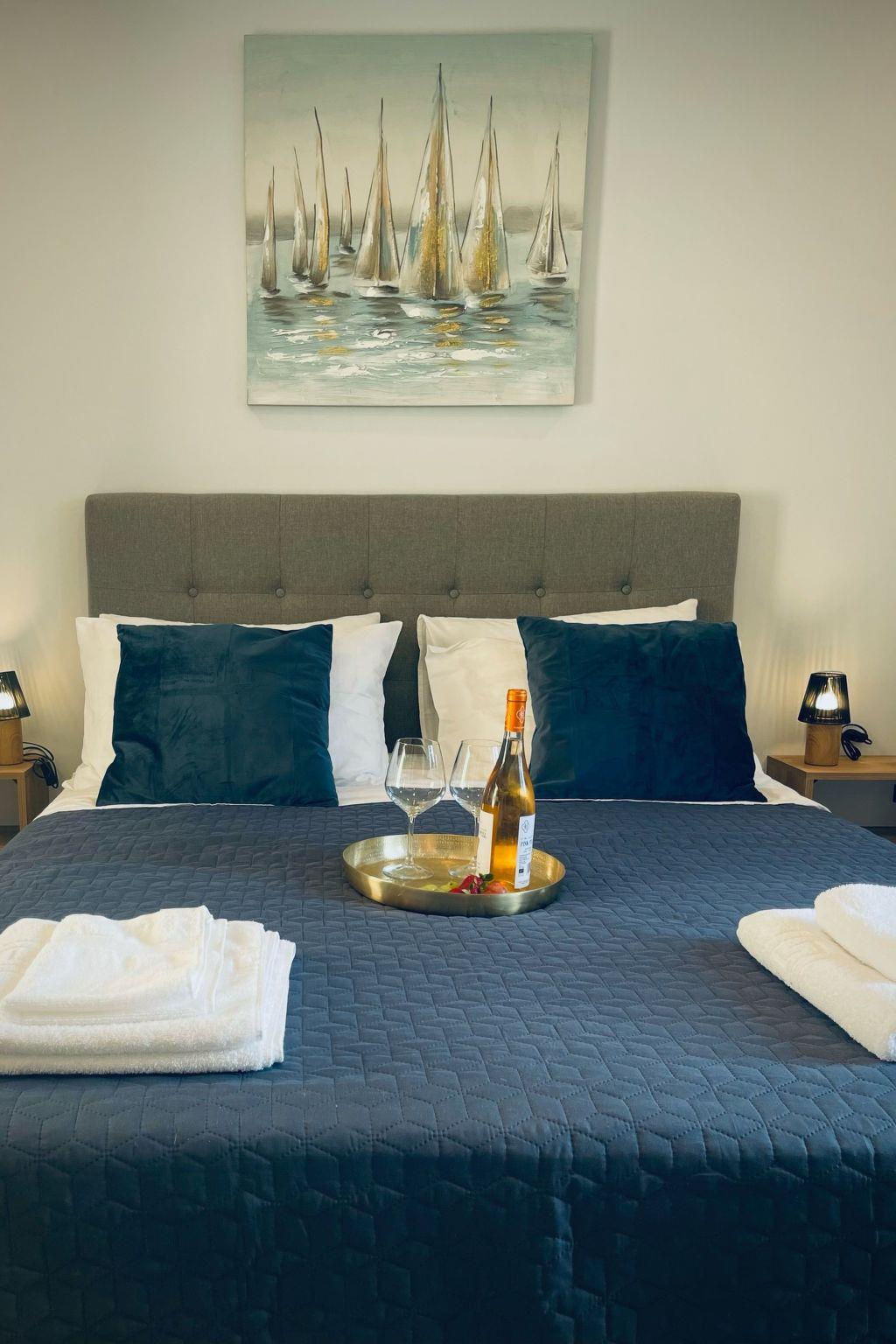 Each of our beautifully decorated apartments is fully equipped with modern amenities for a stress-free stay. They feature a double bed in one bedroom and a second bedroom with a double bed that can be easily separated into two single ones to accommodate your needs. The spacious bathroom includes a shower, and the modern kitchen is fully equipped with a fridge and stove, making it easy to prepare your own meals.