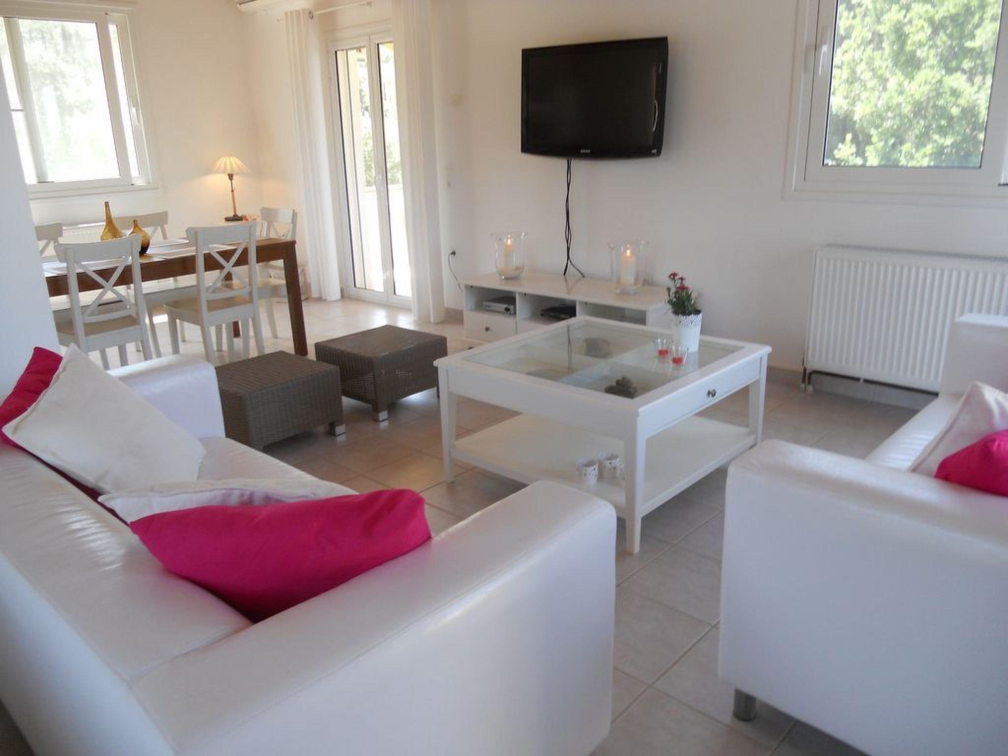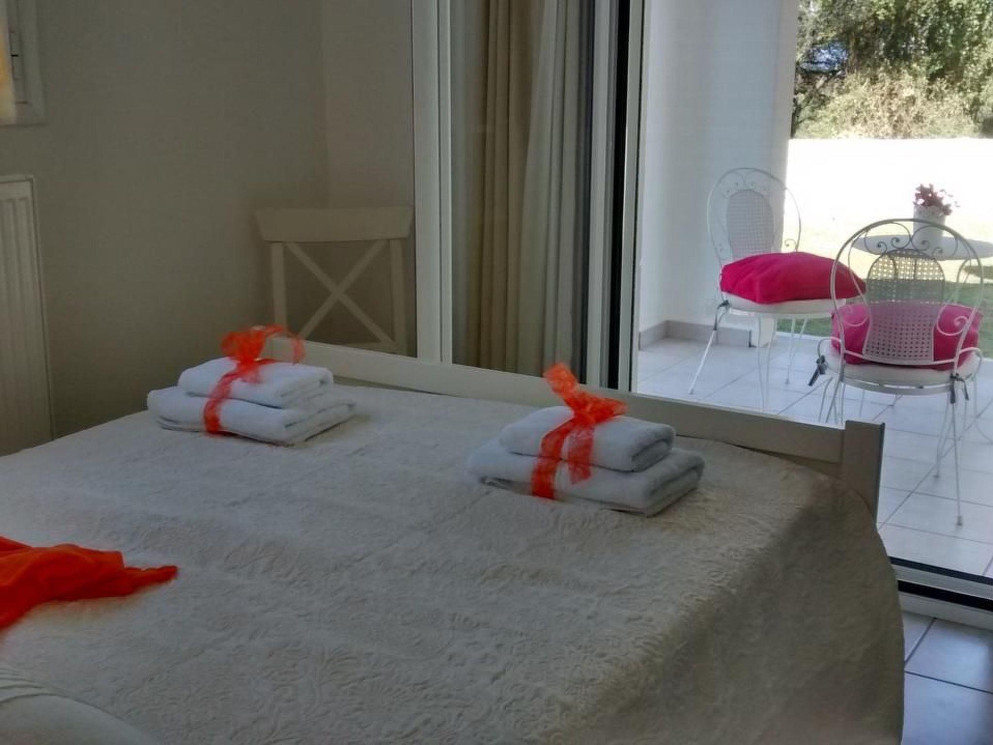 Local environment: olive groves, cypresses, natural fauna and flora.Villa Fedrita is very quietly located, amid olive groves and cypresses with views of the mountains and the sea. The village and the beach are a few minutes' drive away. The kids will not be bored in the private pool and the aqua park is only a stone's throw from the centre of Acharavi. For the youngsters, there are a few bars in the village and at the beach where they can socialise with the Corfiot youth. Don't feel like cooking? In the village of Acharavi and by the sea, you can eat well in the many cosy restaurants. You will find all kinds of nice and atmospheric shops, bakeries, pharmacies, several mini and some supermarkets, doctors, ... Especially with small children in Kalamaki, visit the beautiful long sandy beach that slopes gently into the sea. The sea water is pleasantly warm and crystal clear in the summer months. There are numerous hiking trails on Corfu. Meet the hospitality of the Corfiot people along the way! Want to rent a boat? The ports of Roda, Kassiopi, Agni, St.Stefanos... you can go for rentals. Definitely worth visiting are the bays of Agios Stefanos and Kerasia. In the evening, you can enjoy the peace, views and silence from the large balcony on the top floor of our holiday home. You can admire sunsets while enjoying a glass of wine or retsina next to a candle-lit candelabra.