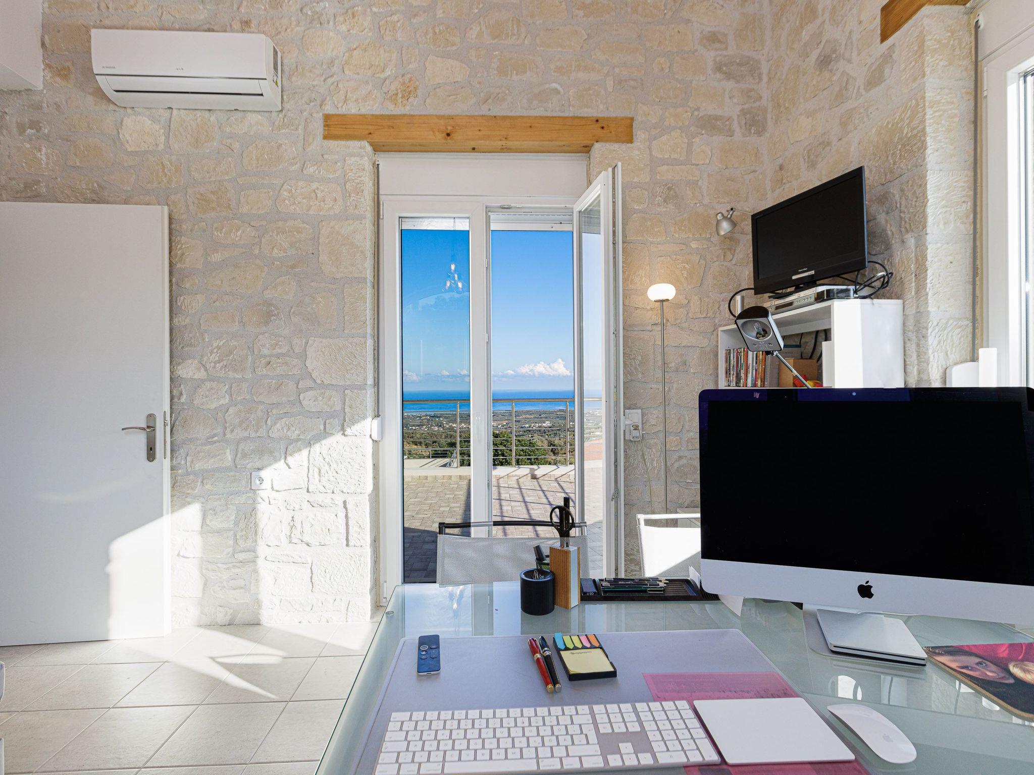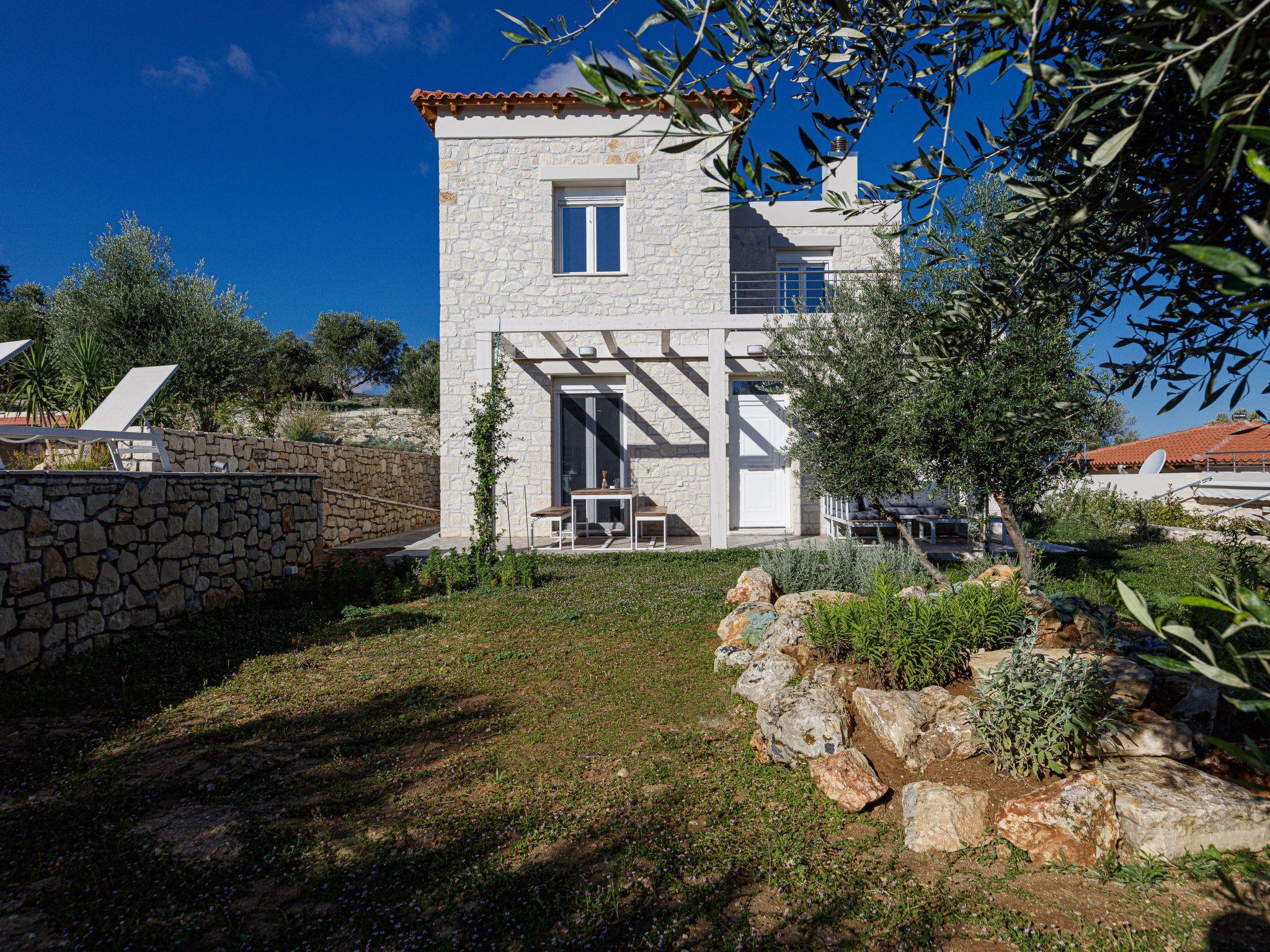 Villa Eos is a natural stone villa, built in the Cretan style, and is situated in a very quiet location in a large olive grove. In addition to the sensational view, you can enjoy a 35 sqm pool in the comfortable villa, which can be heated in autumn and spring. The villa also has a large landscaped garden (1,800 square metres) with 20 olive trees. In the garden you will find numerous seating areas where you can enjoy the view of the bay of Platanes and the Aegean Sea, the sunrise and the sunset. At the outdoor barbecue (with work surface and sink) you can prepare your meal and enjoy it on the terrace; in the cosy lounge corner you can end the evening and enjoy the view. Villa Eos is furnished for up to 6 guests.